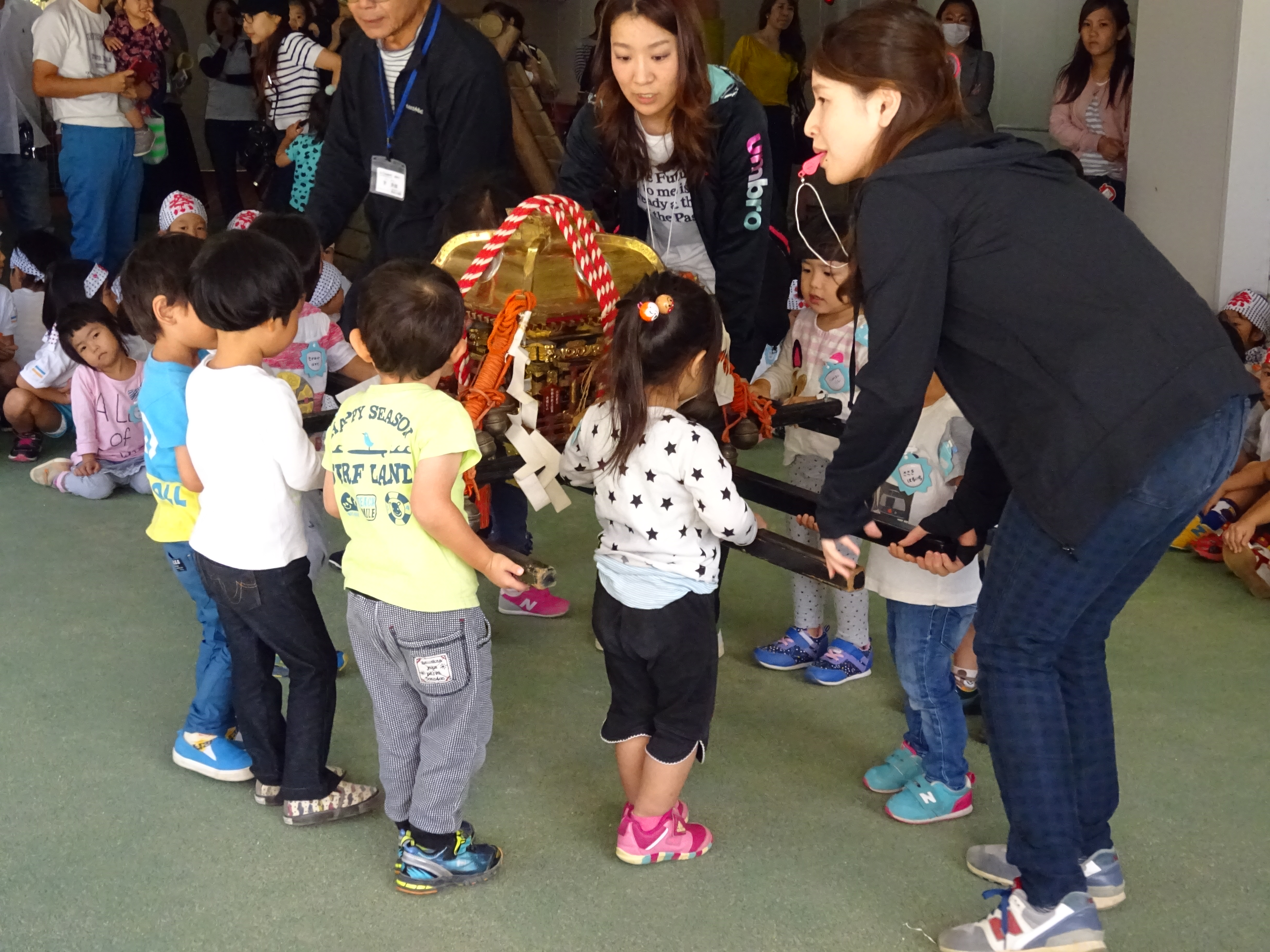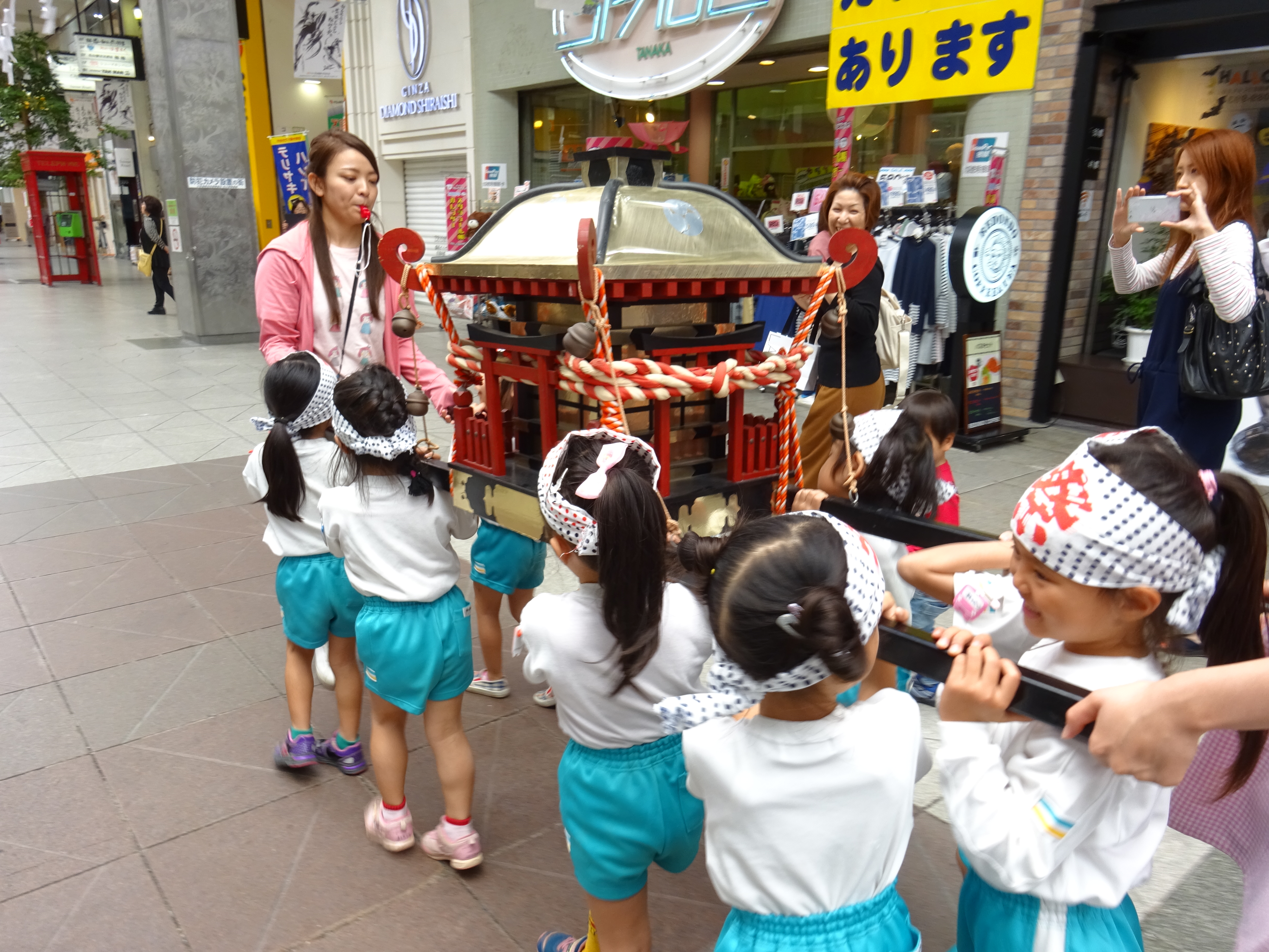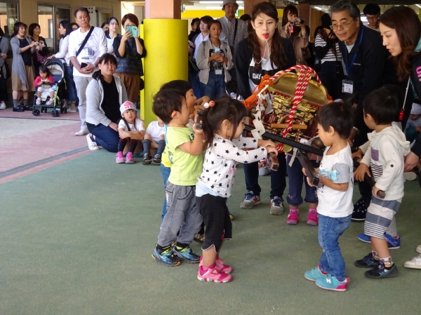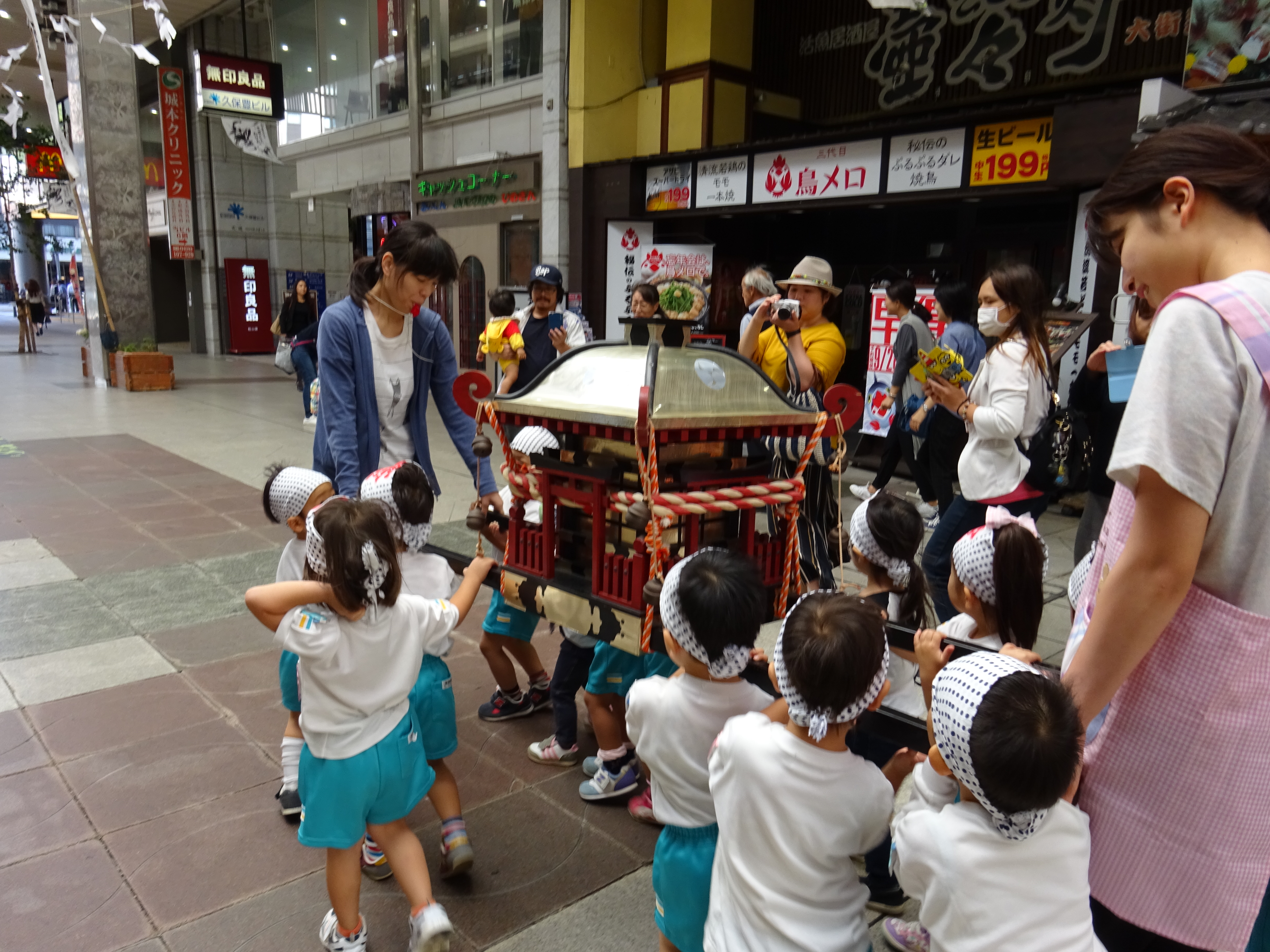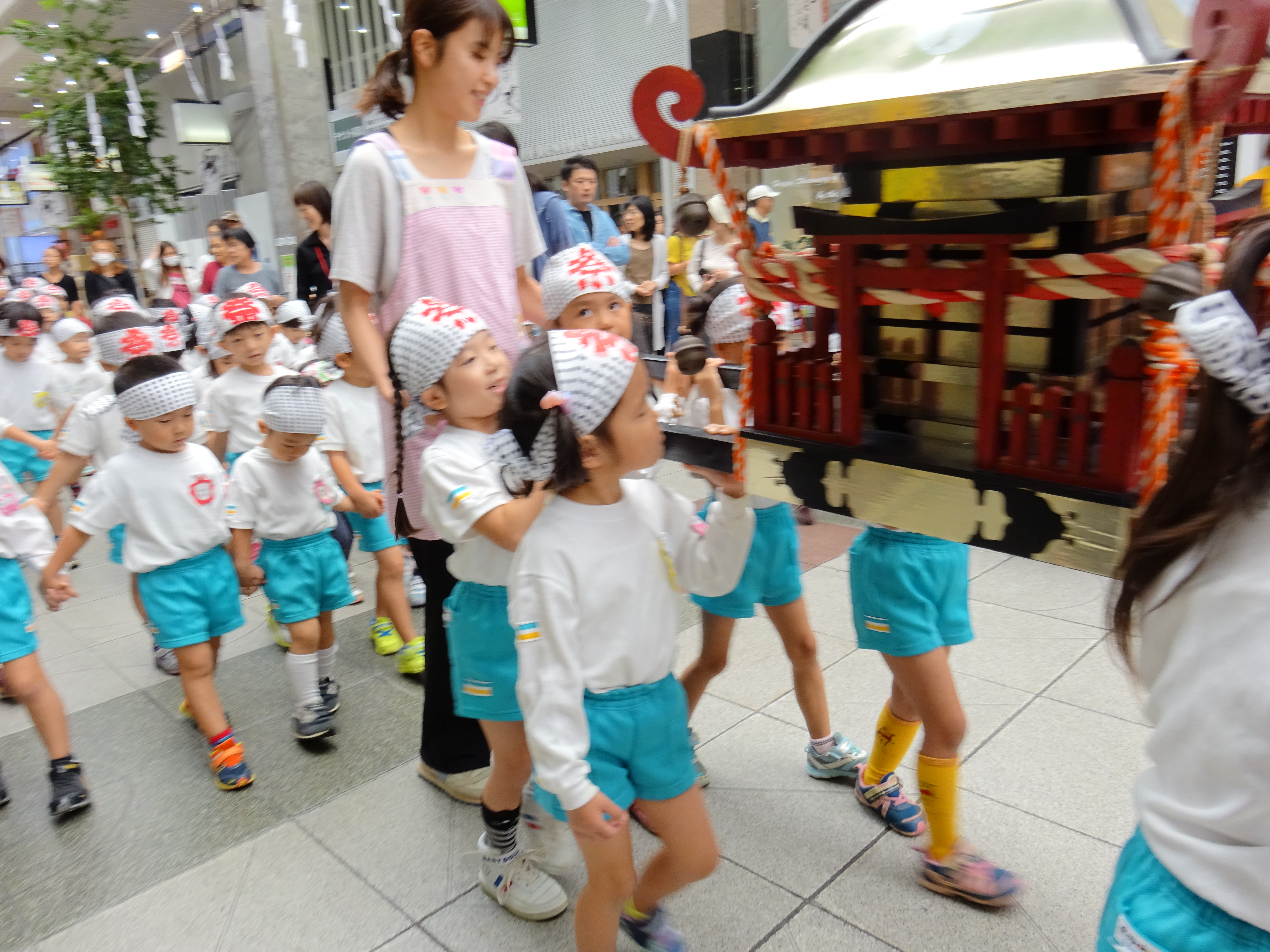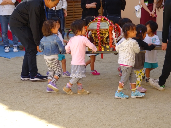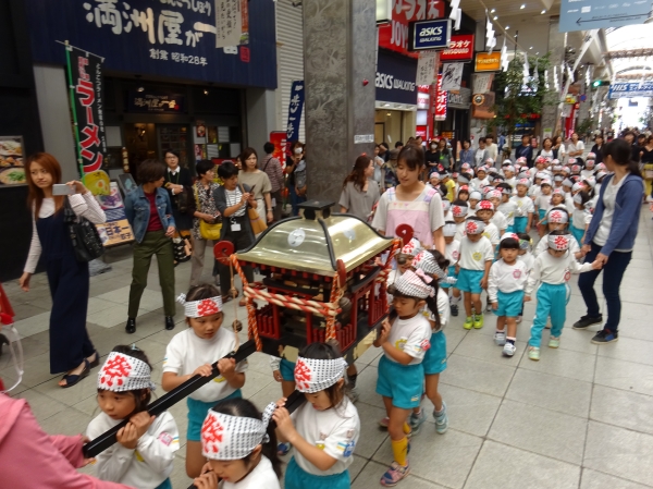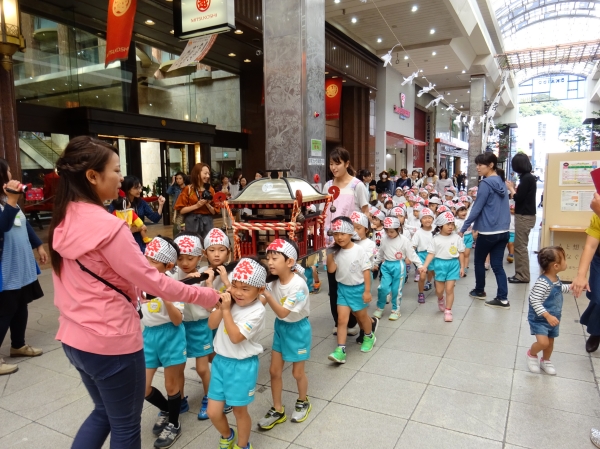 わっしょいわっしょい、園内と大街道をおみこしかついでわっしょい!