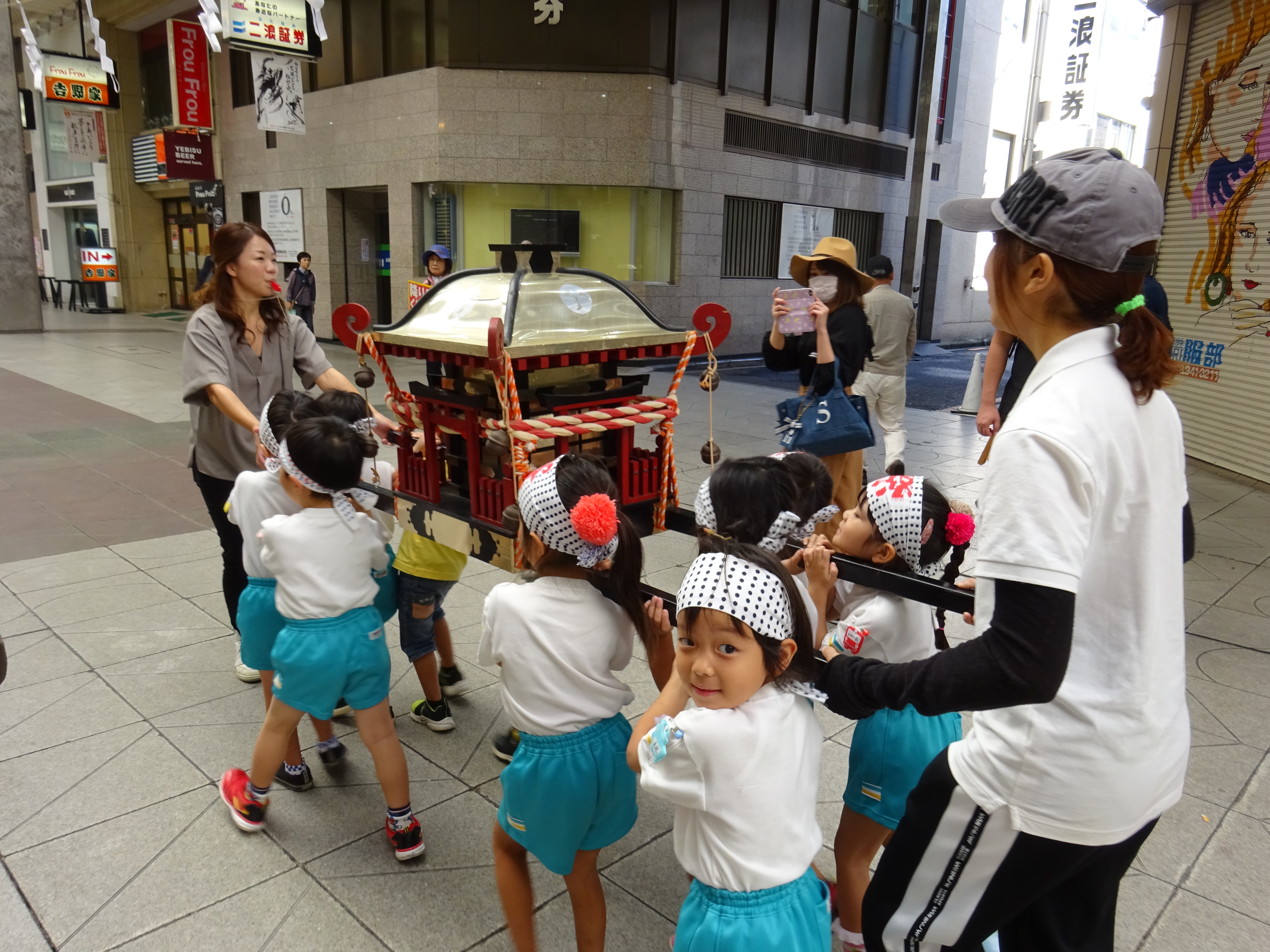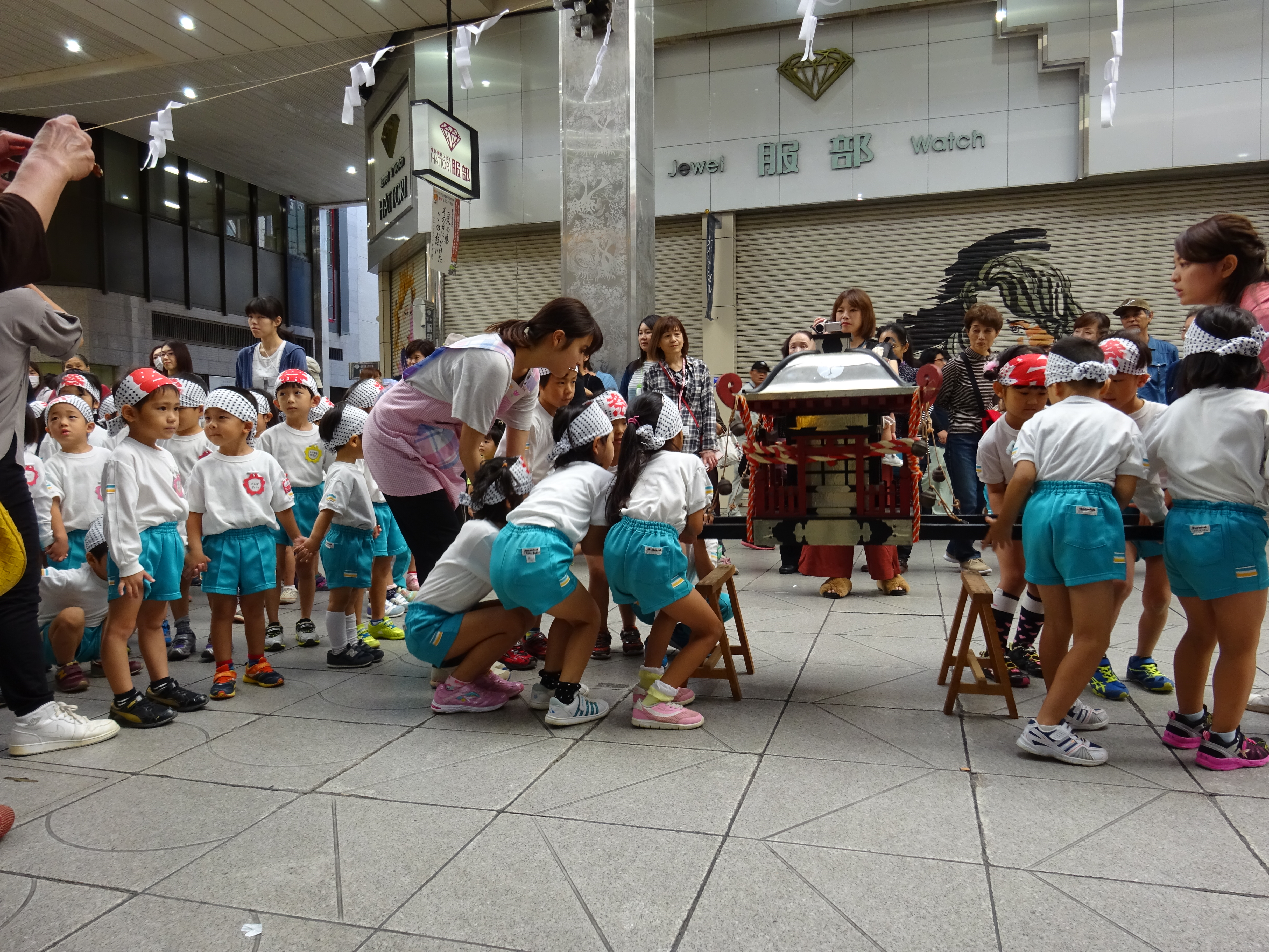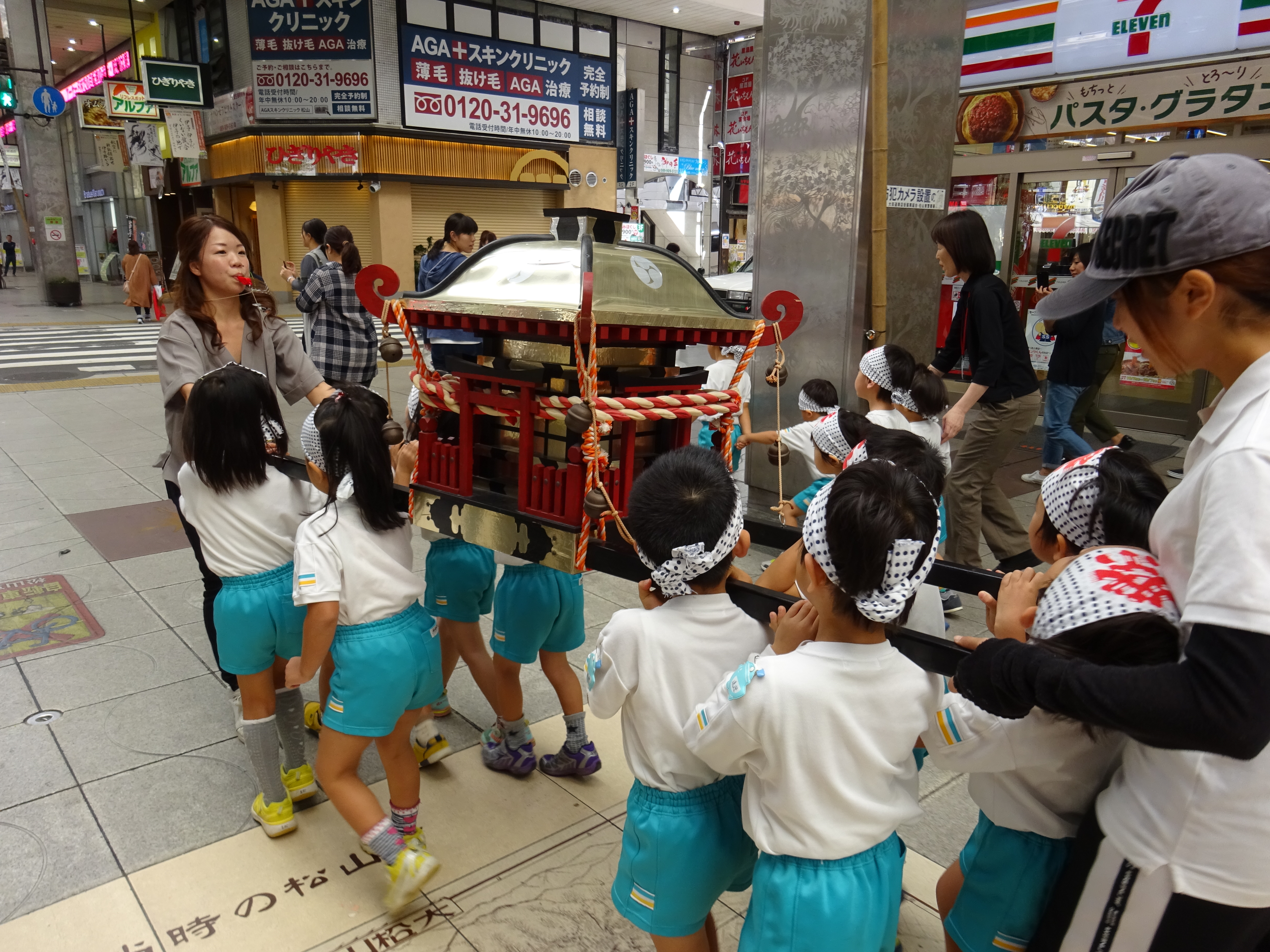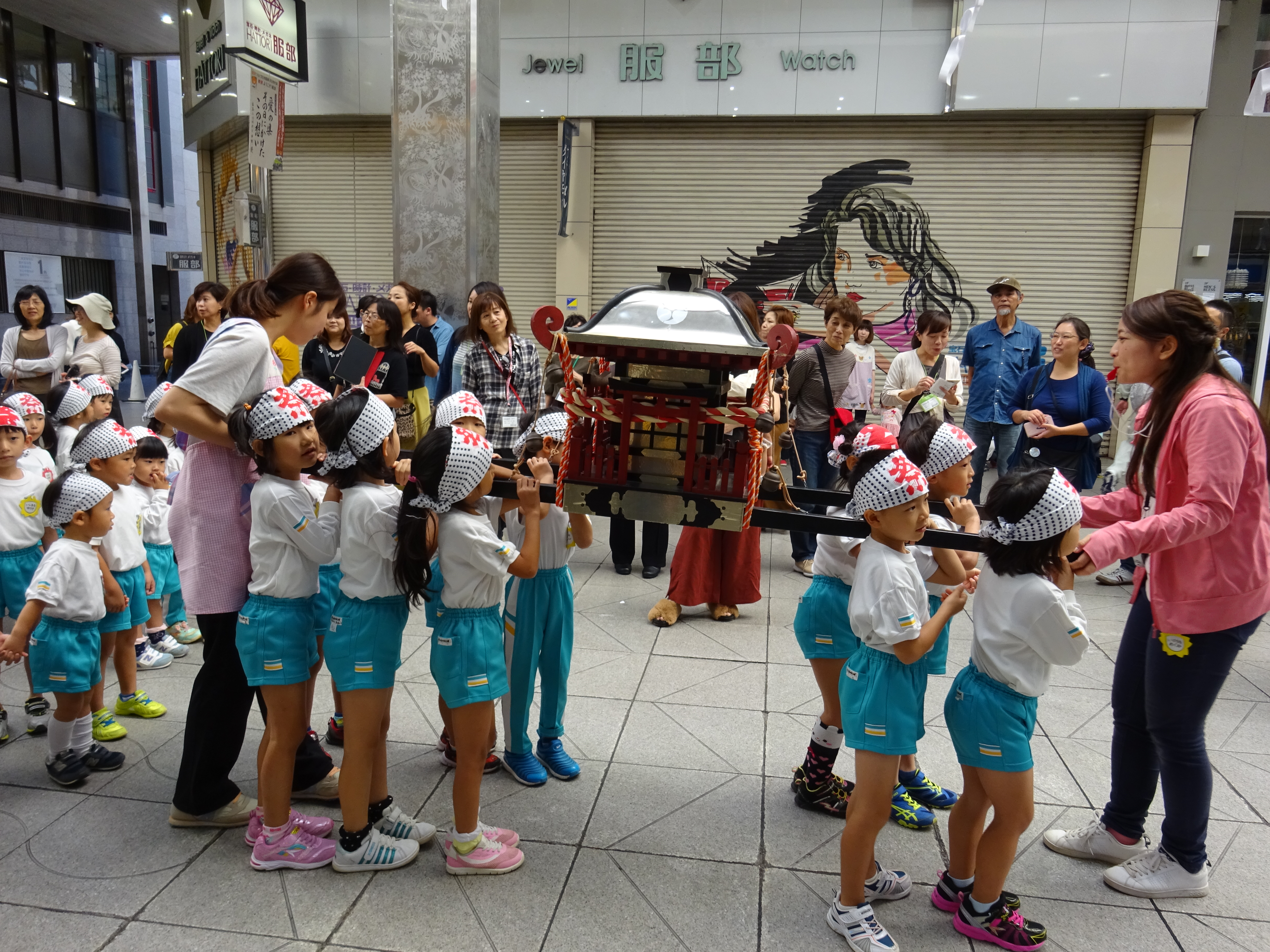 わっしょいわっしょい、園内と大街道をおみこしかついでわっしょい!