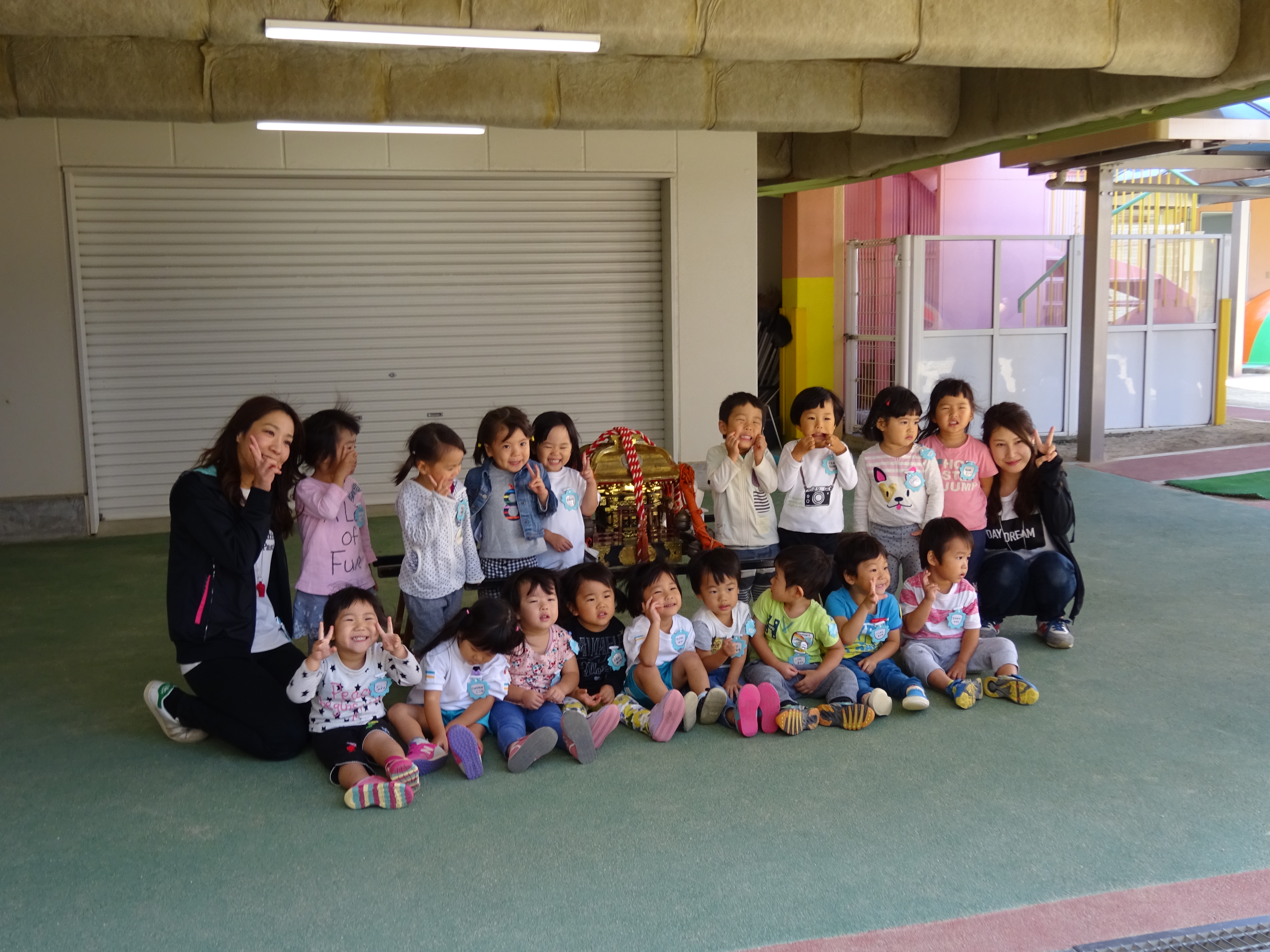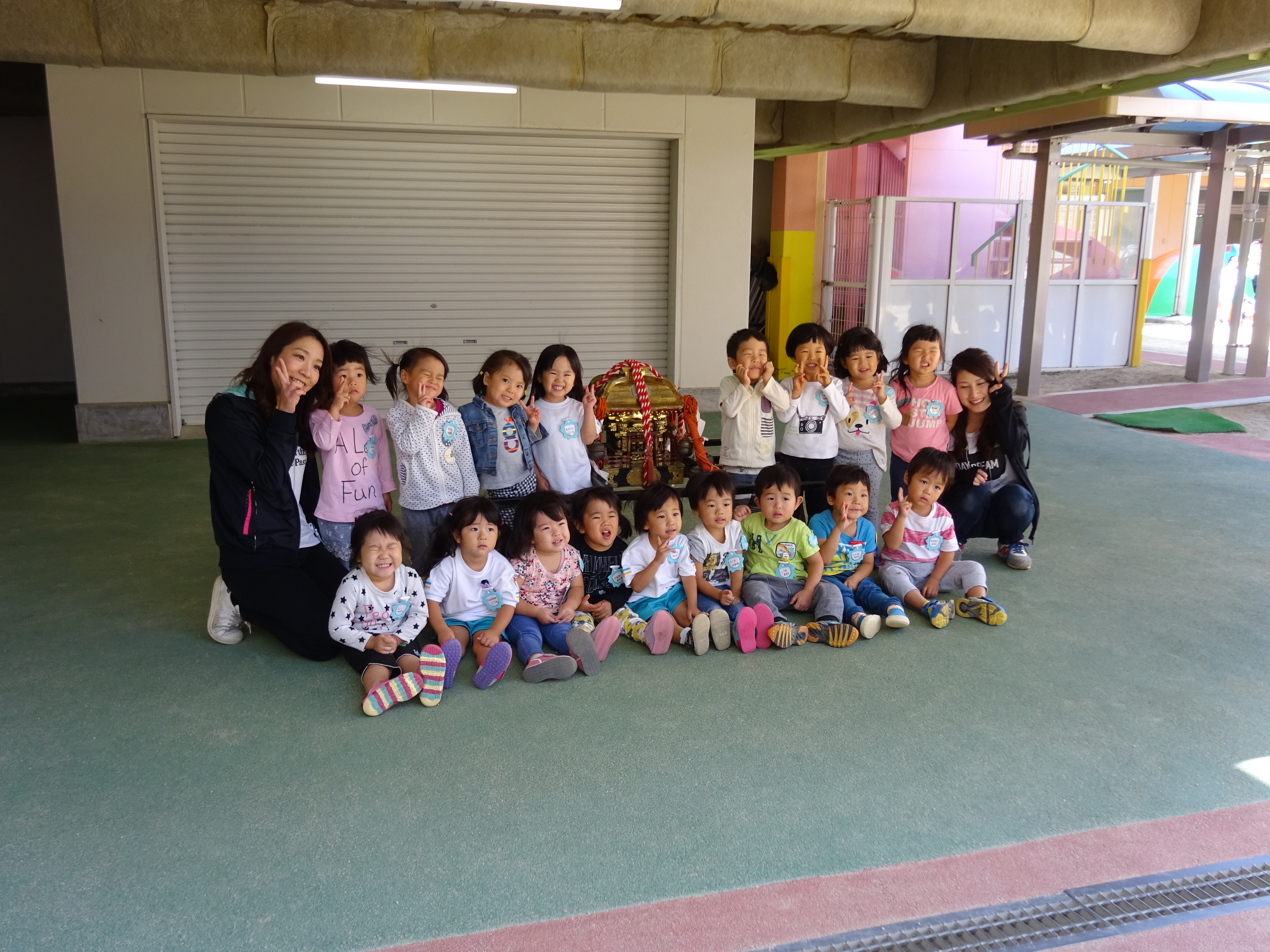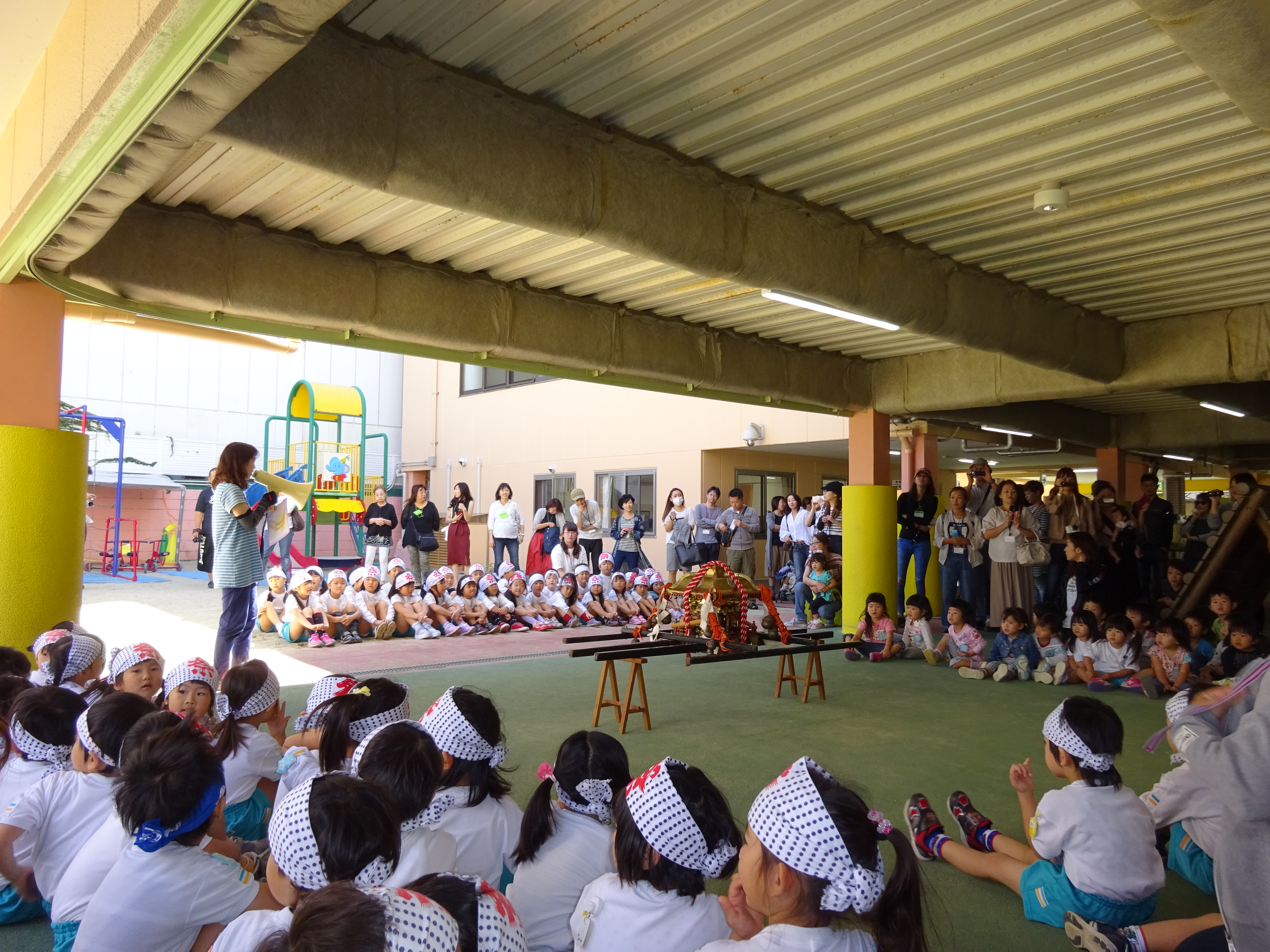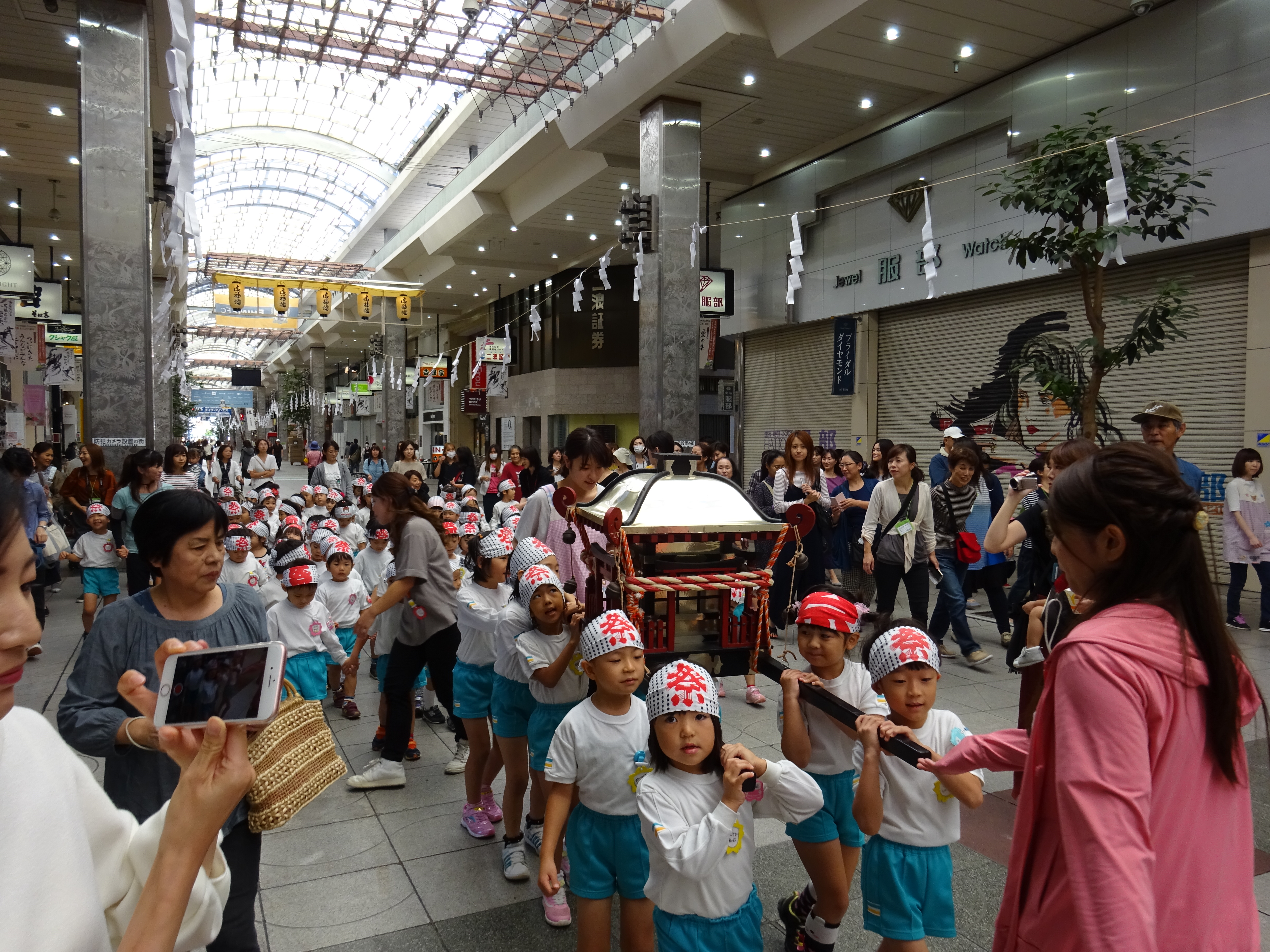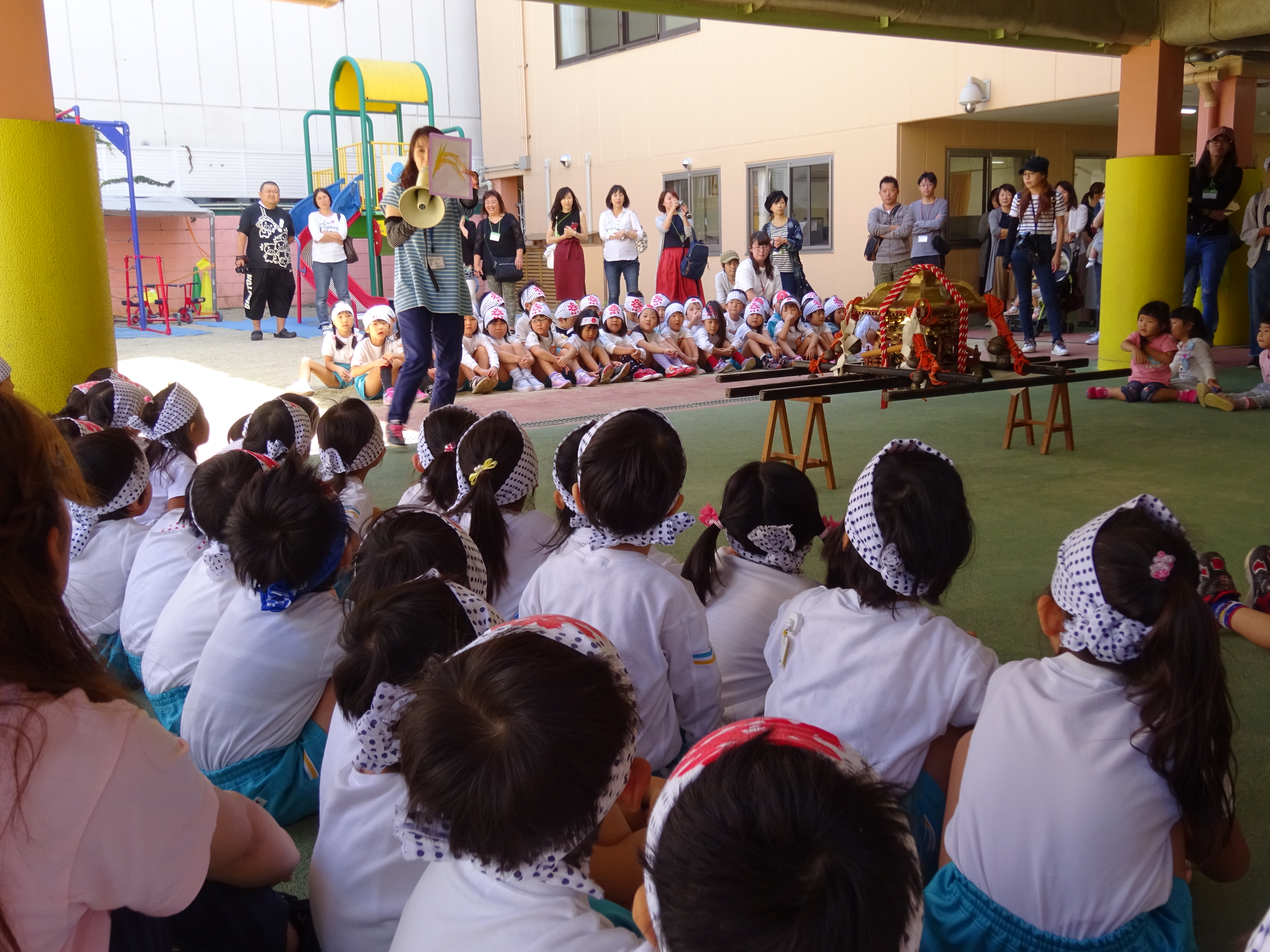 わっしょいわっしょい、園内と大街道をおみこしかついでわっしょい!