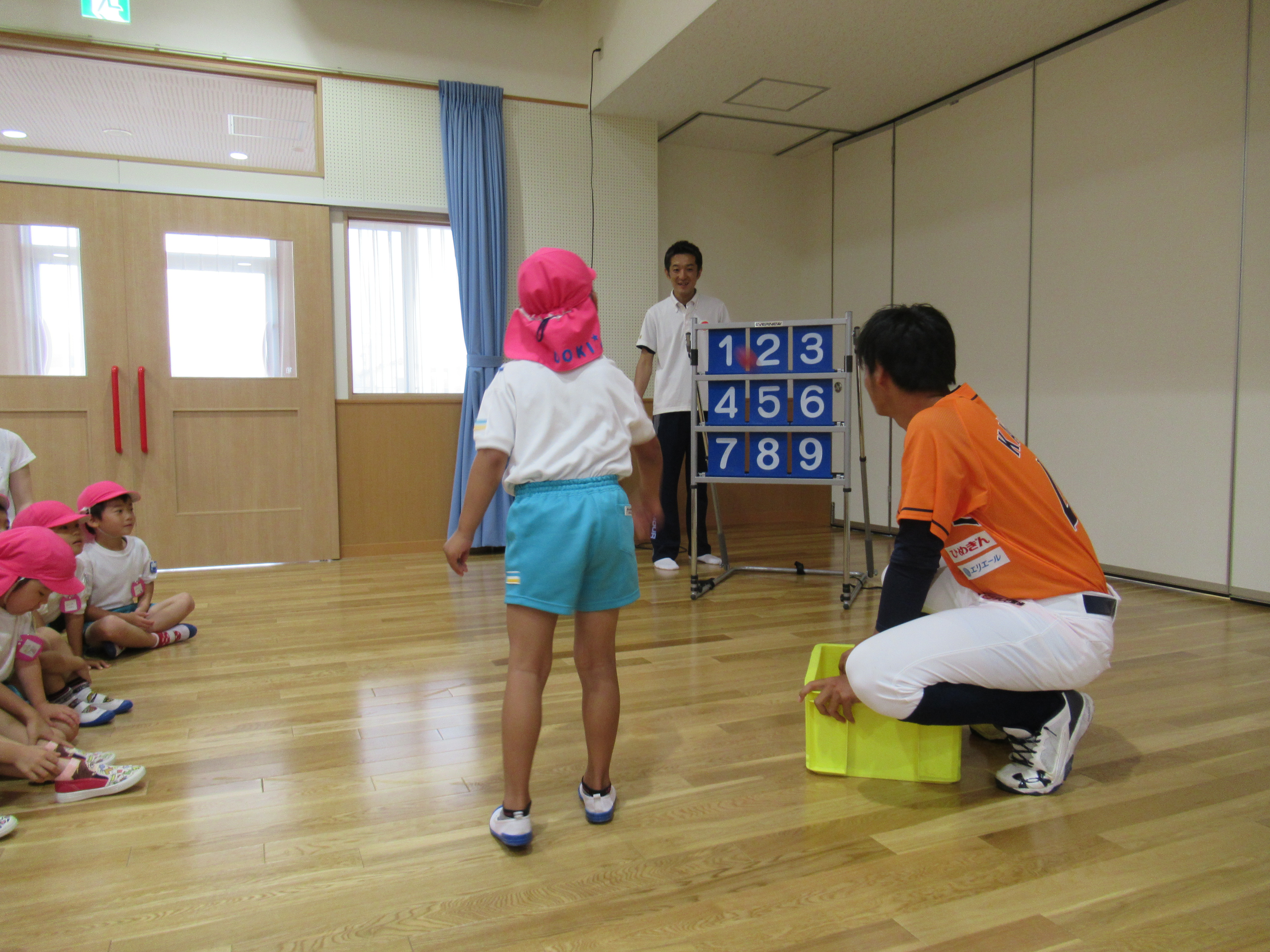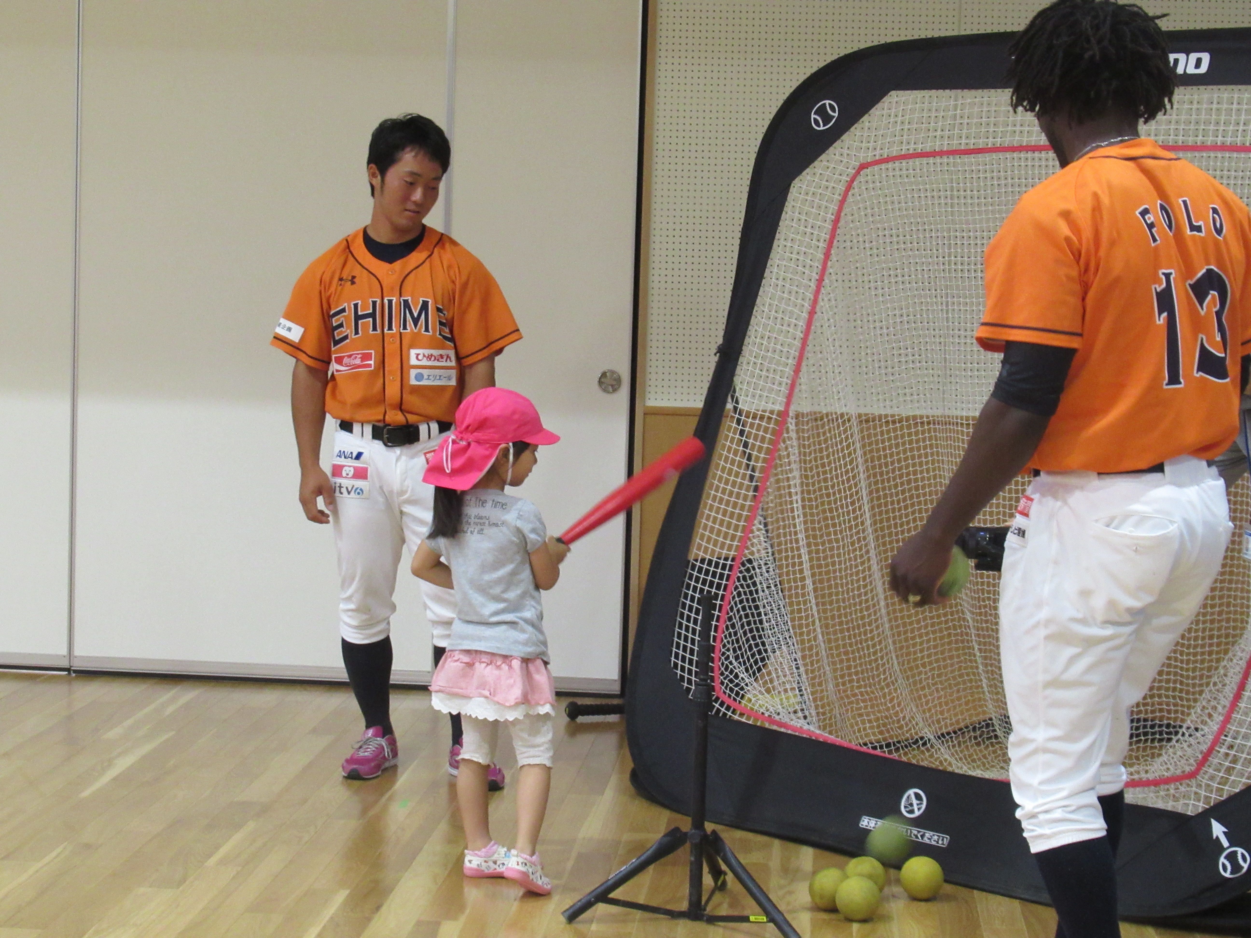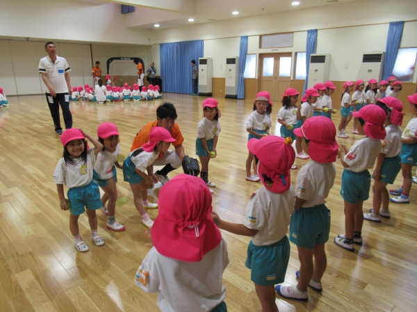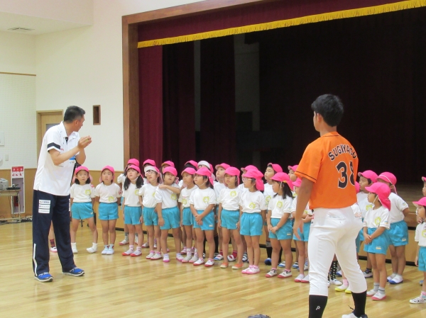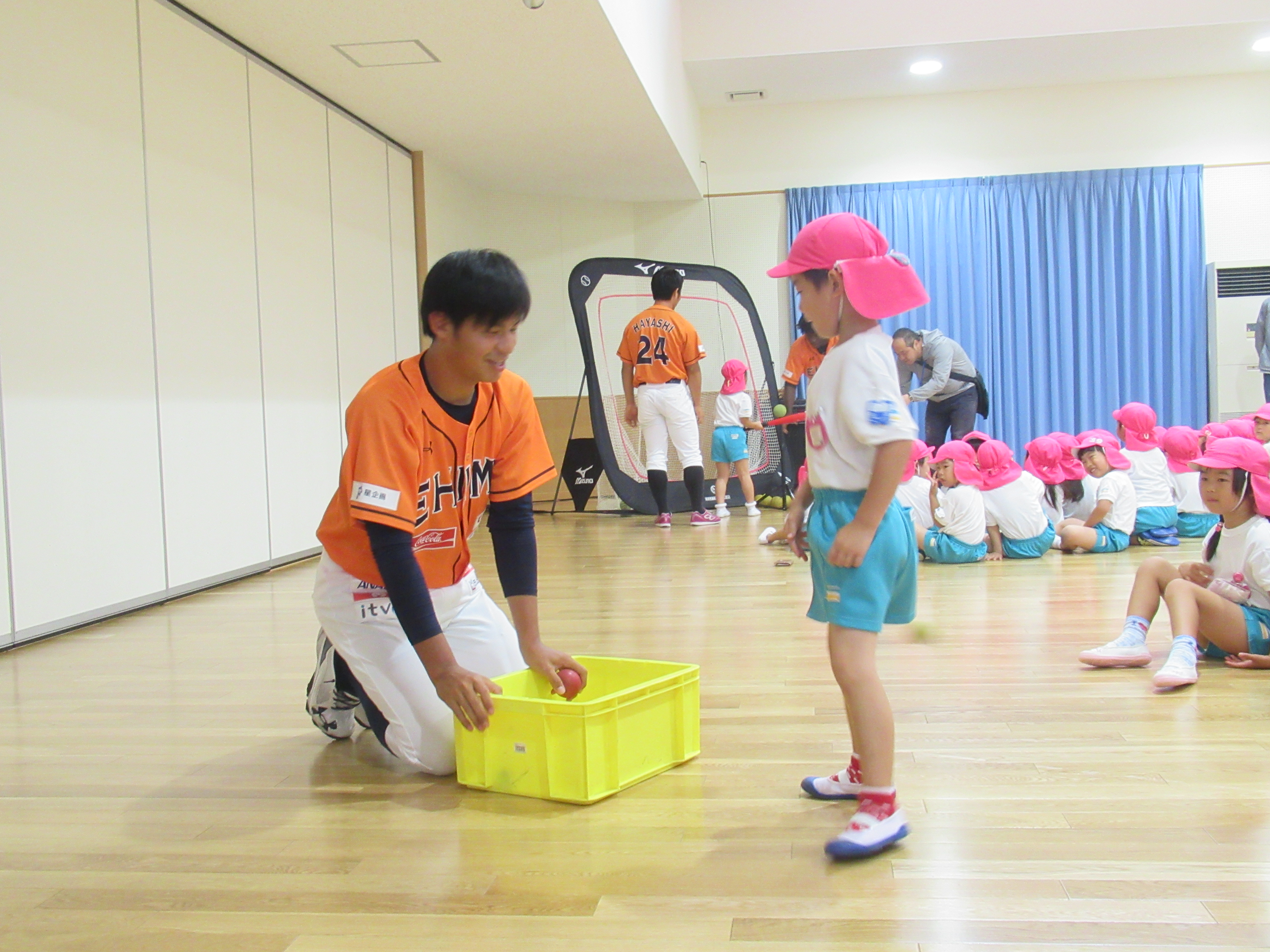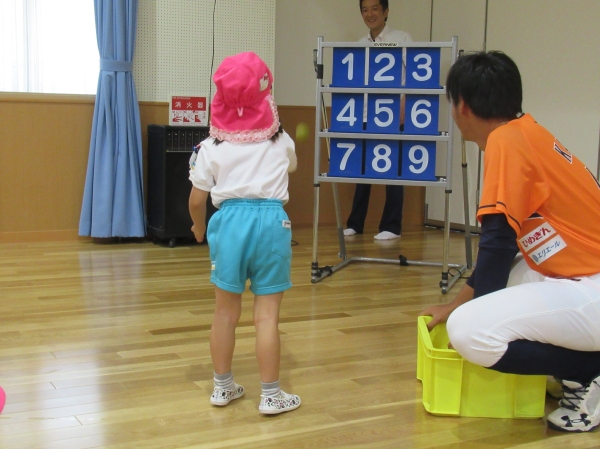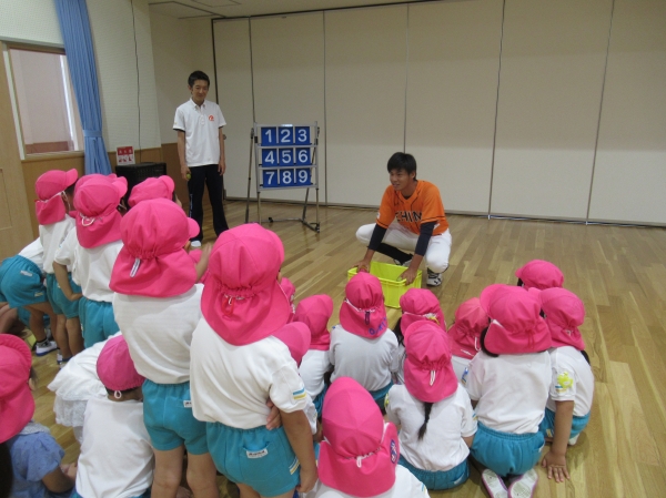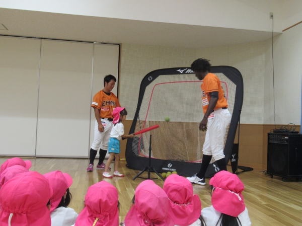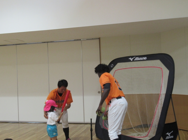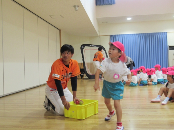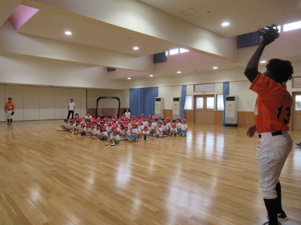 マンダリンパイレーツの選手に野球を教えてもらいました。河原選手みたいなピッチャーになれるかな?