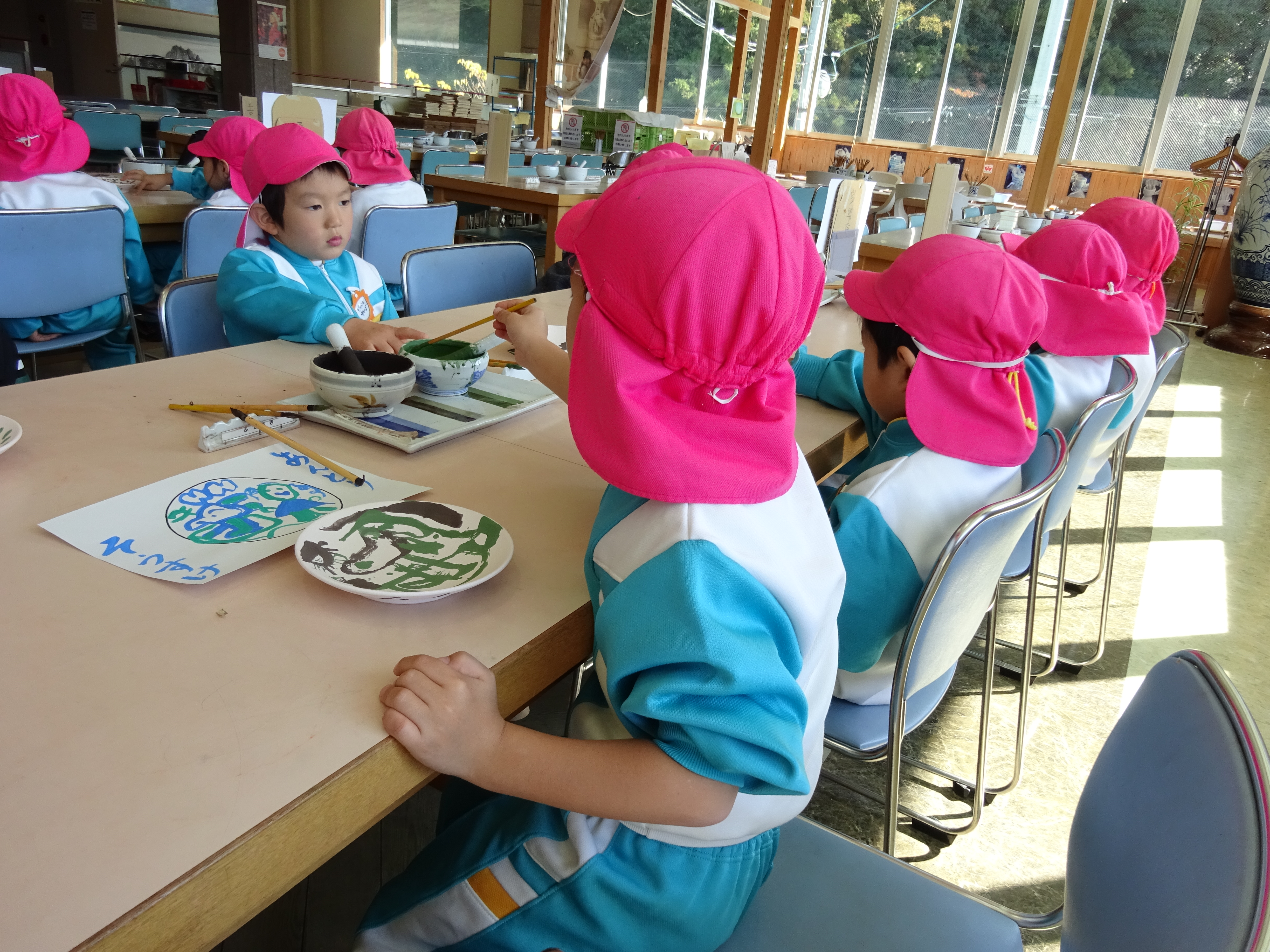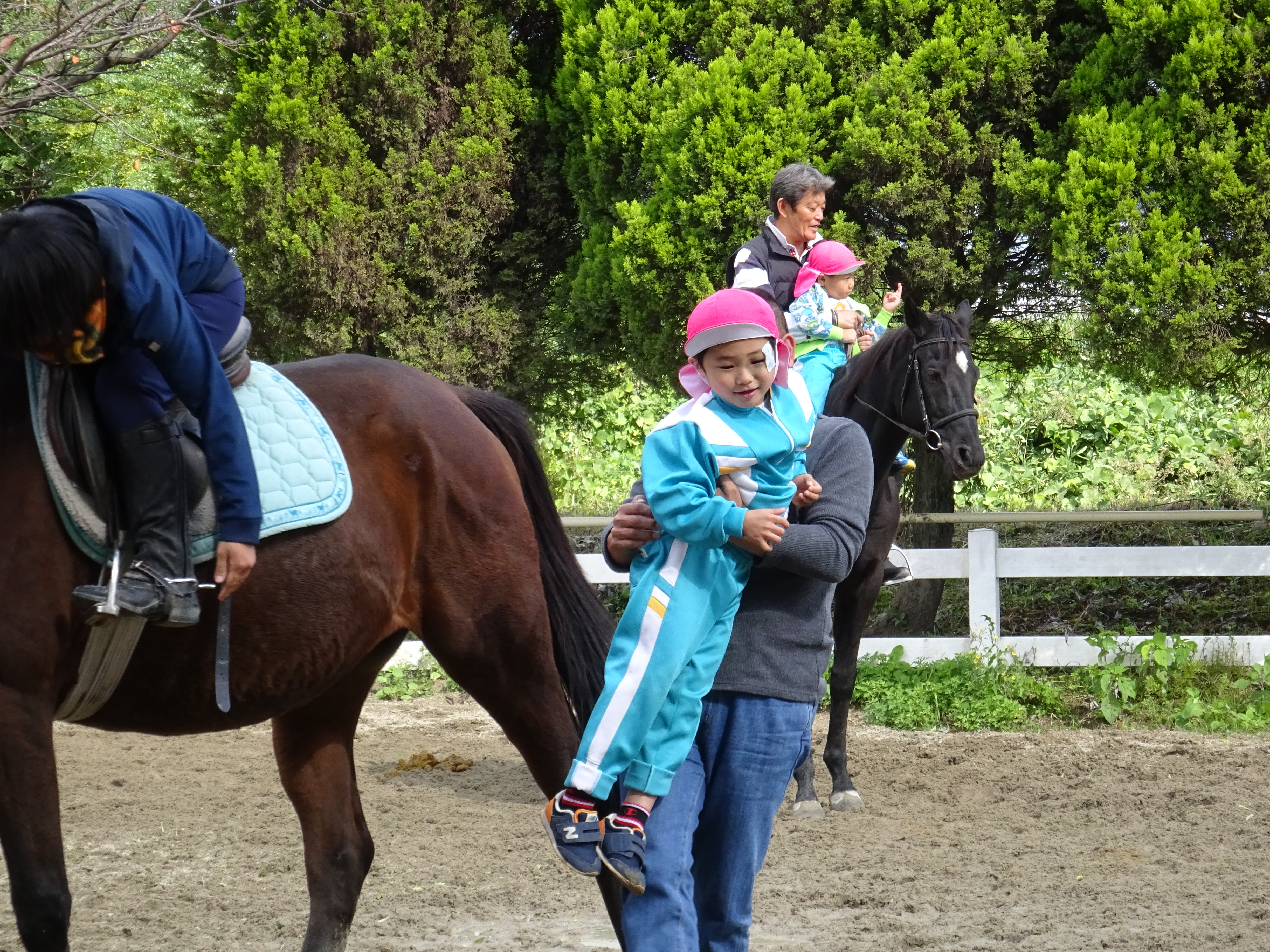年長さんになると乗馬とか絵付けとかいろいろできますね。みんな楽しく頑張りました!