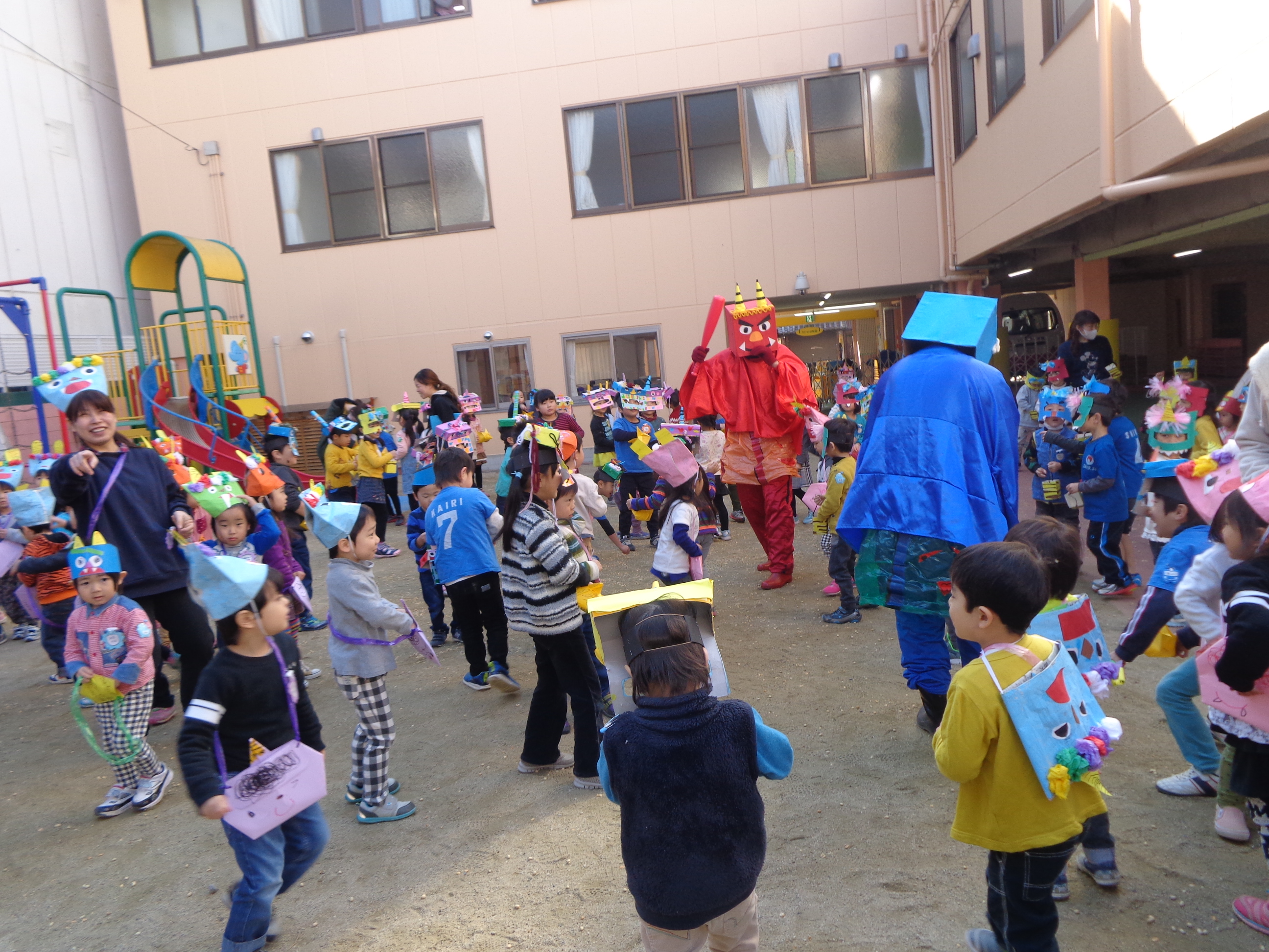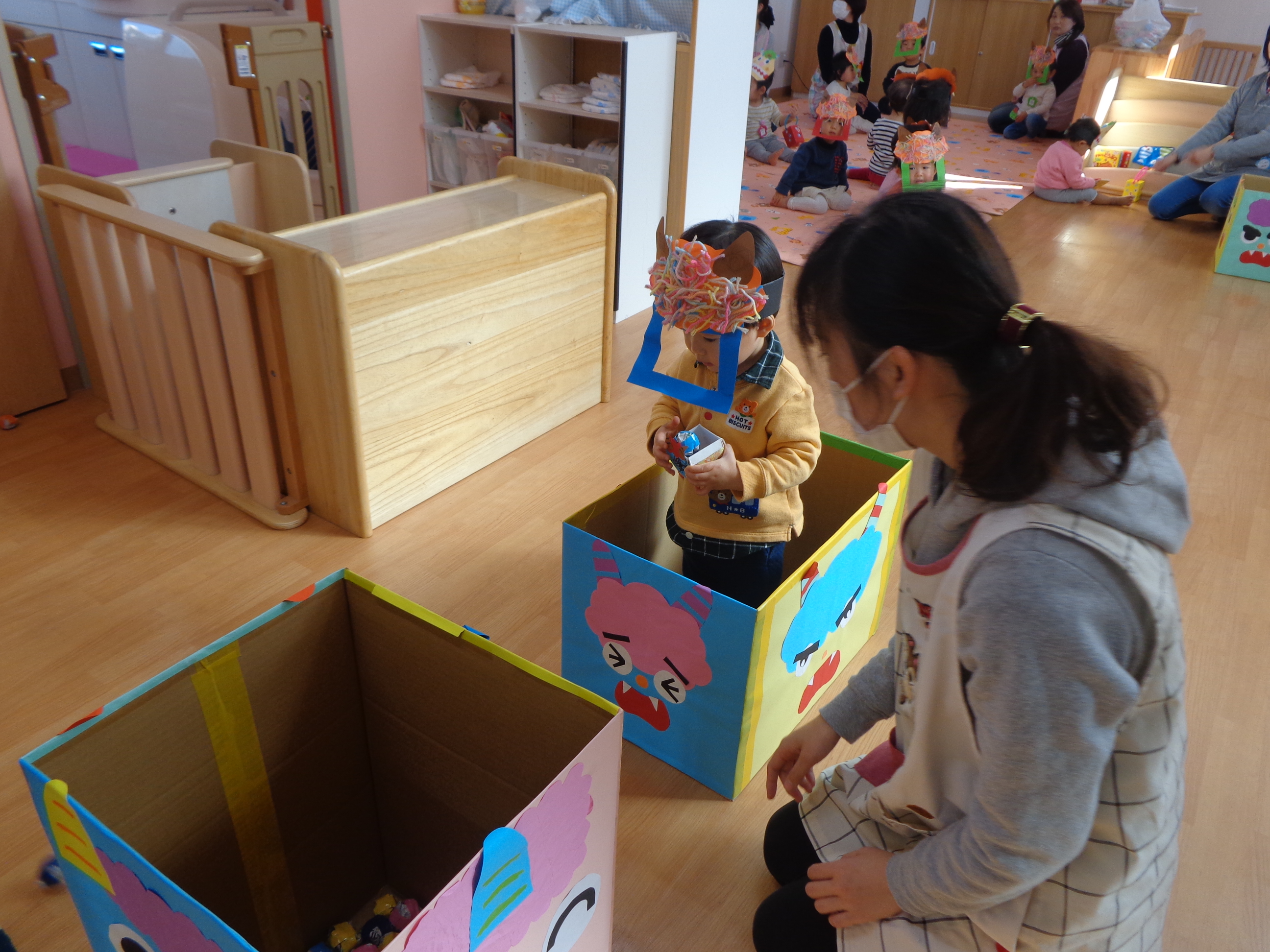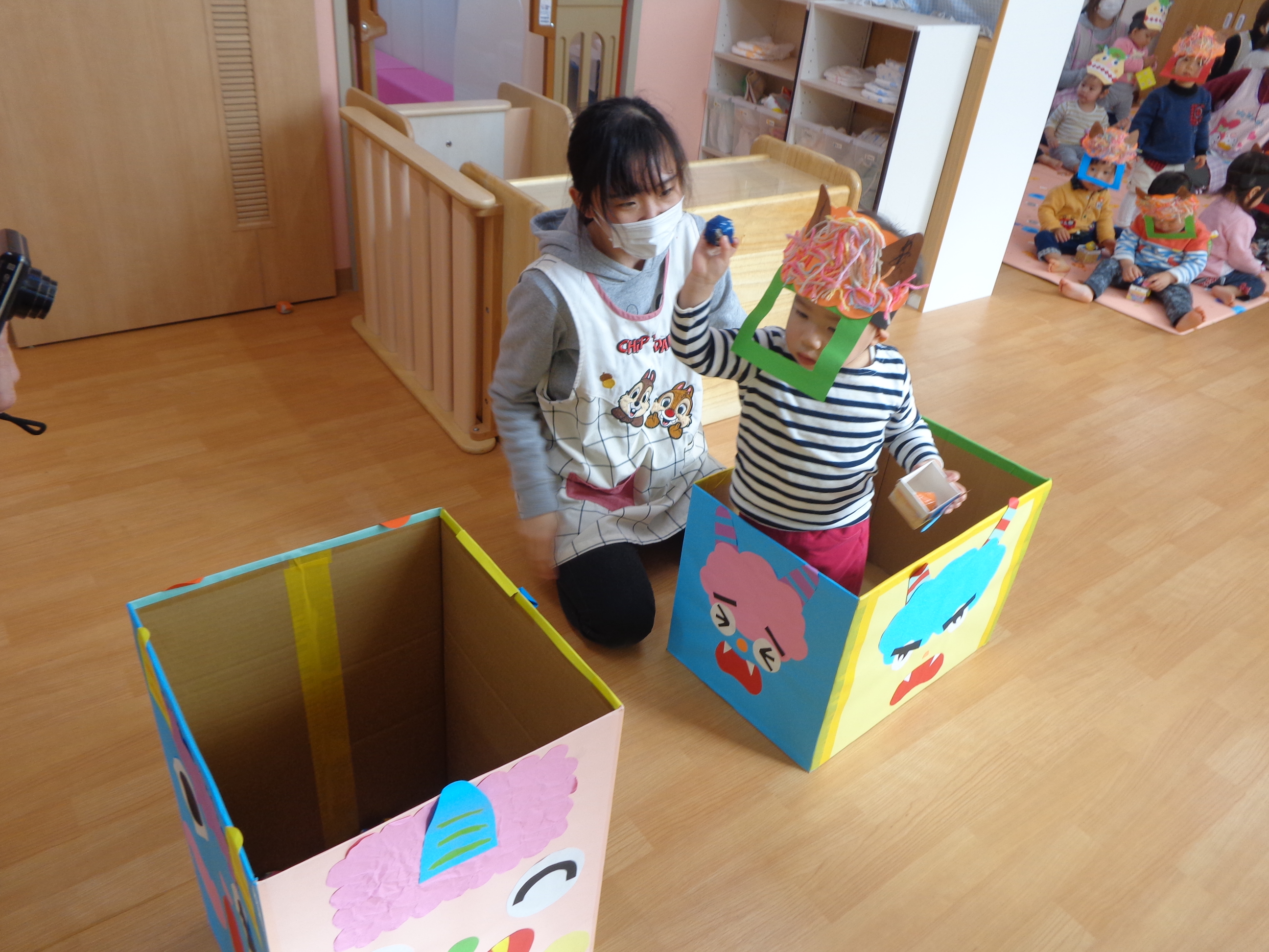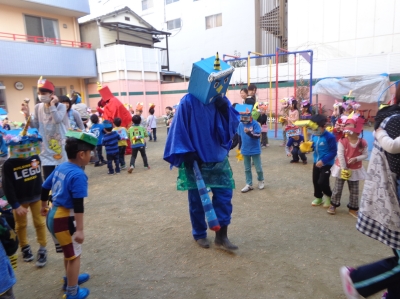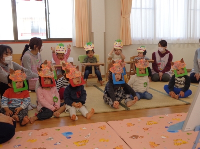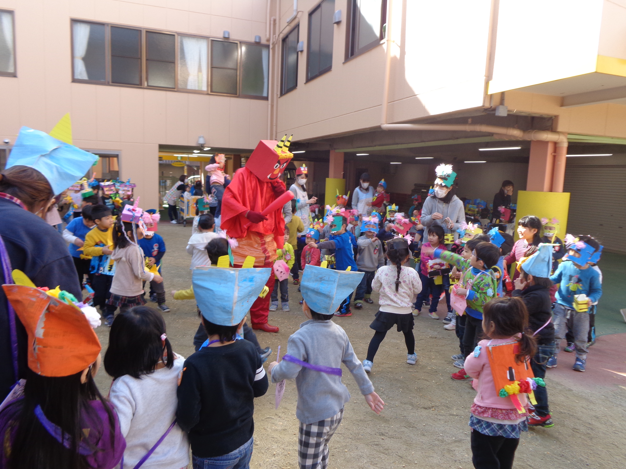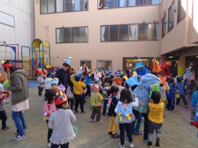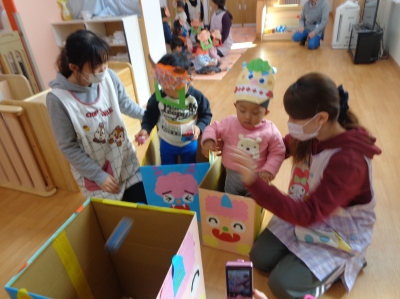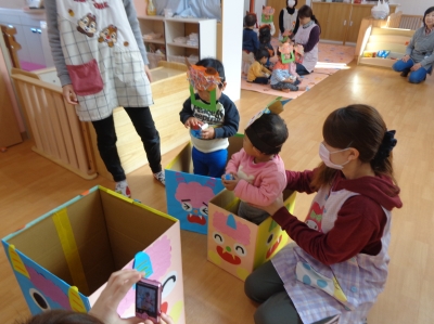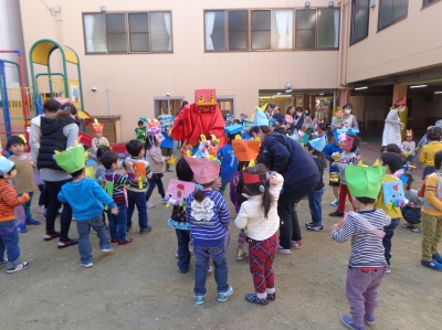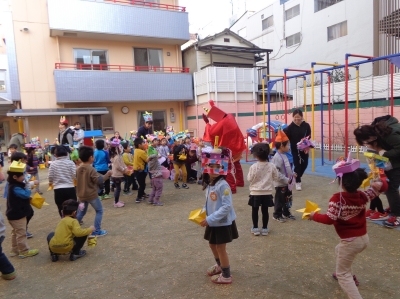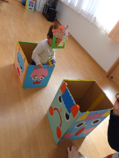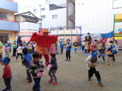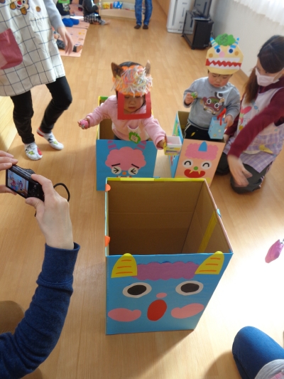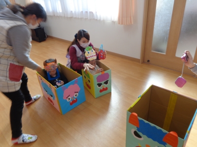鬼さんが少し怖かったけど、豆まき楽しかったね!
