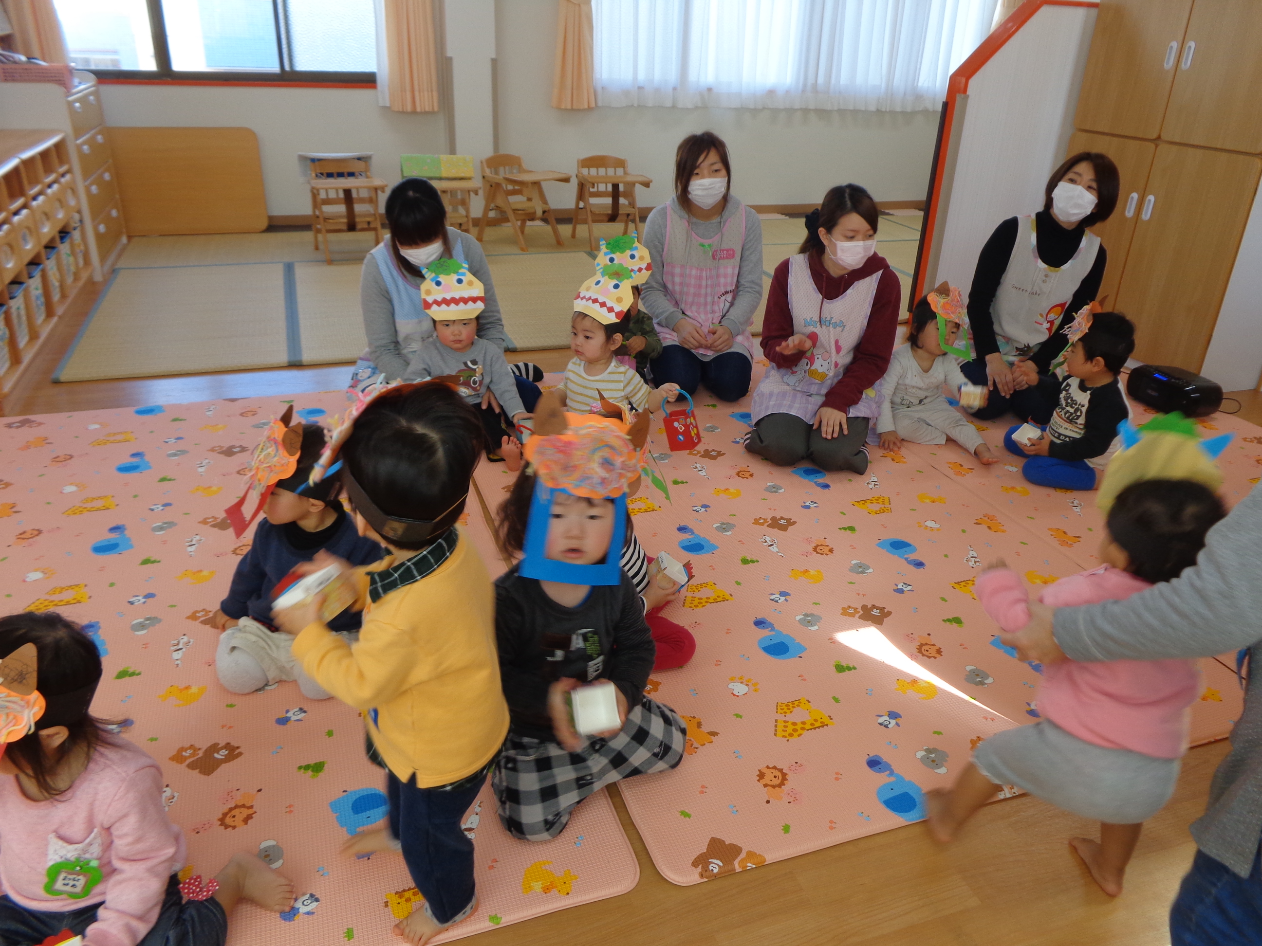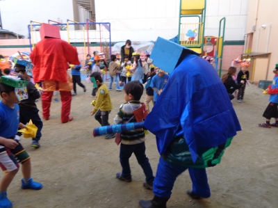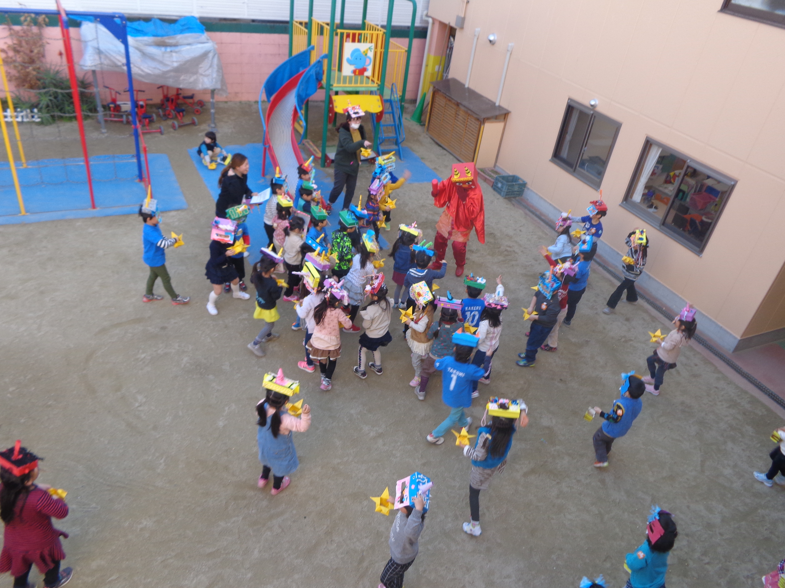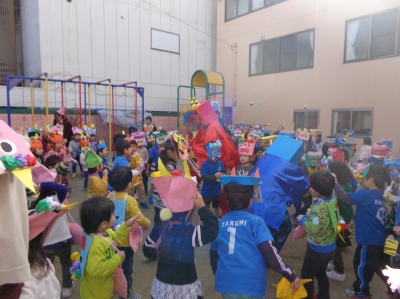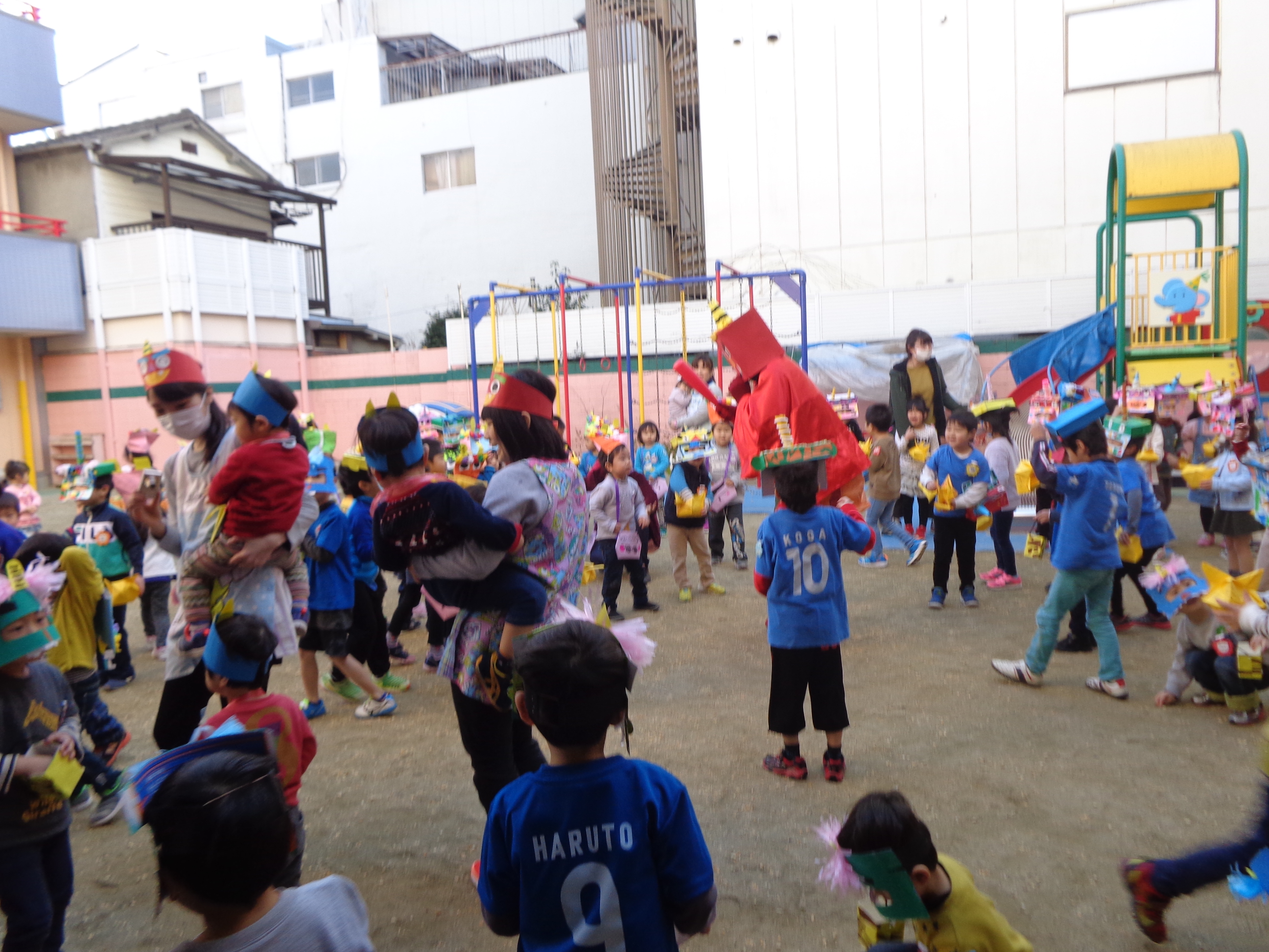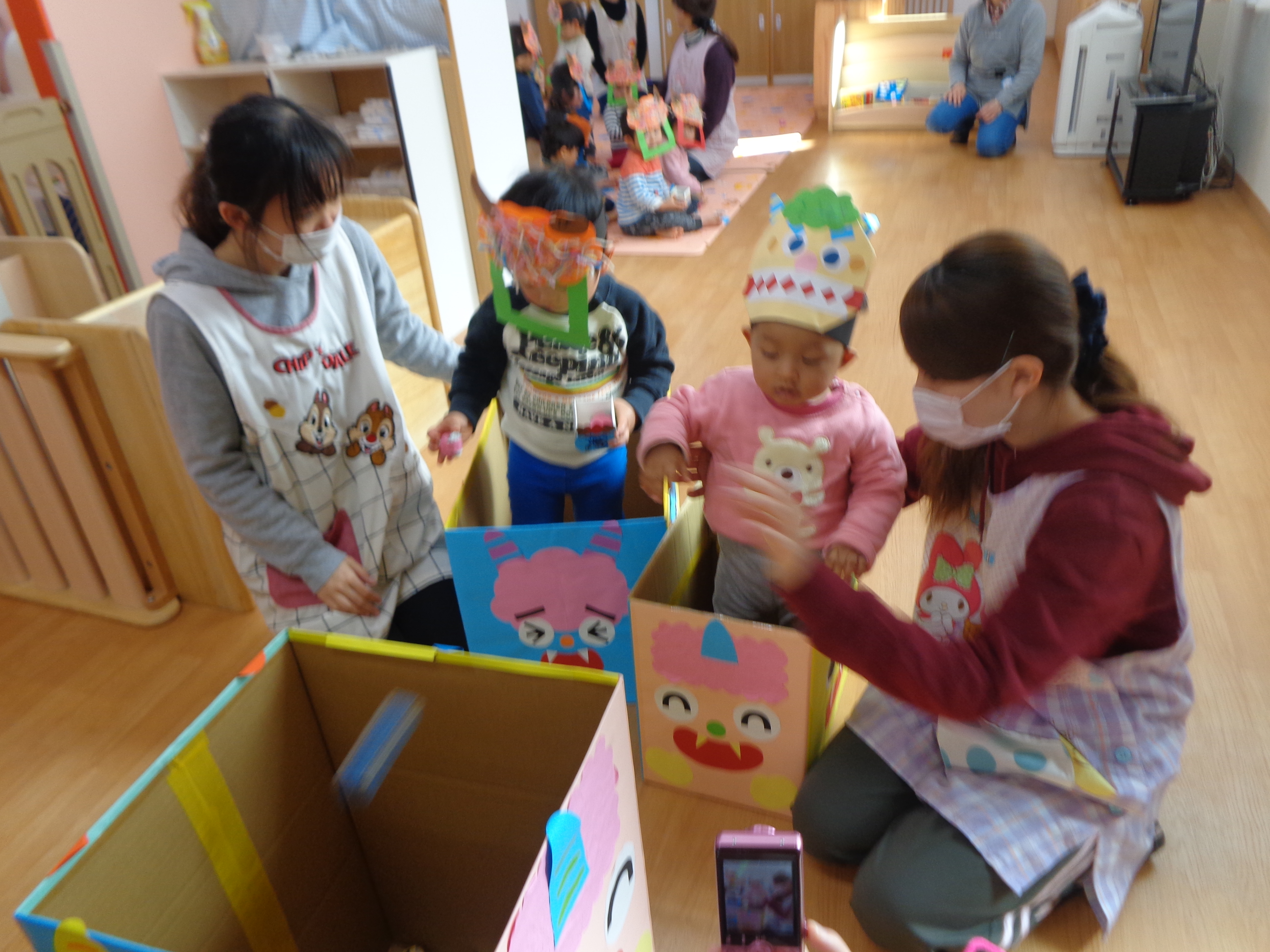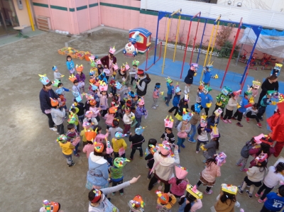 鬼さんが少し怖かったけど、豆まき楽しかったね!
