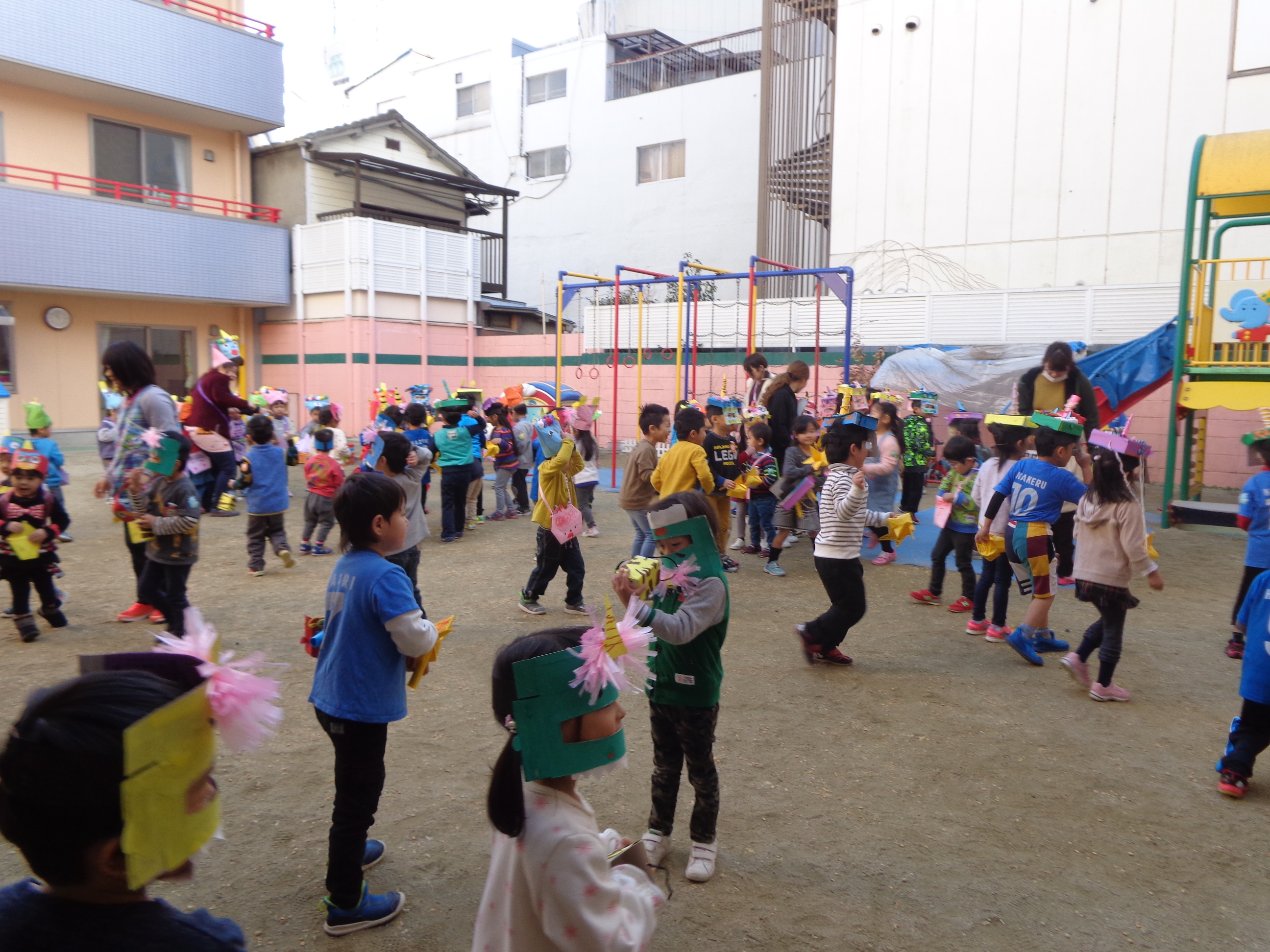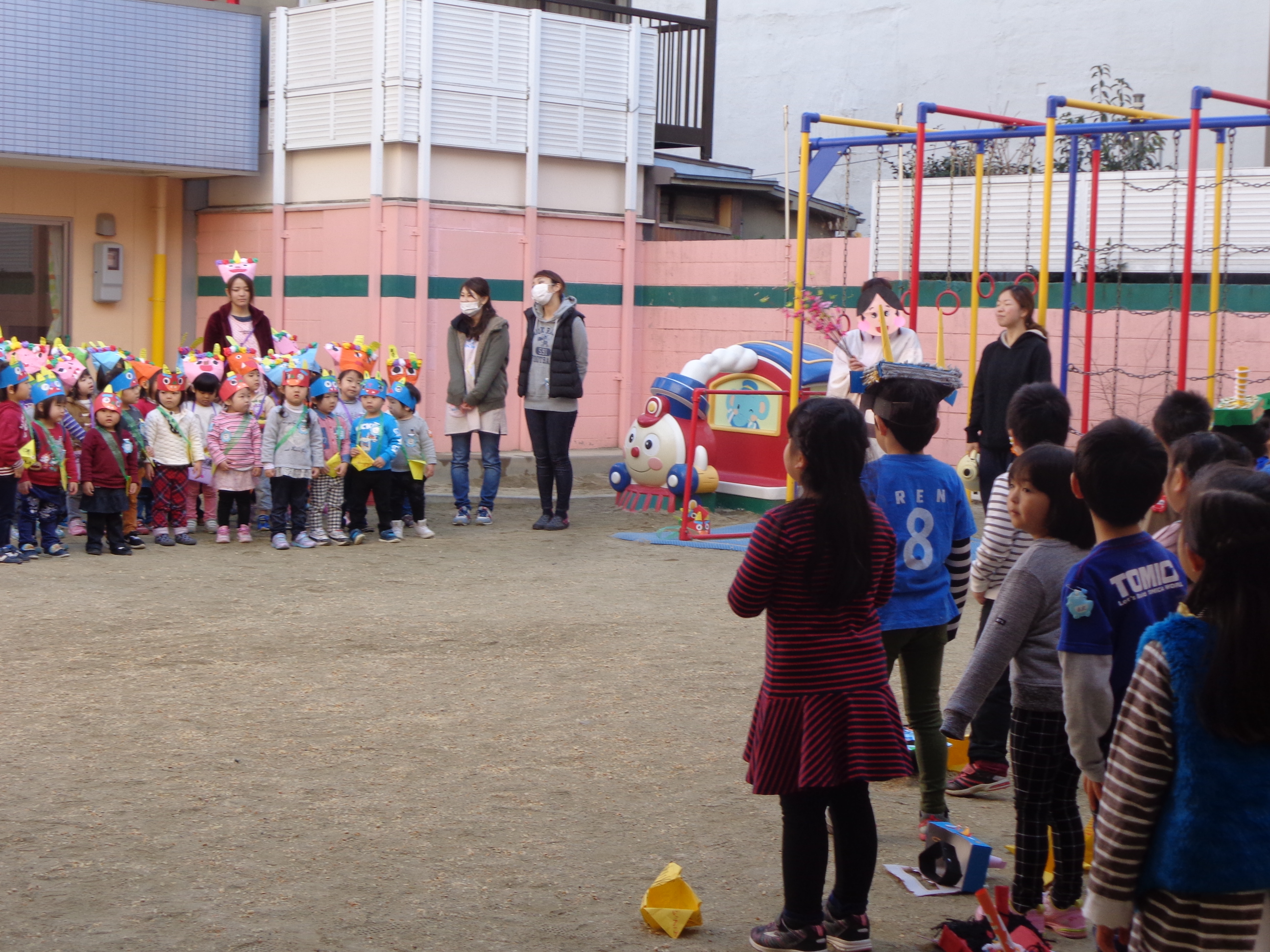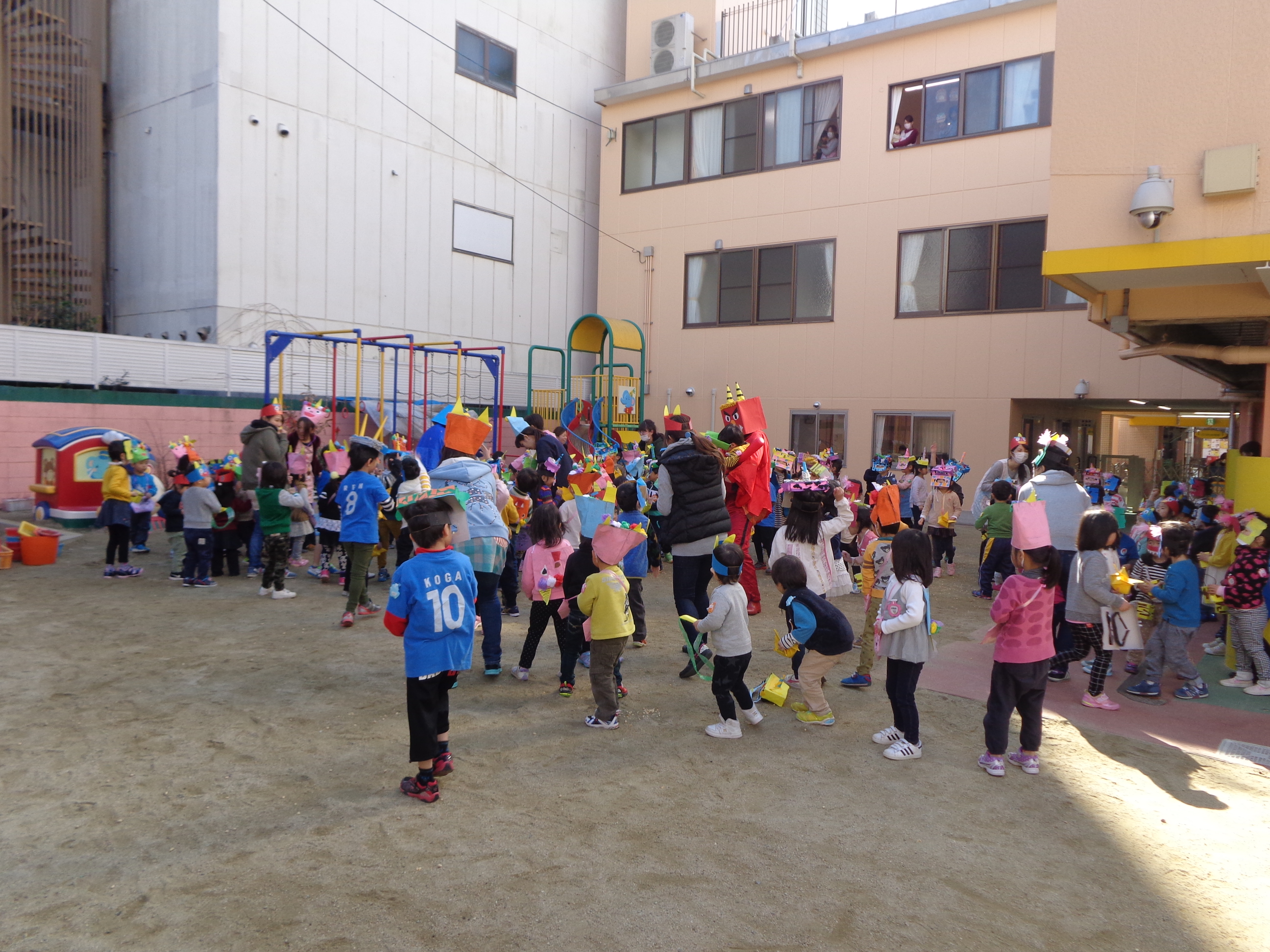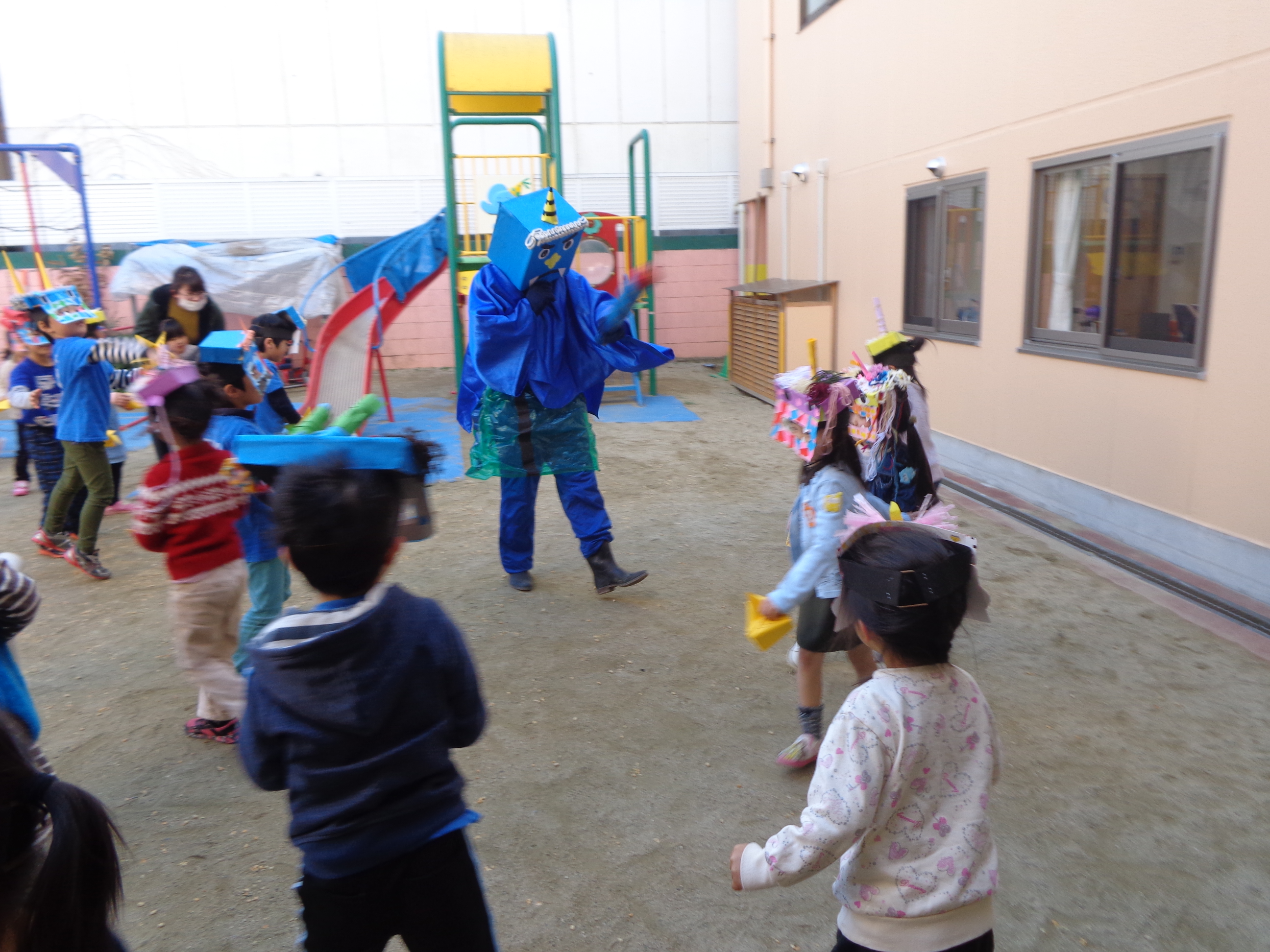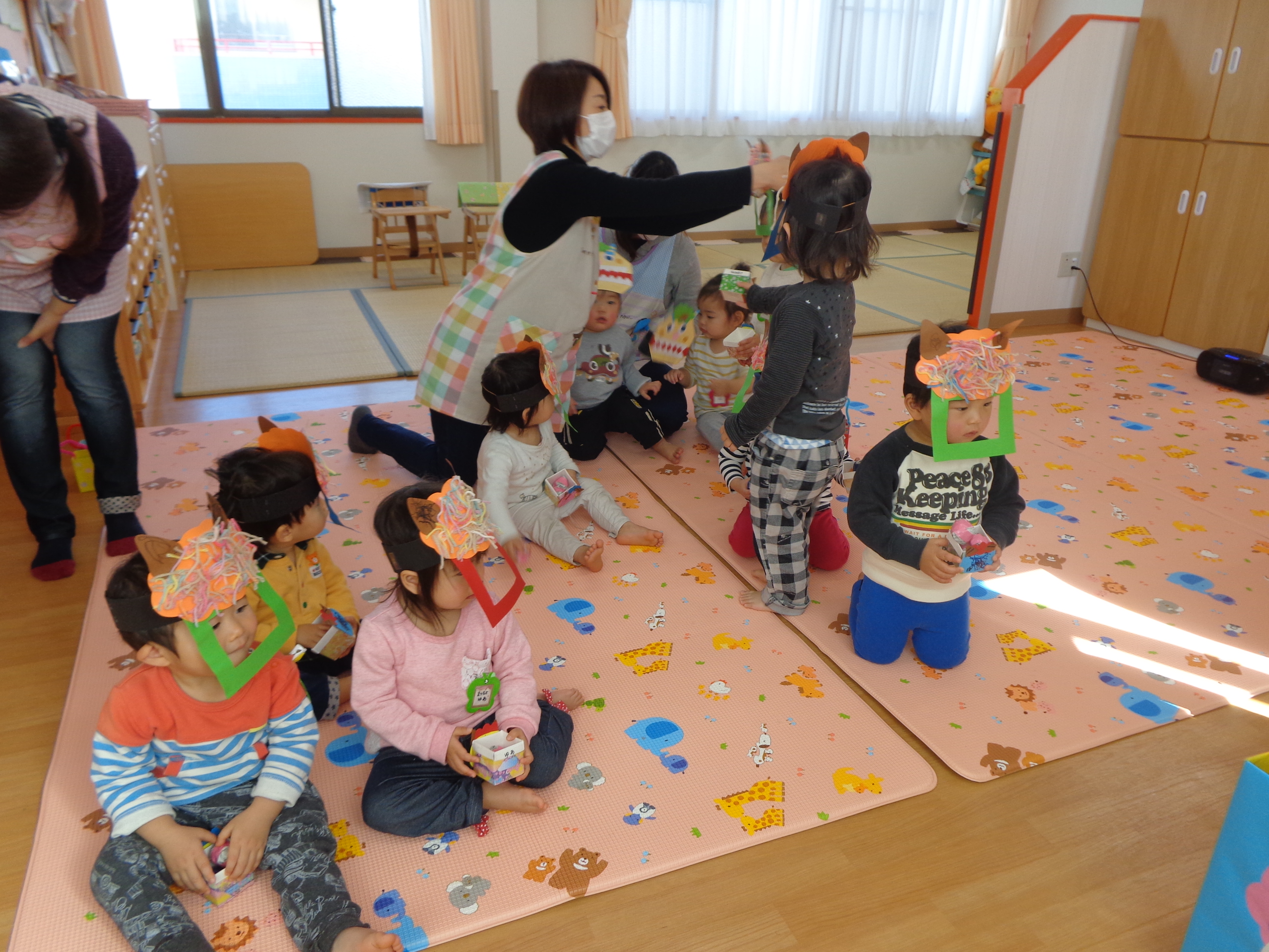 鬼さんが少し怖かったけど、豆まき楽しかったね!