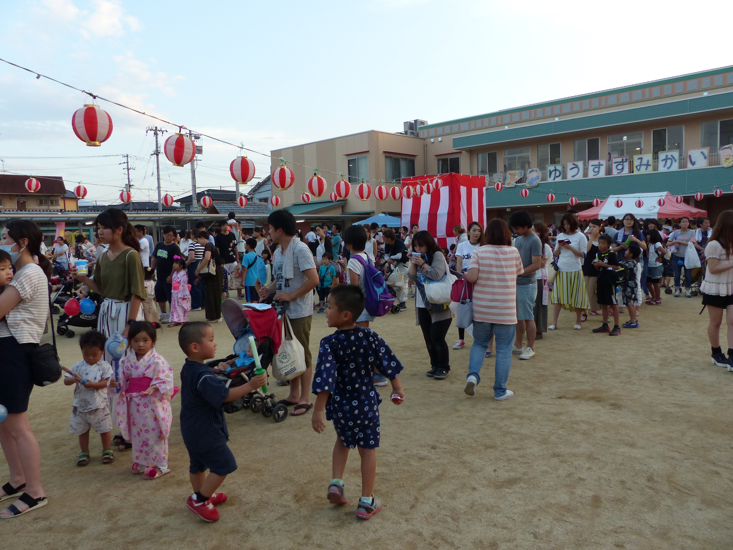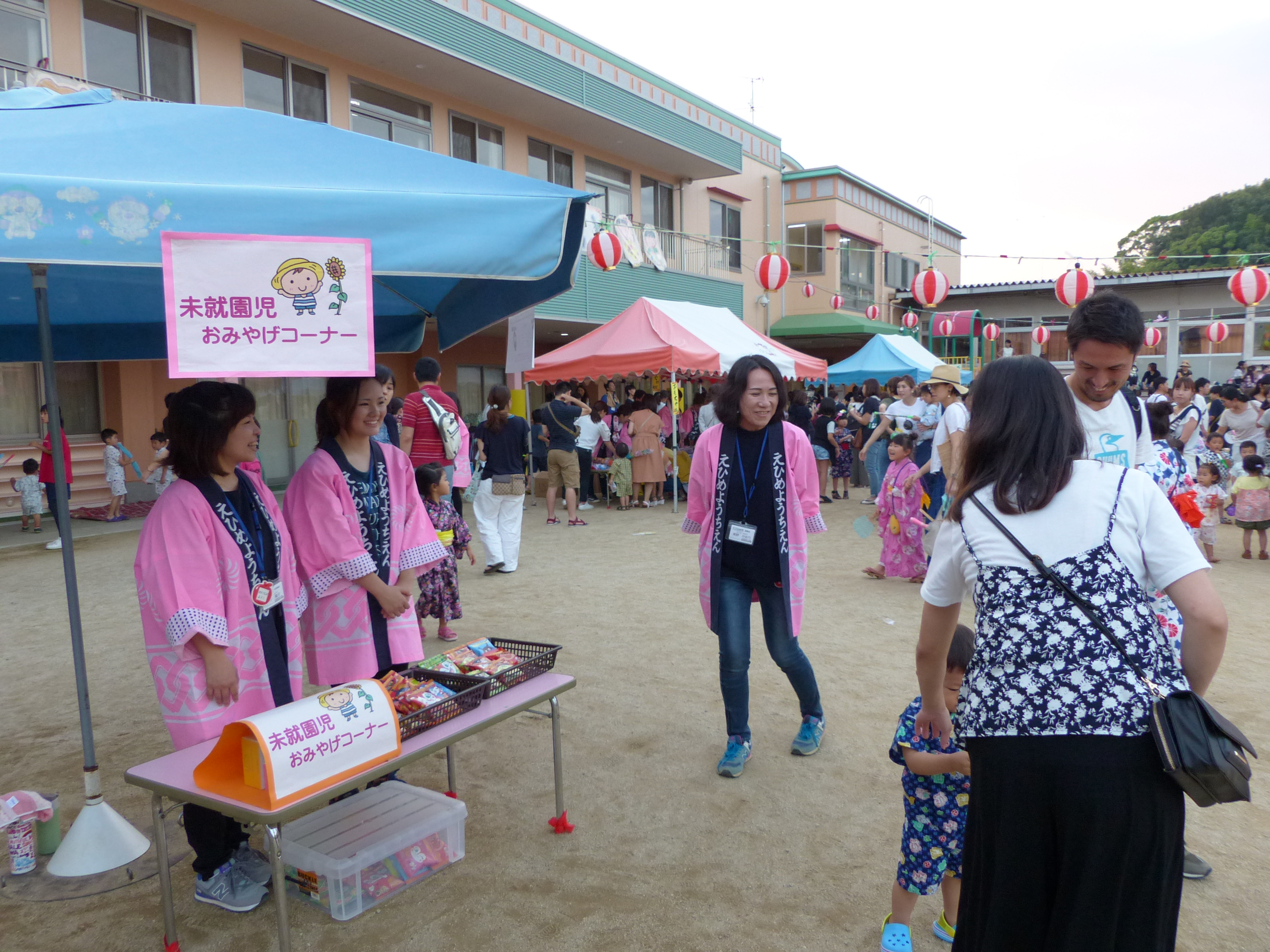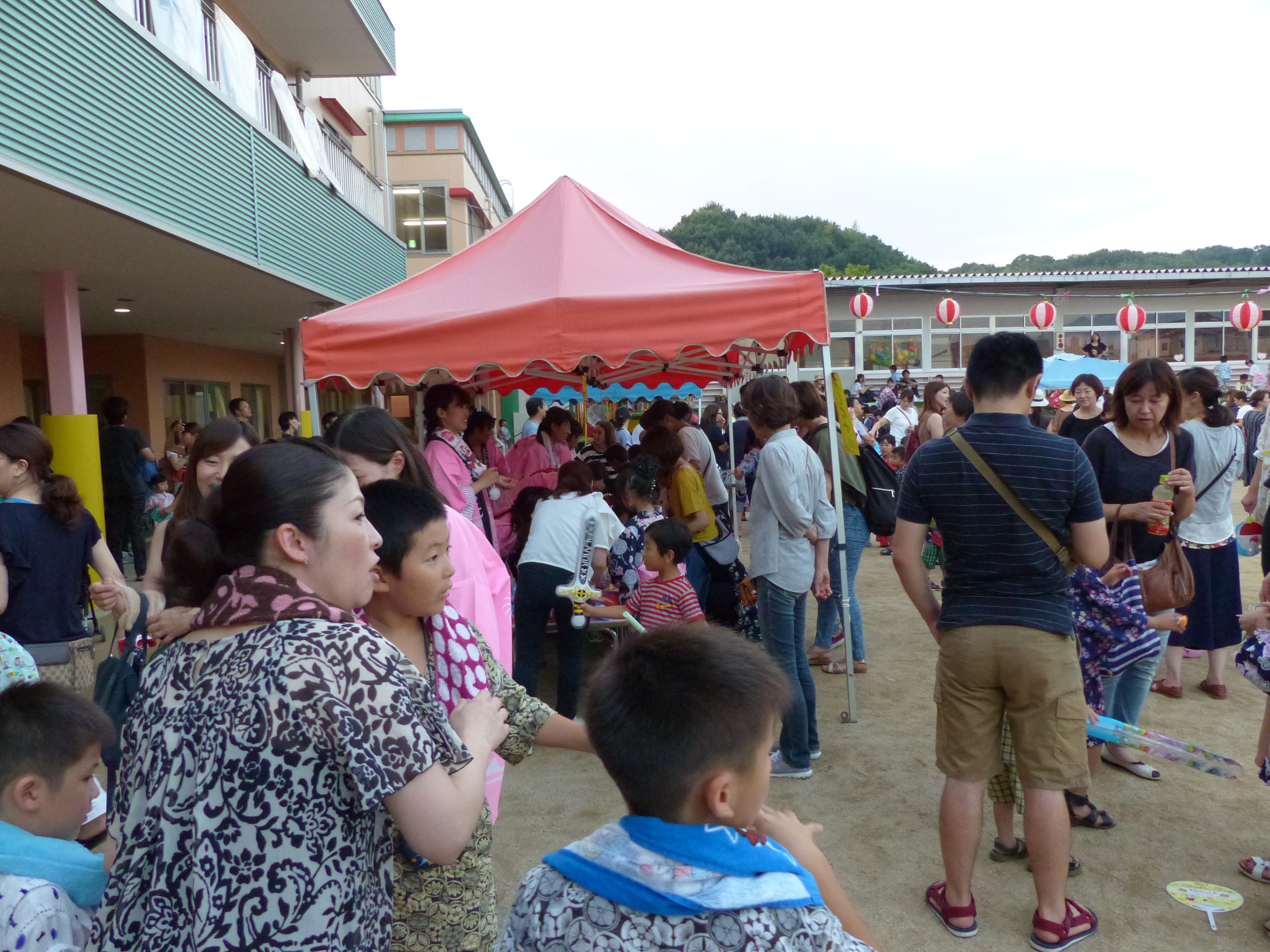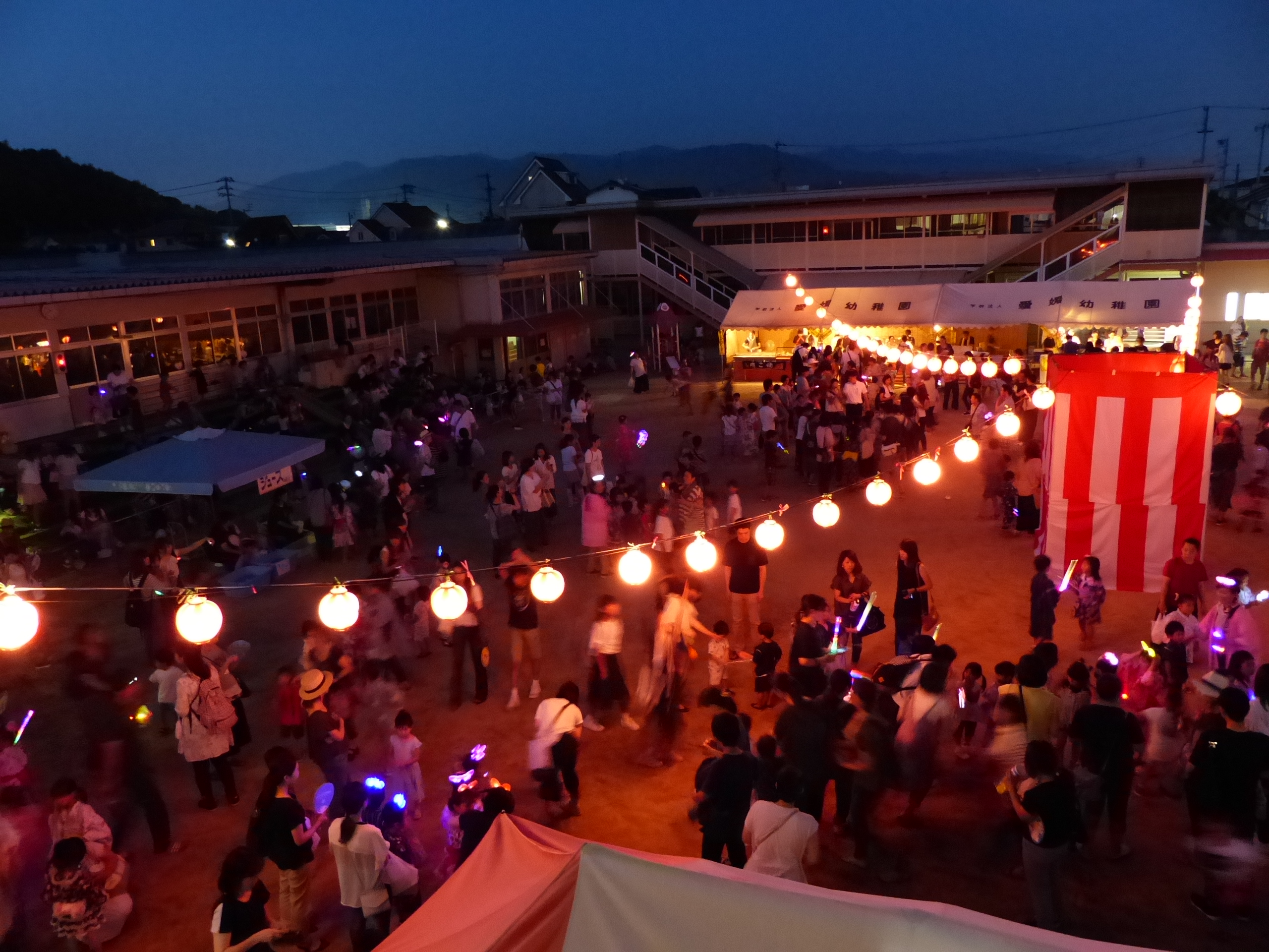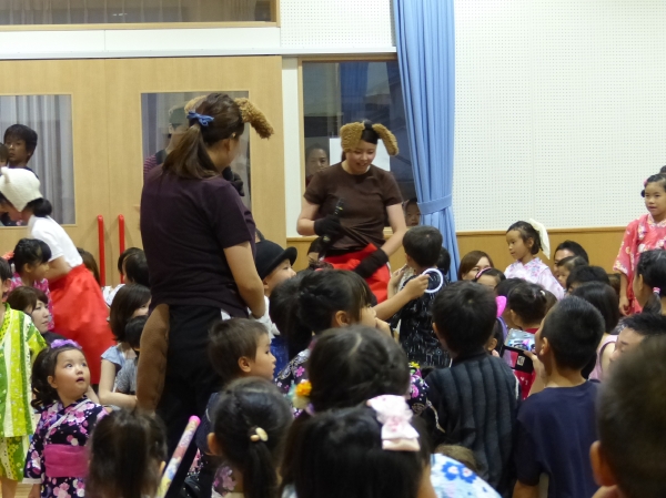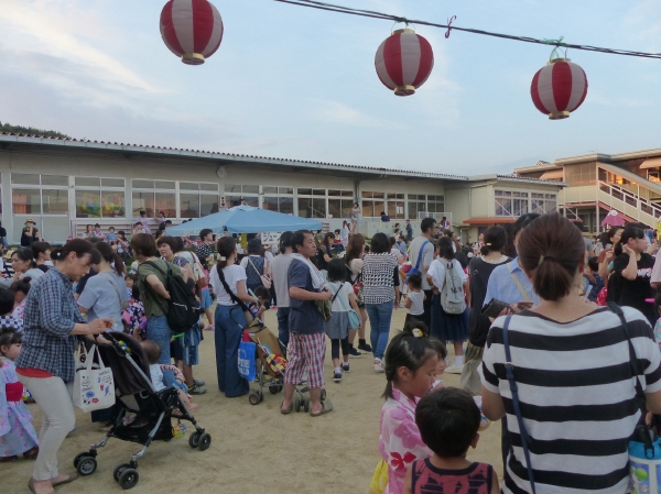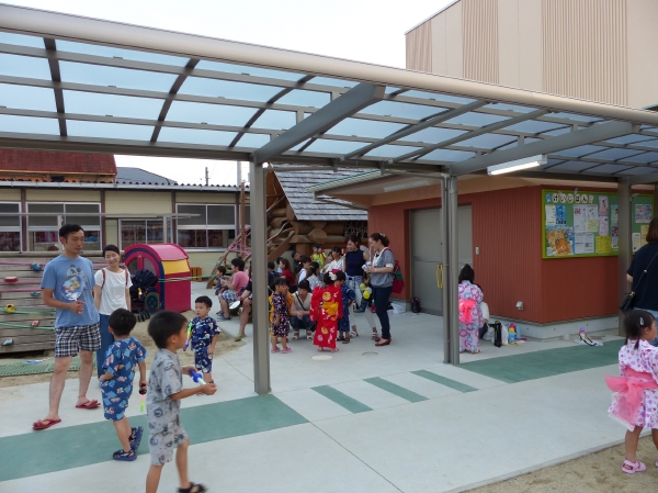 たこ焼きにジュースにおもちゃ、先生の劇、提灯の下で盆踊りと、夏の夕べを楽しみました!