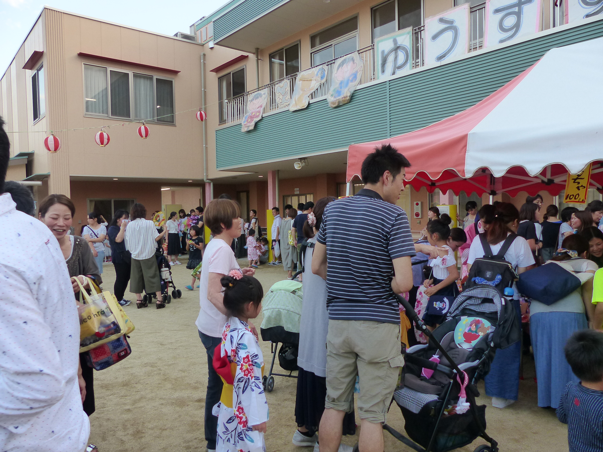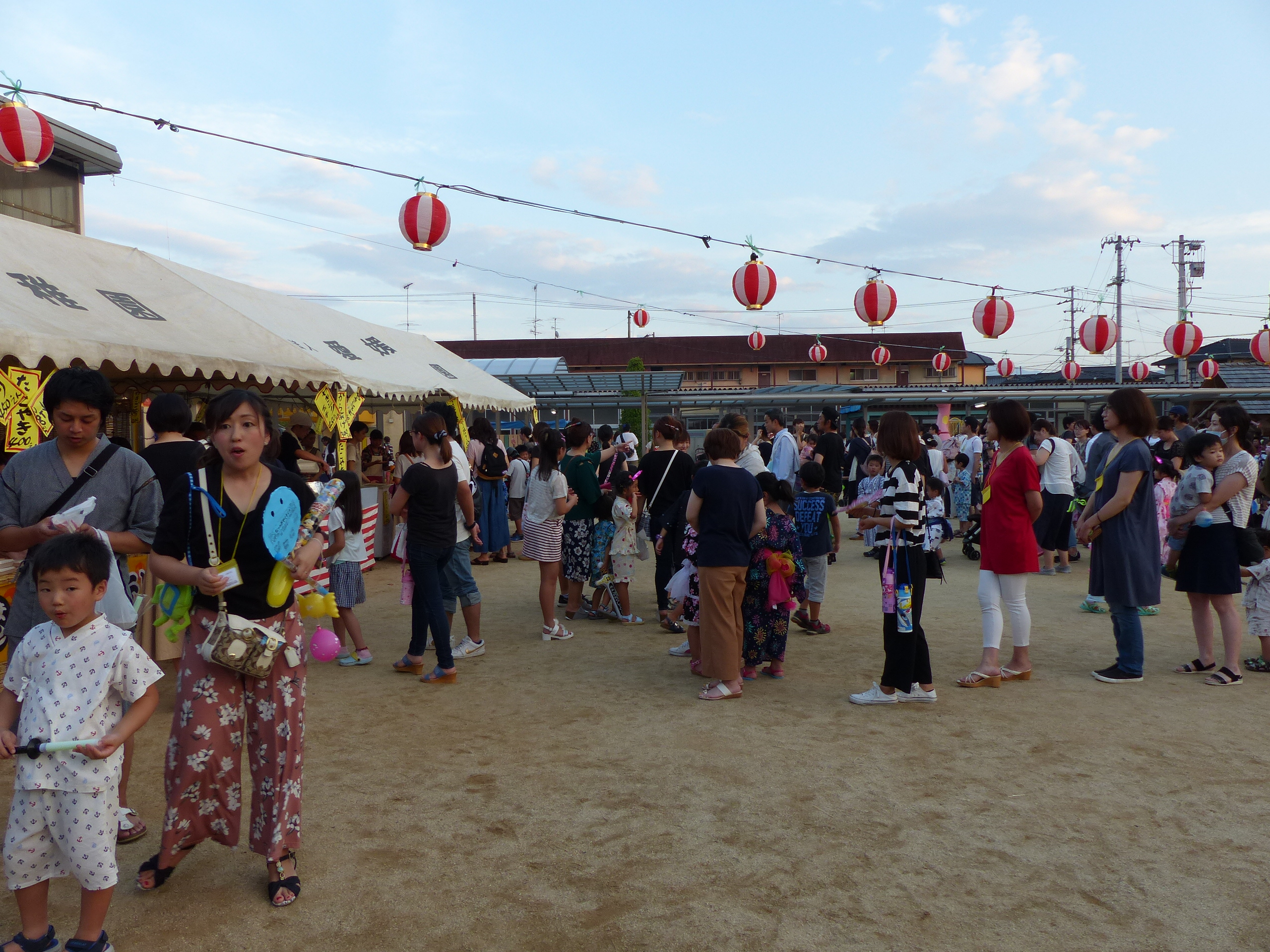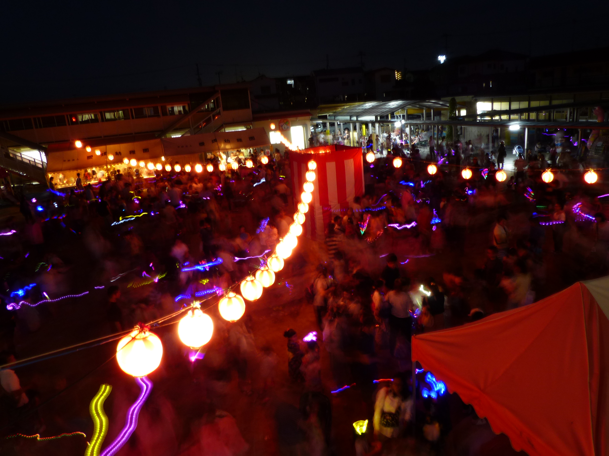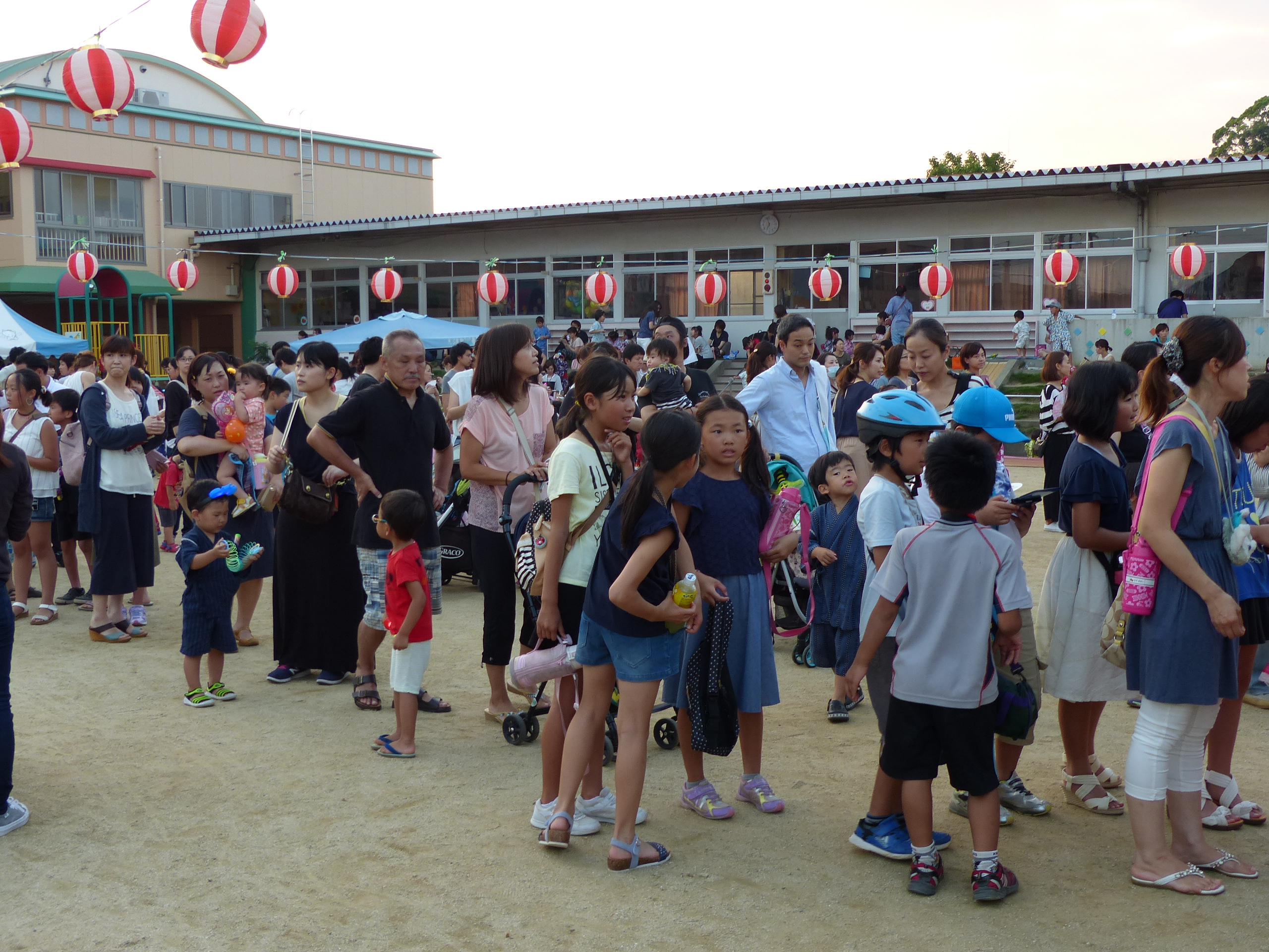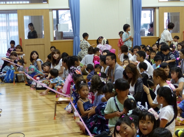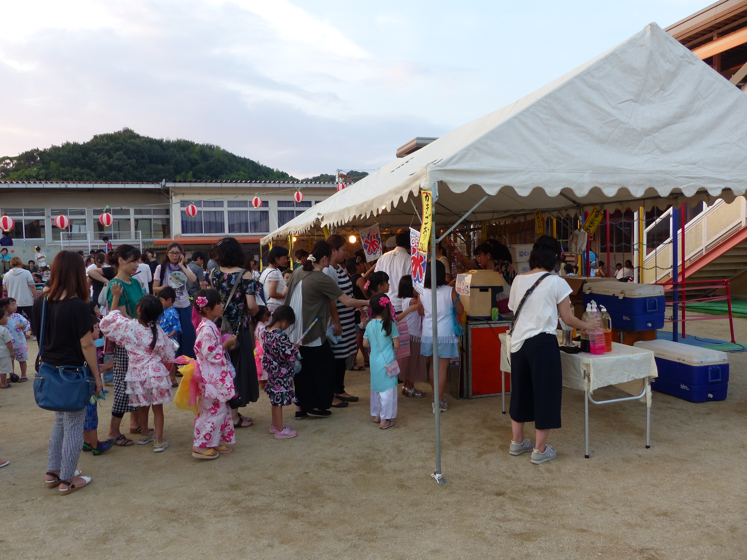 たこ焼きにジュースにおもちゃ、先生の劇、提灯の下で盆踊りと、夏の夕べを楽しみました!