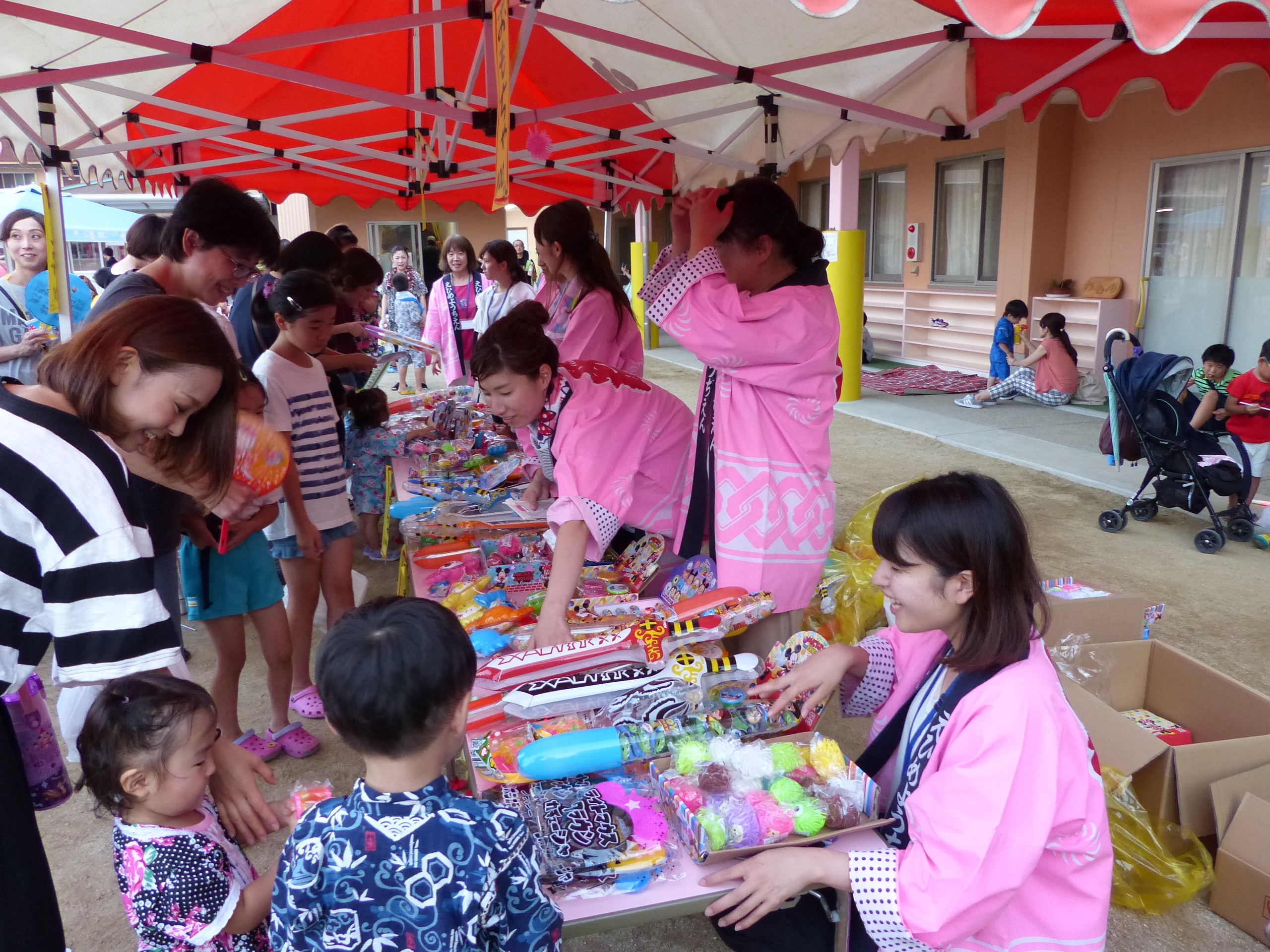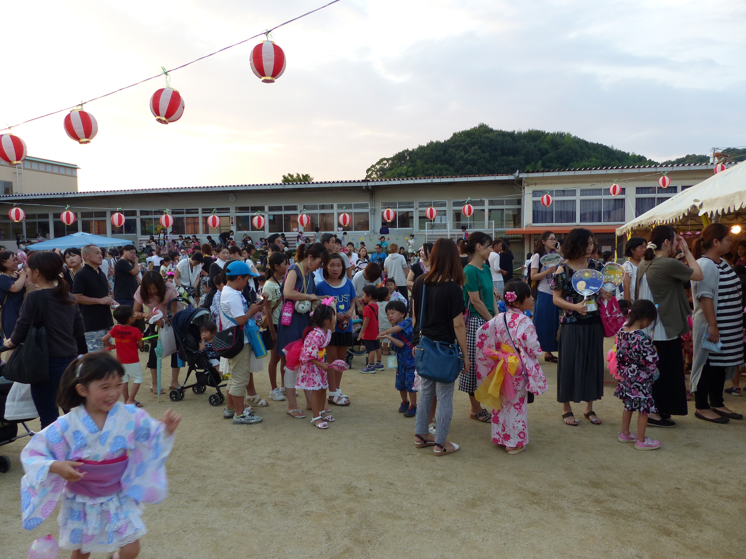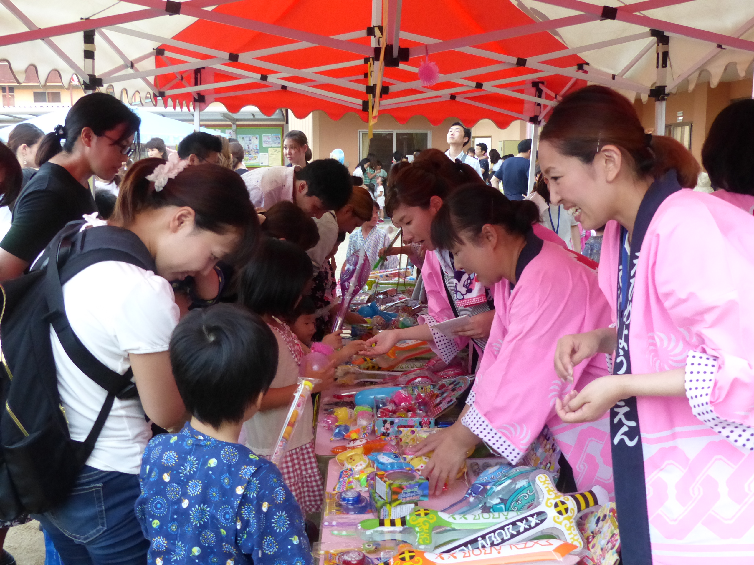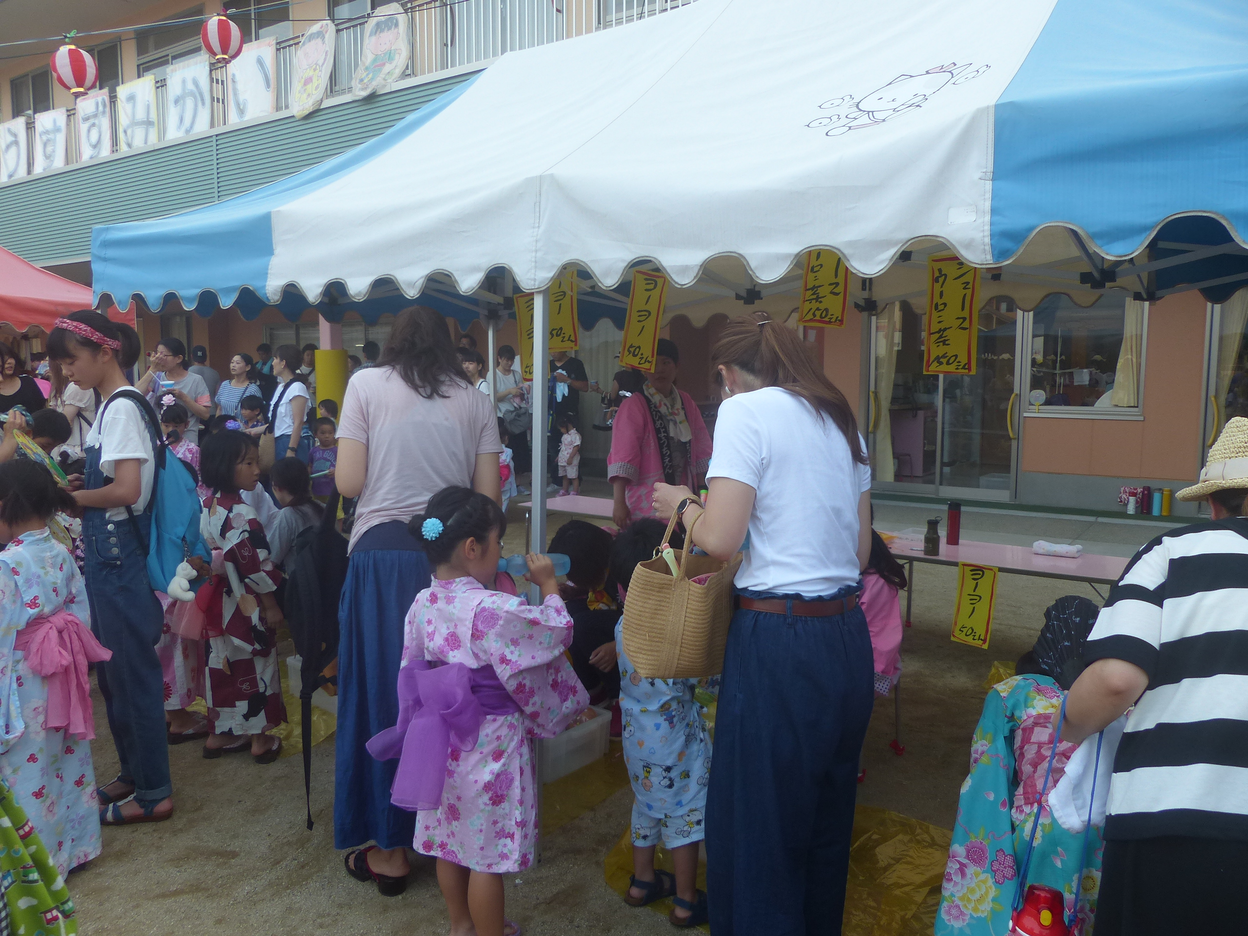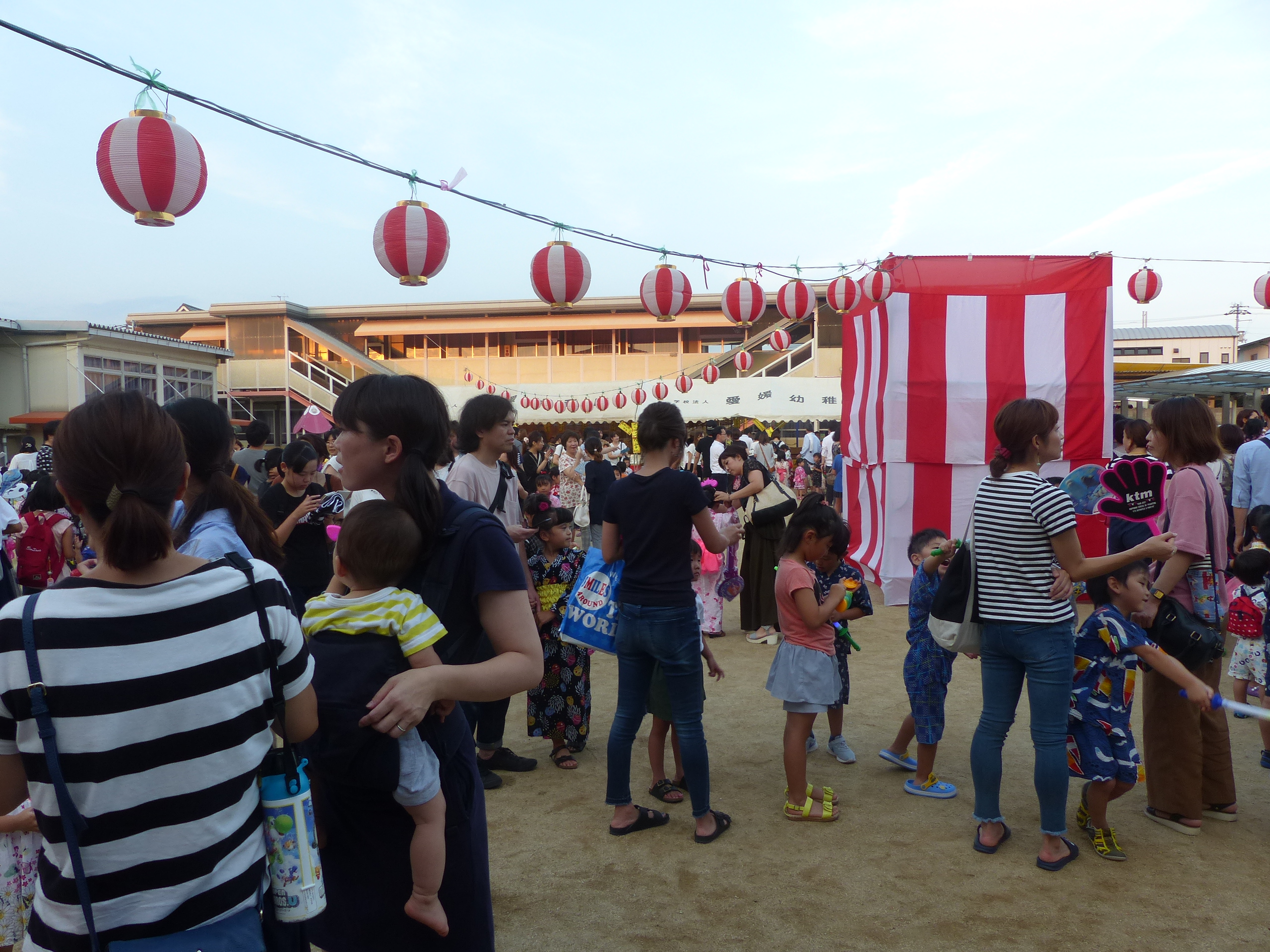 たこ焼きにジュースにおもちゃ、先生の劇、提灯の下で盆踊りと、夏の夕べを楽しみました!