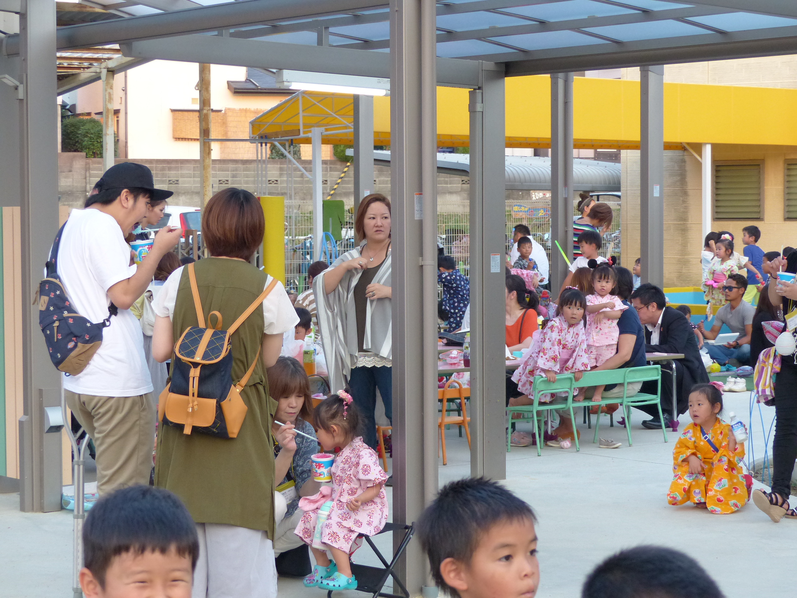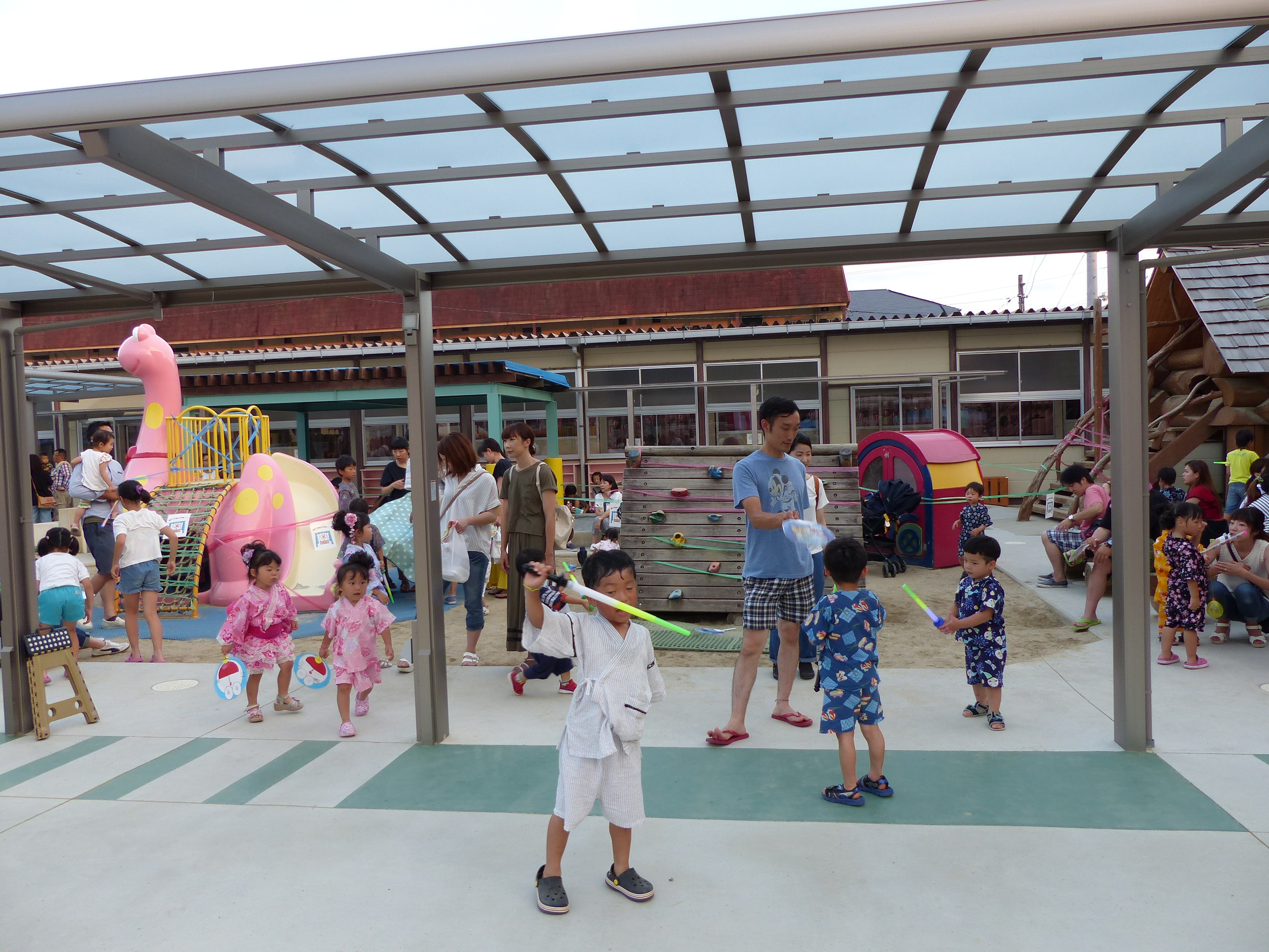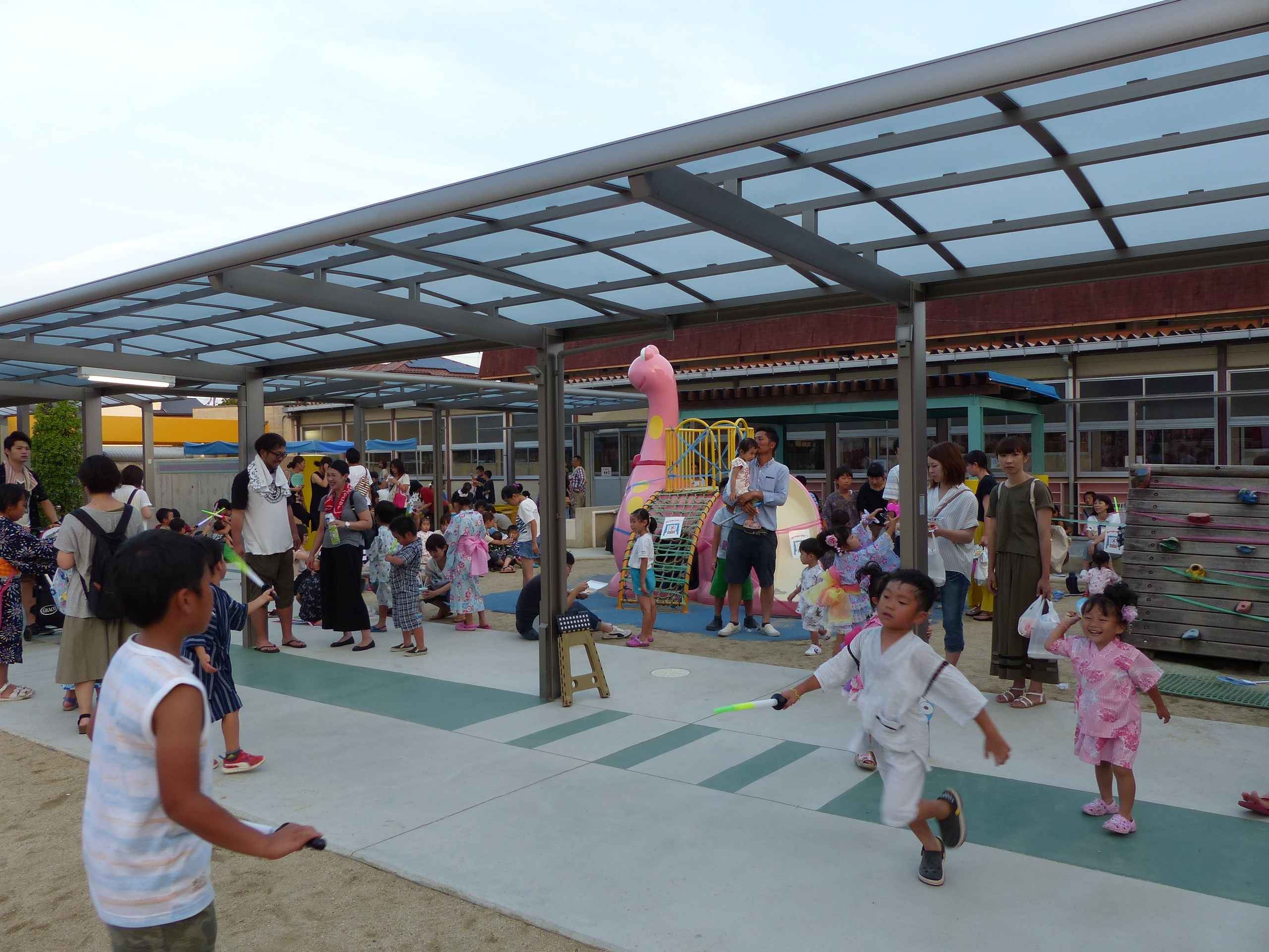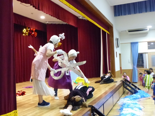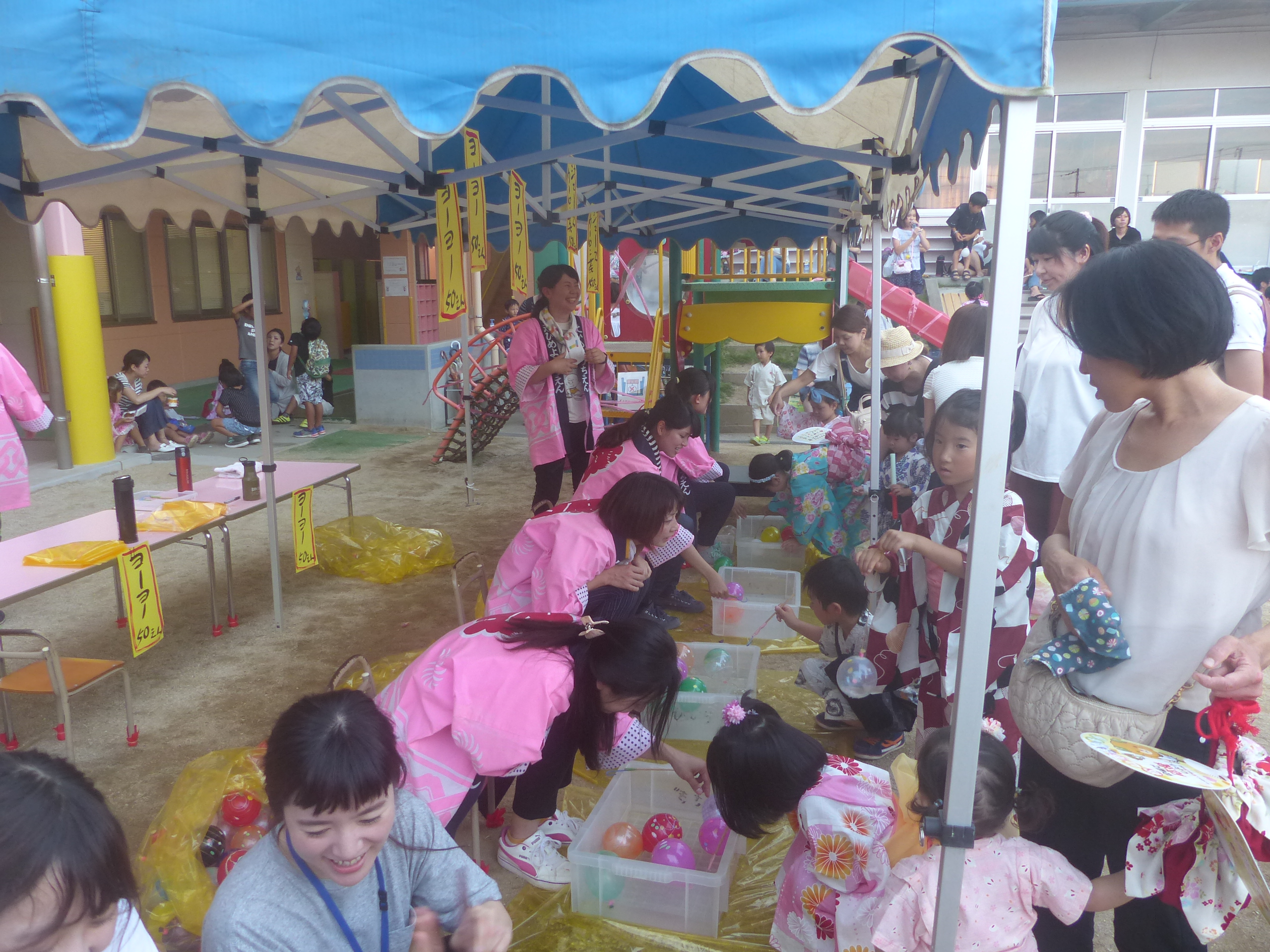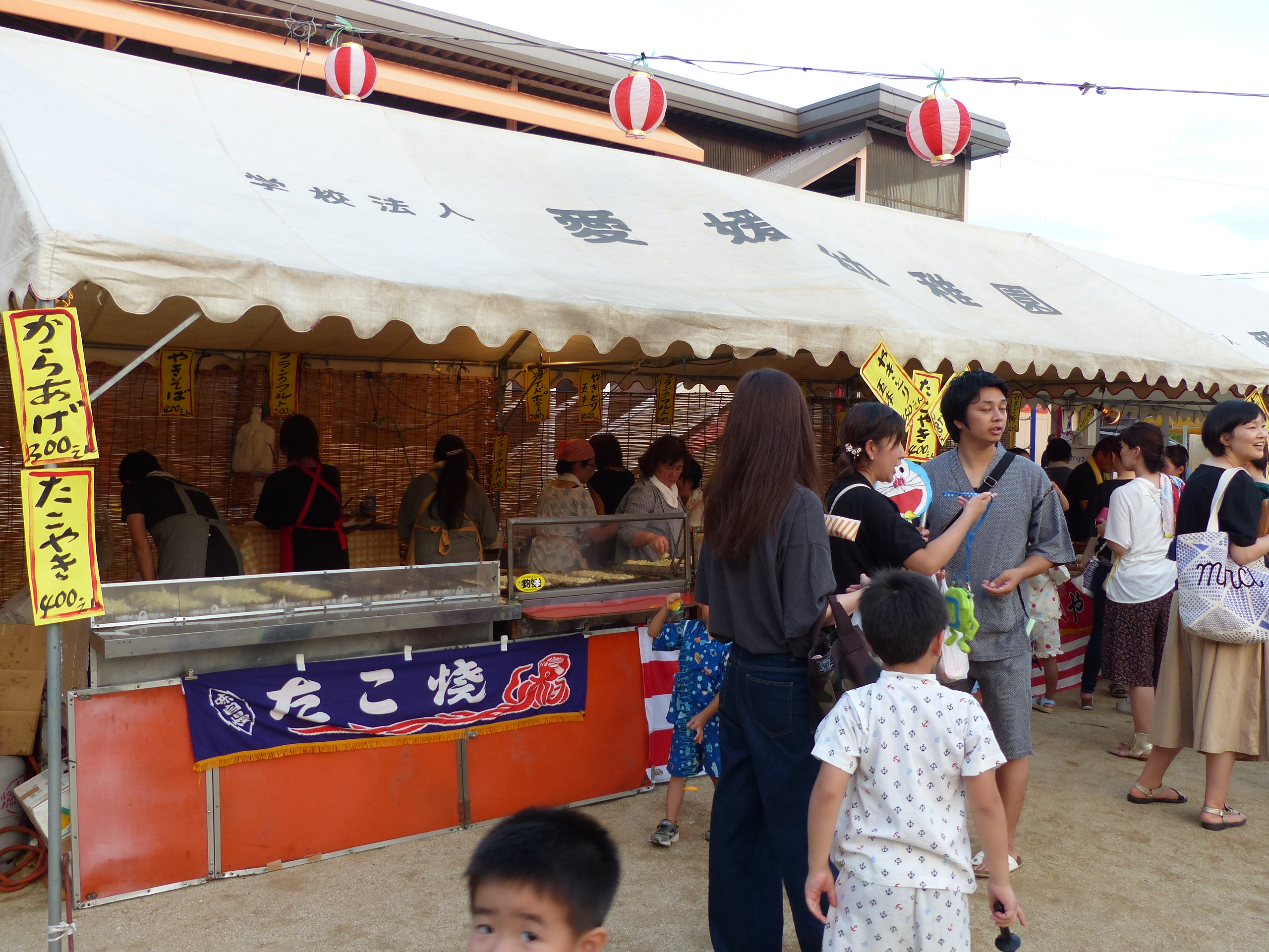 たこ焼きにジュースにおもちゃ、先生の劇、提灯の下で盆踊りと、夏の夕べを楽しみました!