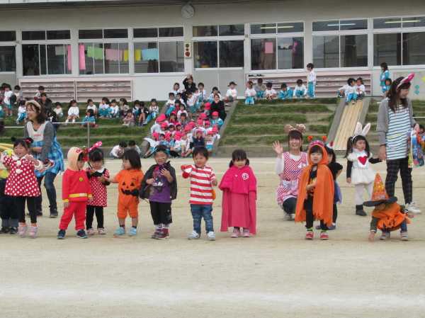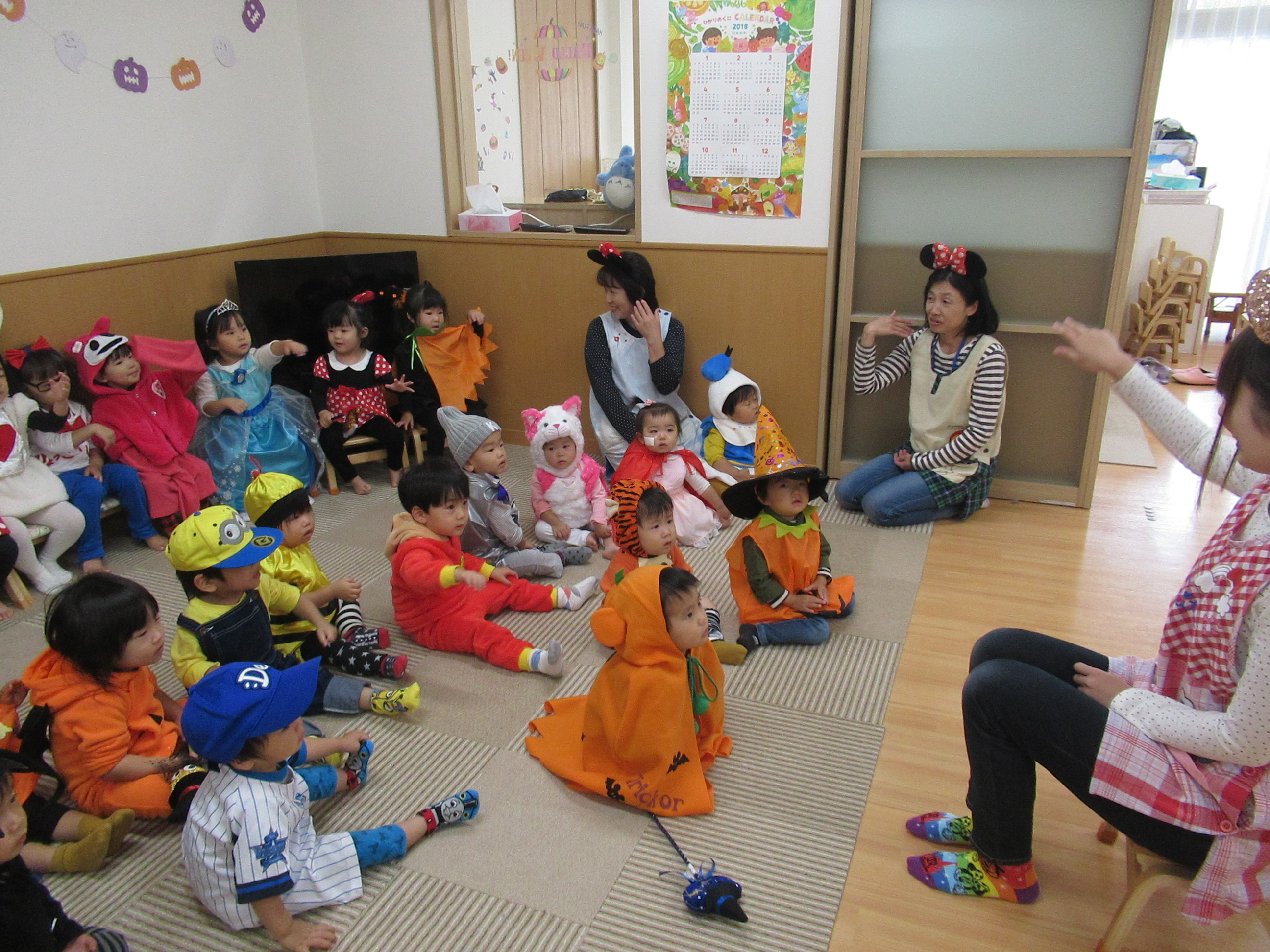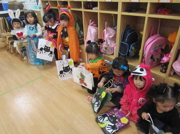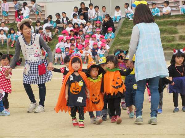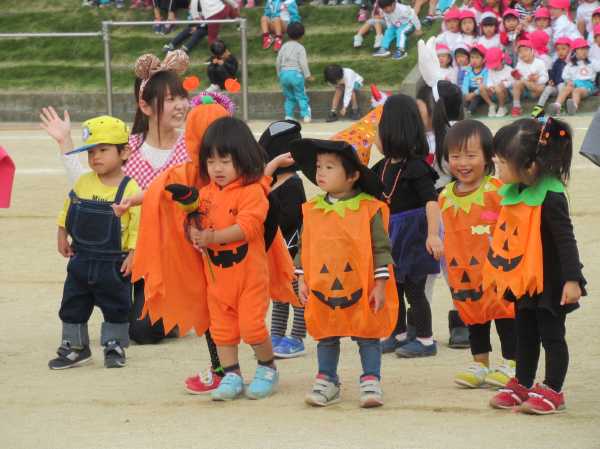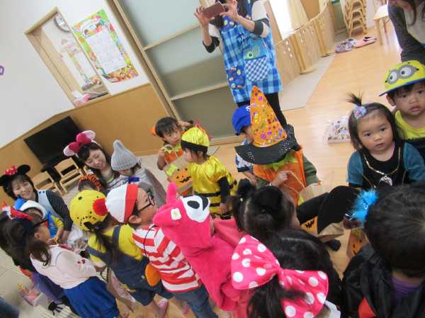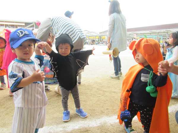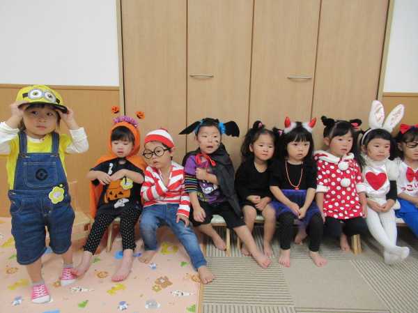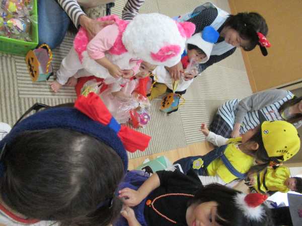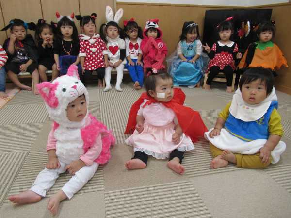 0〜2歳児さんのハロウィン仮装です。お姉さん、お兄さんに見てもらってよかったね!