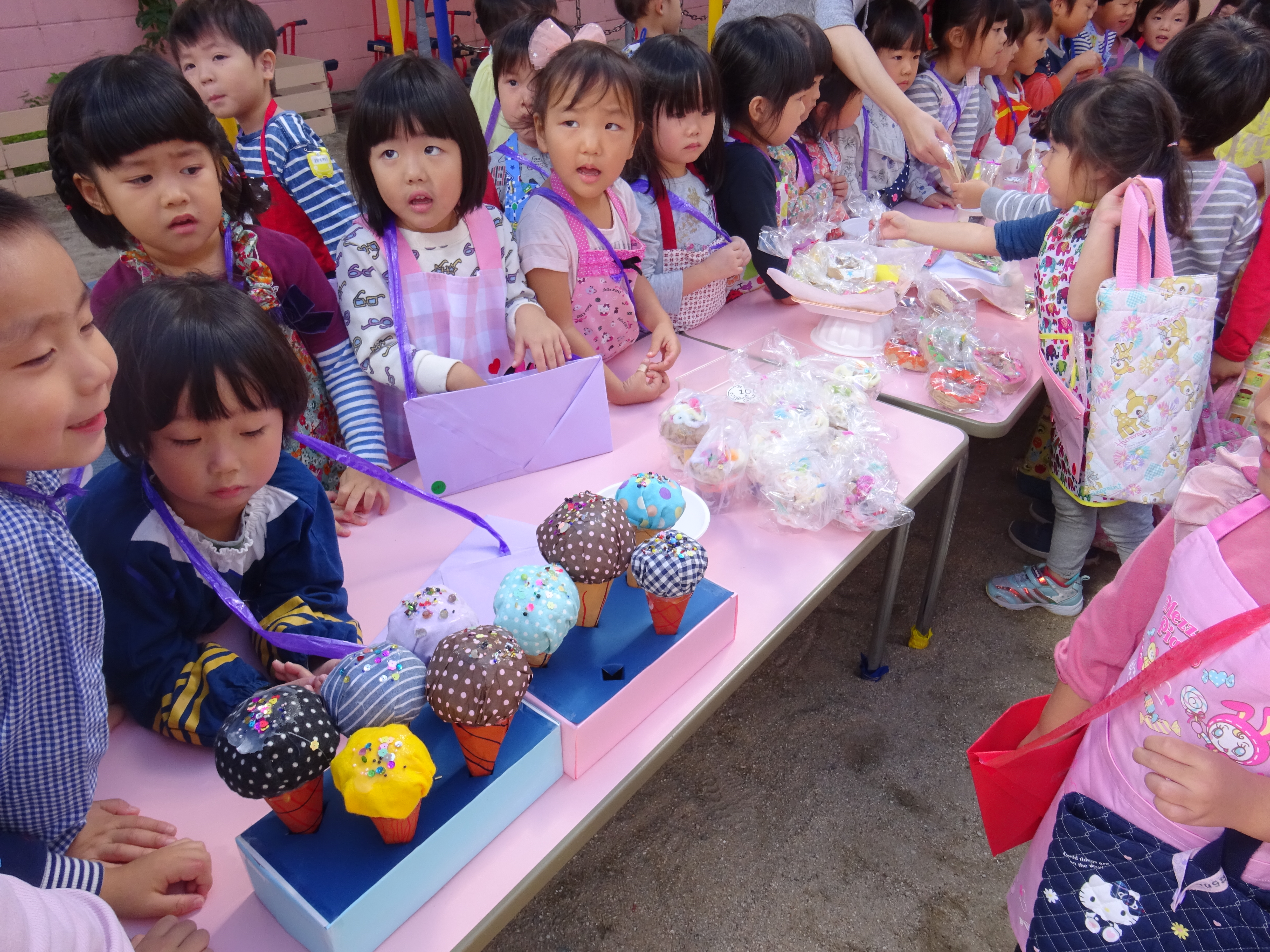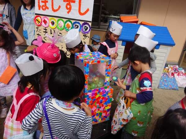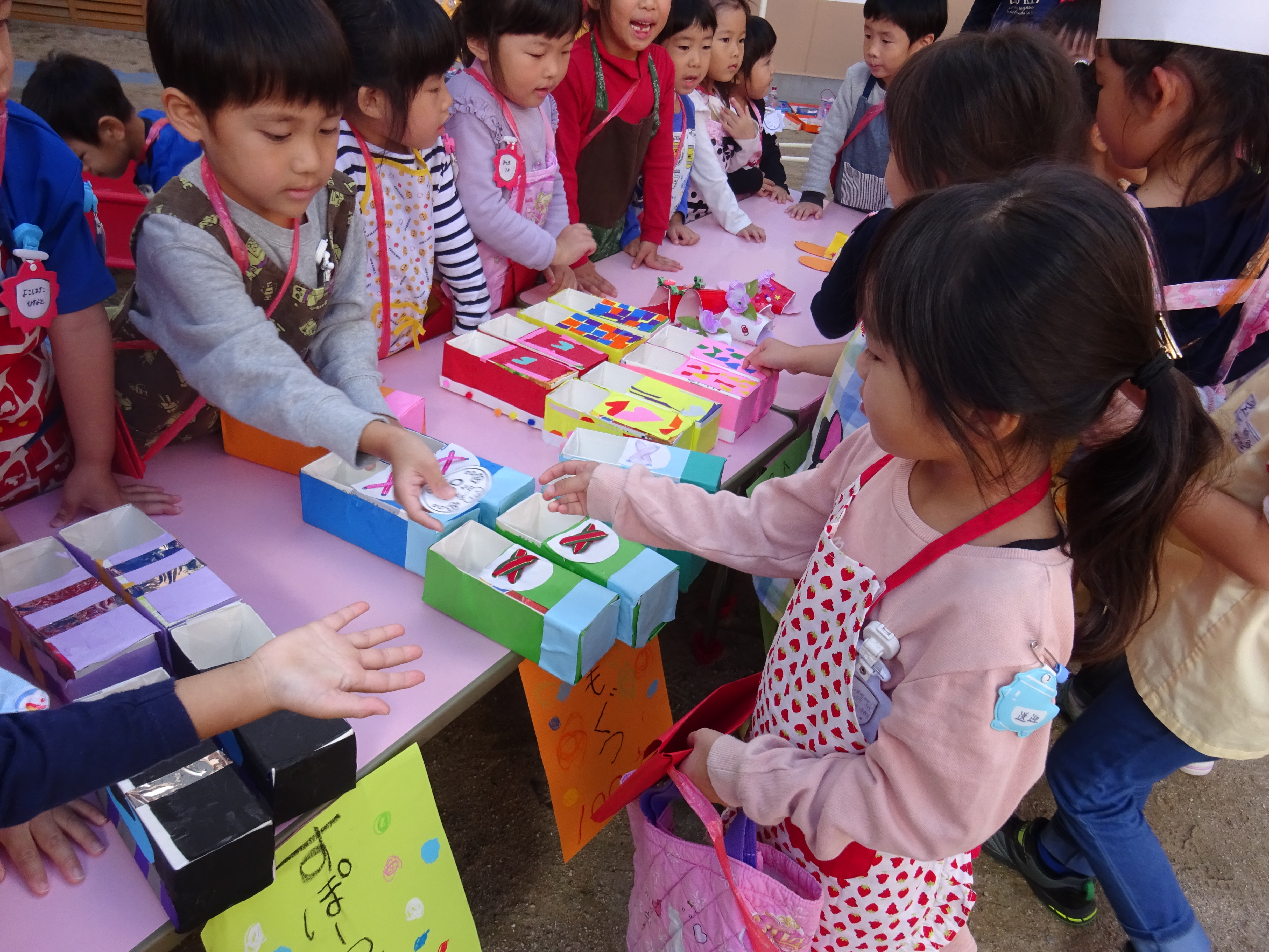 お店屋さんごっこで、売ったり買ったり楽しいね!