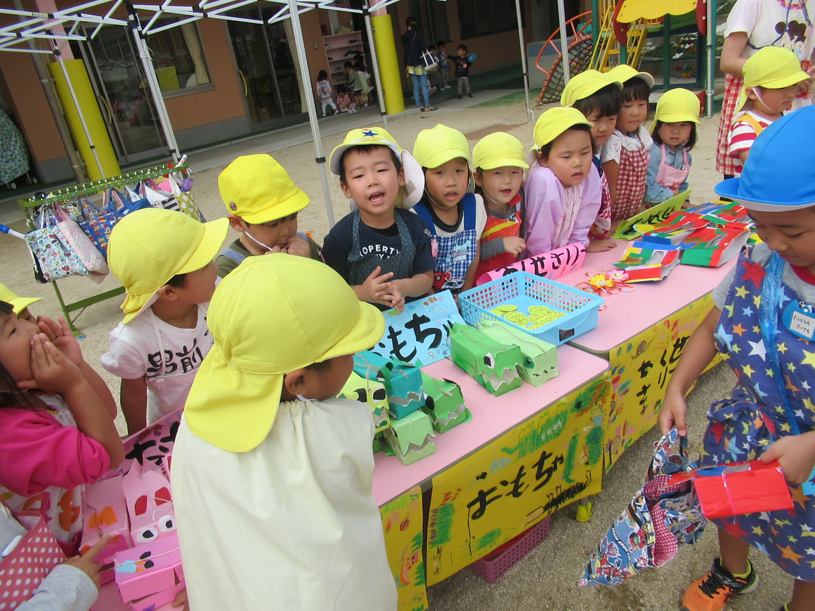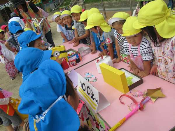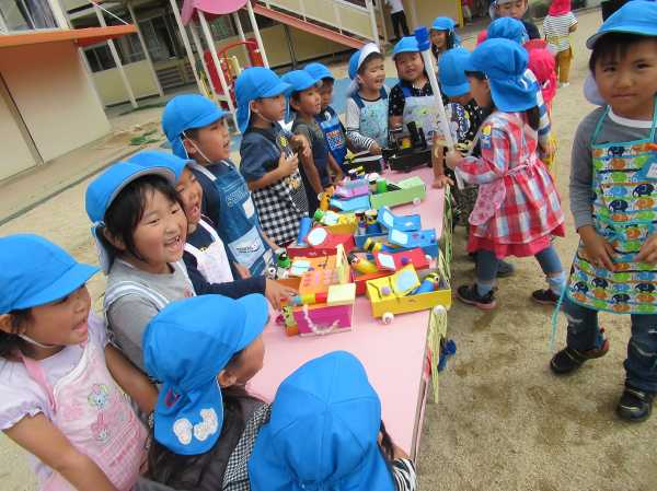 お店屋さんごっこで、売ったり買ったり楽しいね!