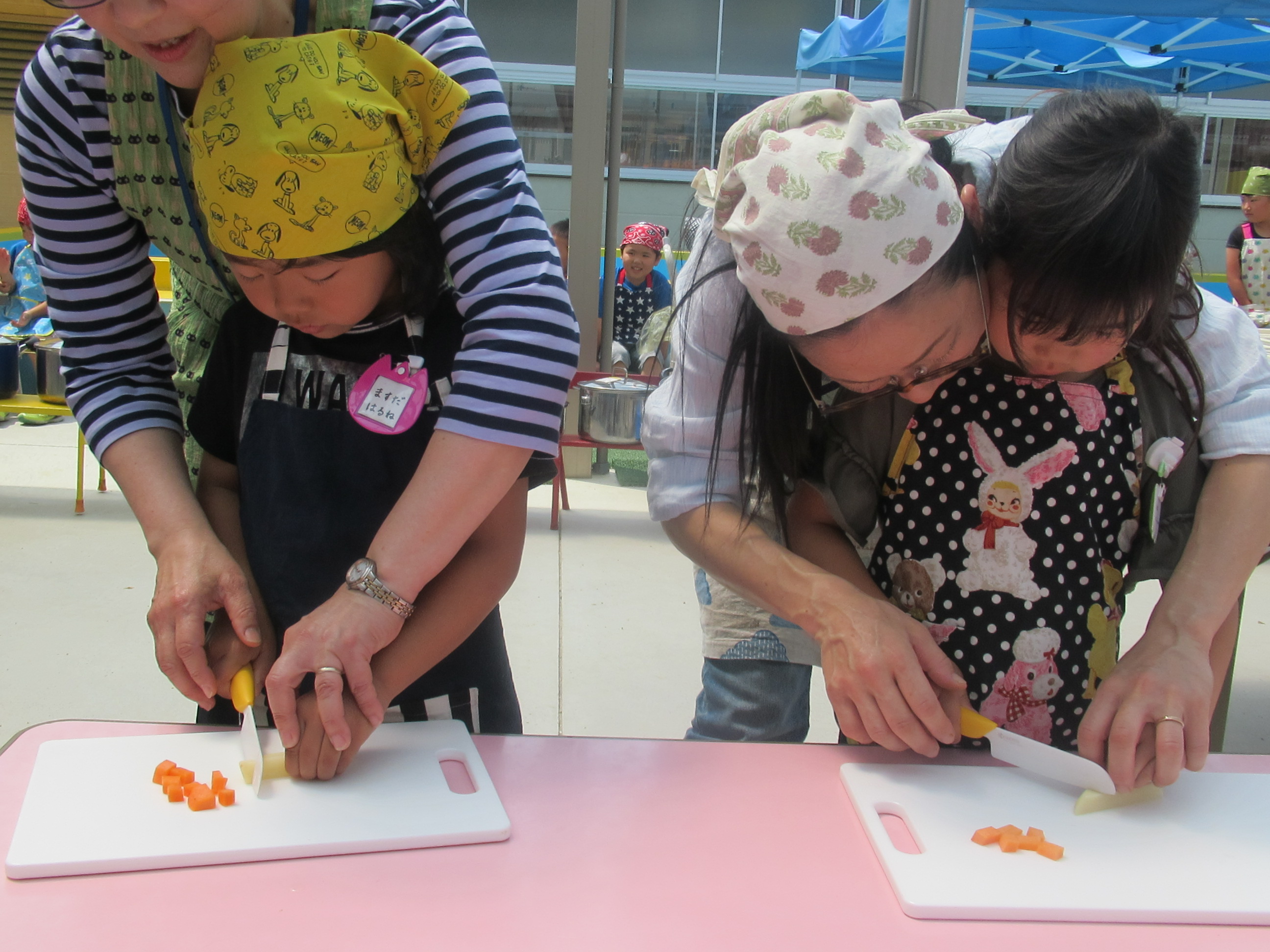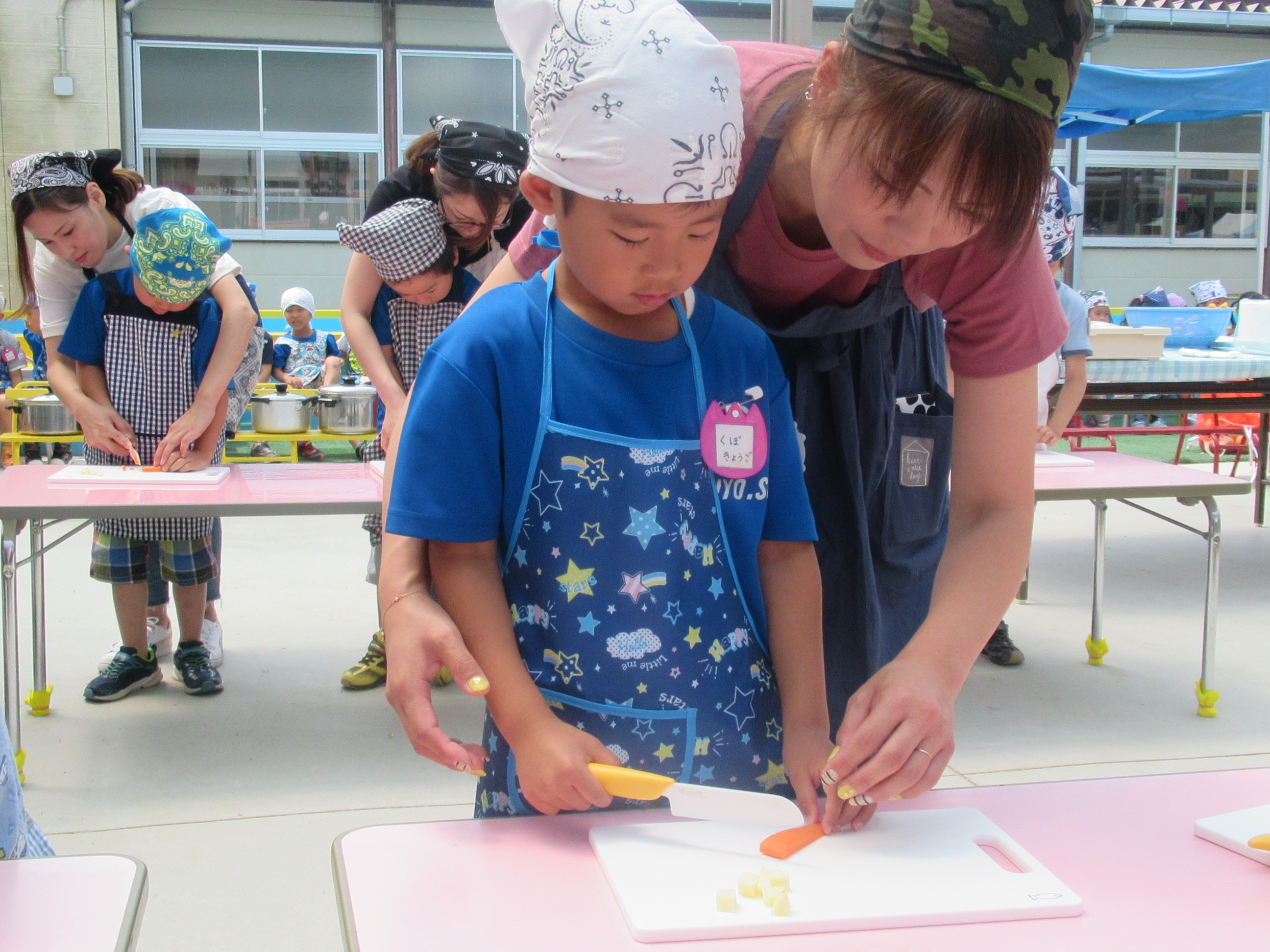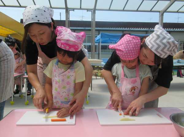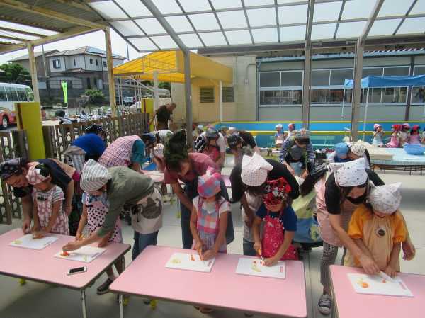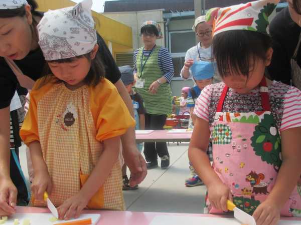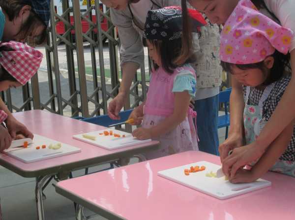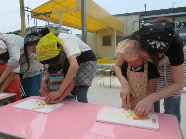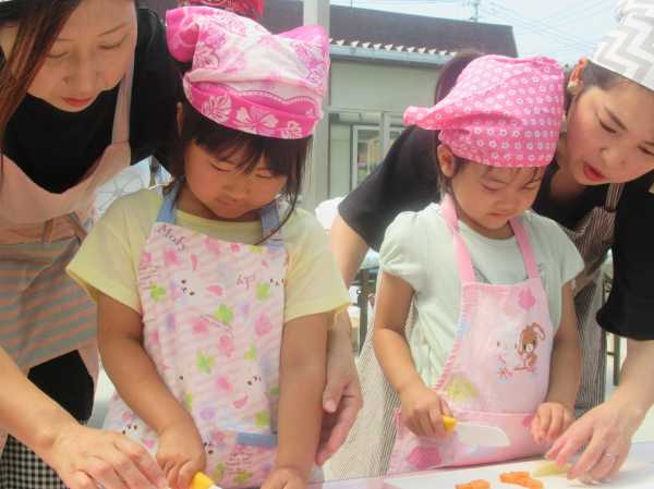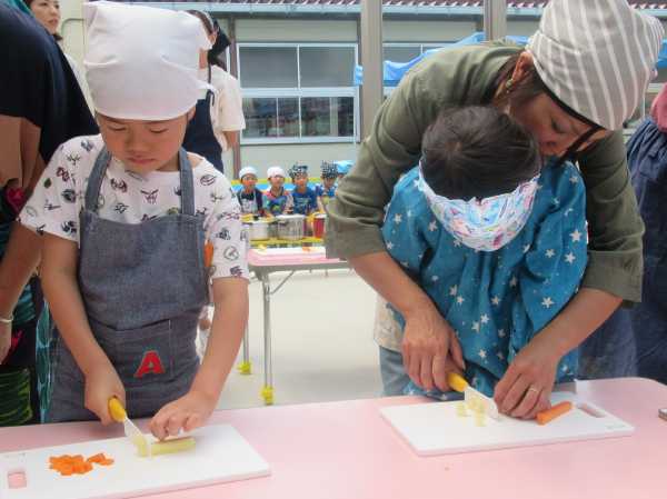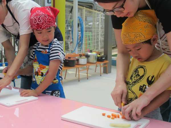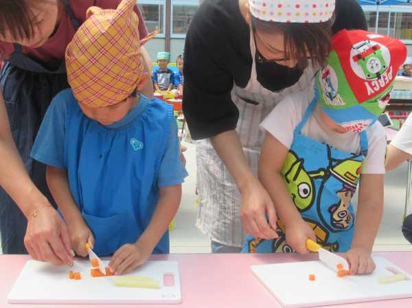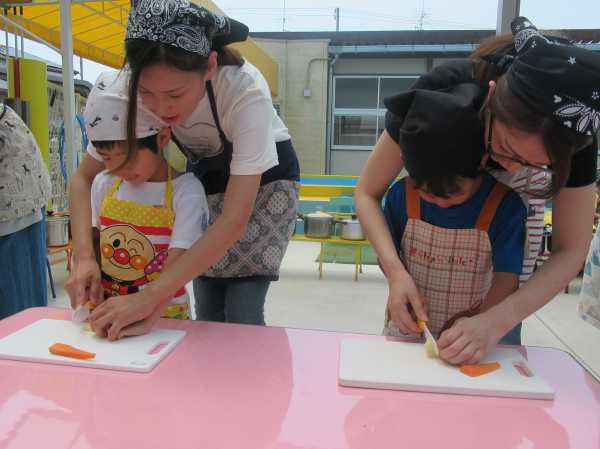 農園で収穫した野菜などを使ってカレーを作りました。みんなで食べておいしかった!