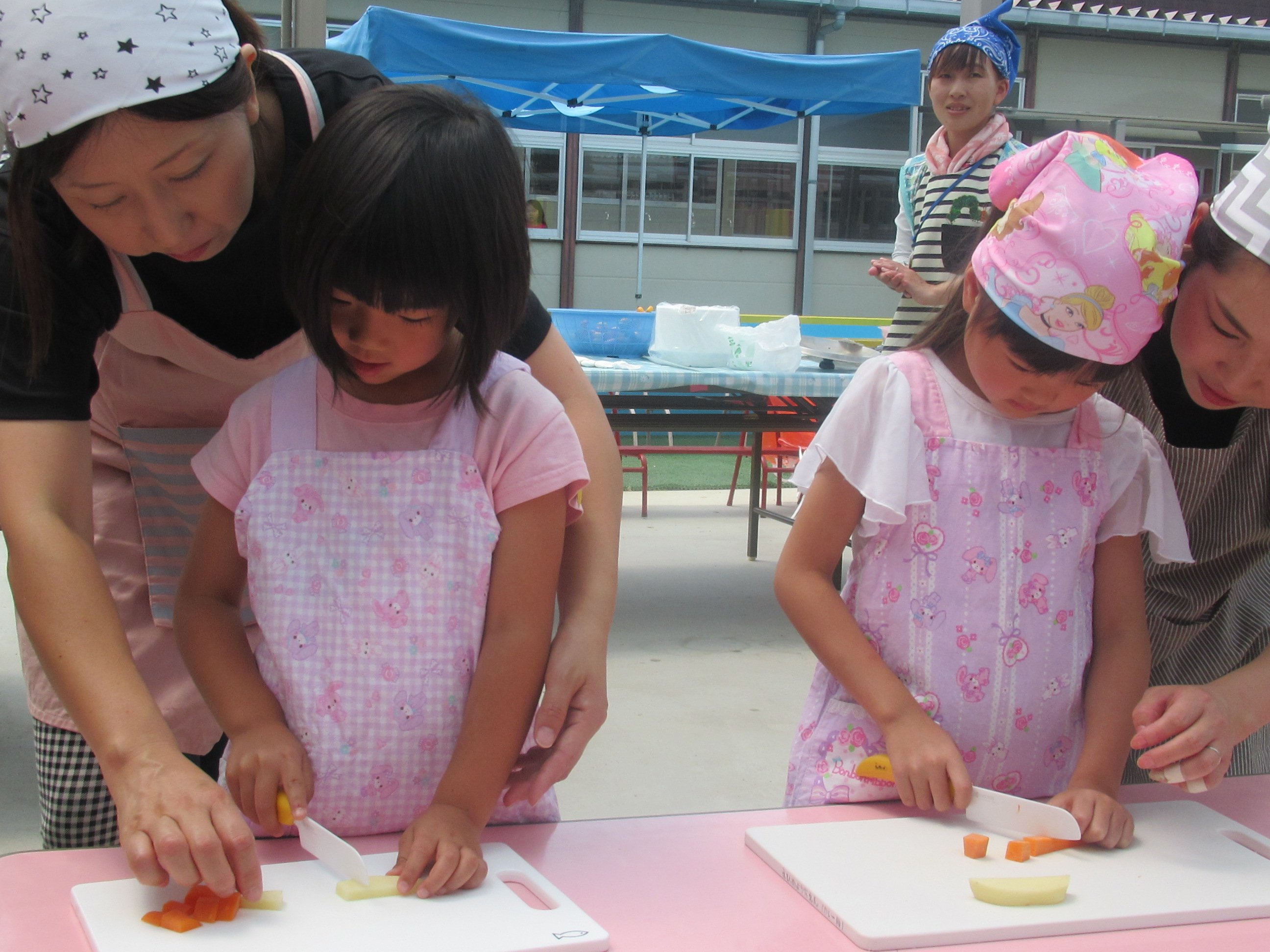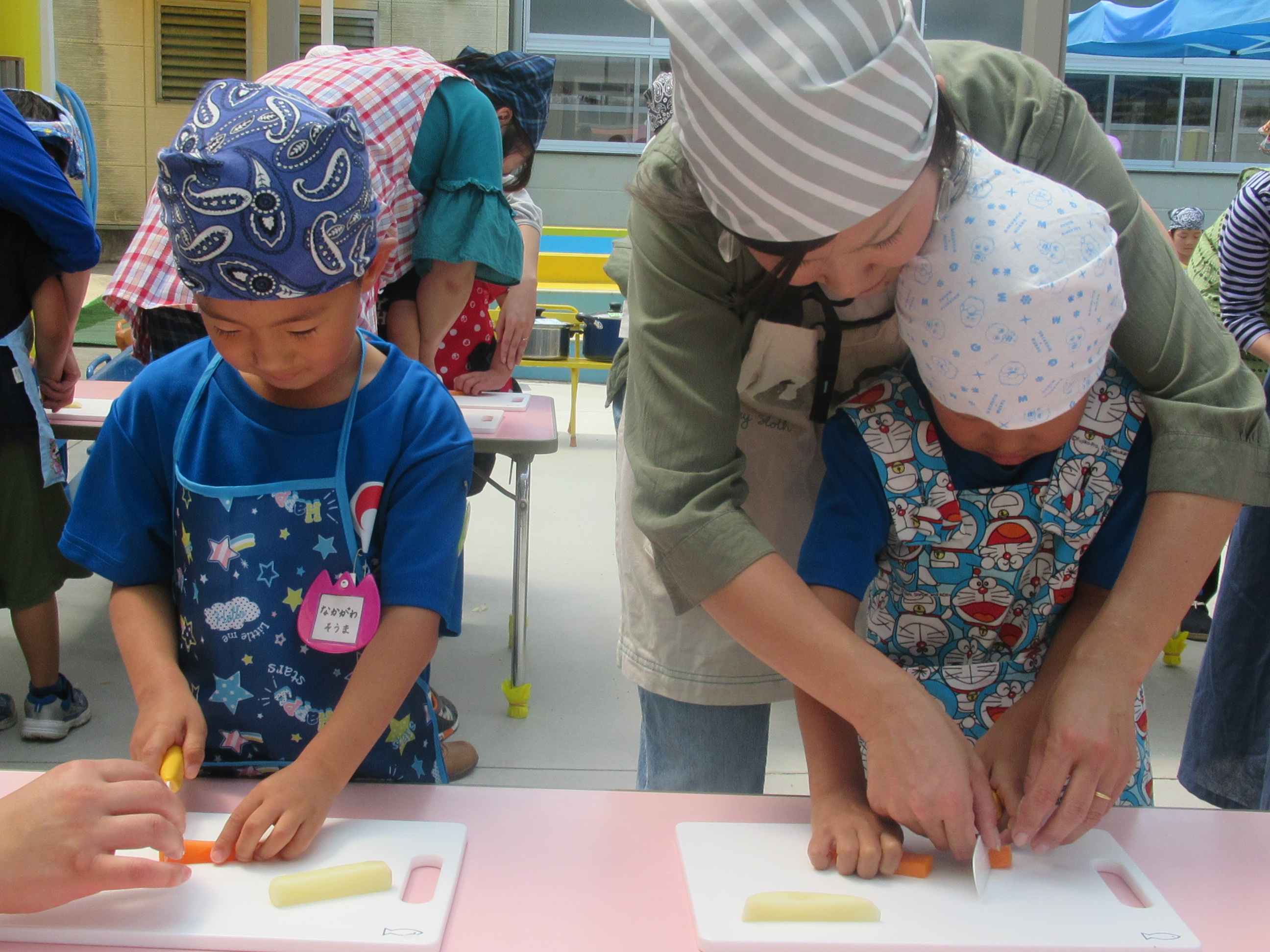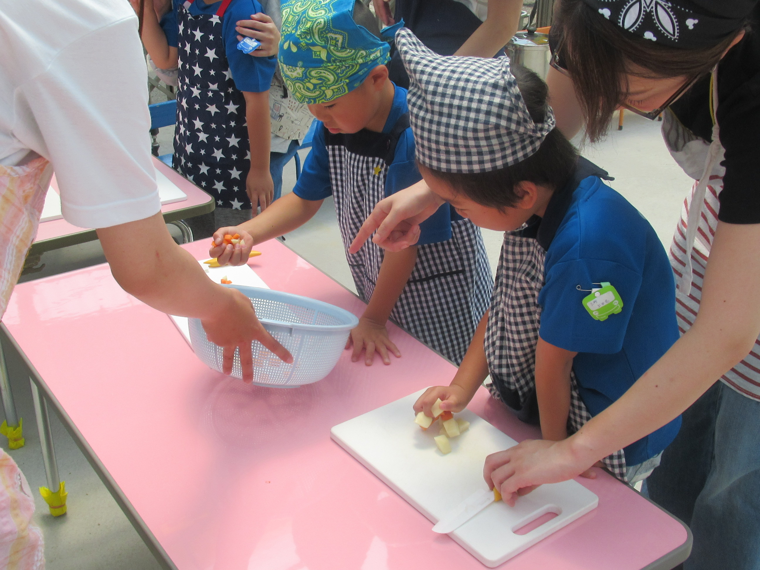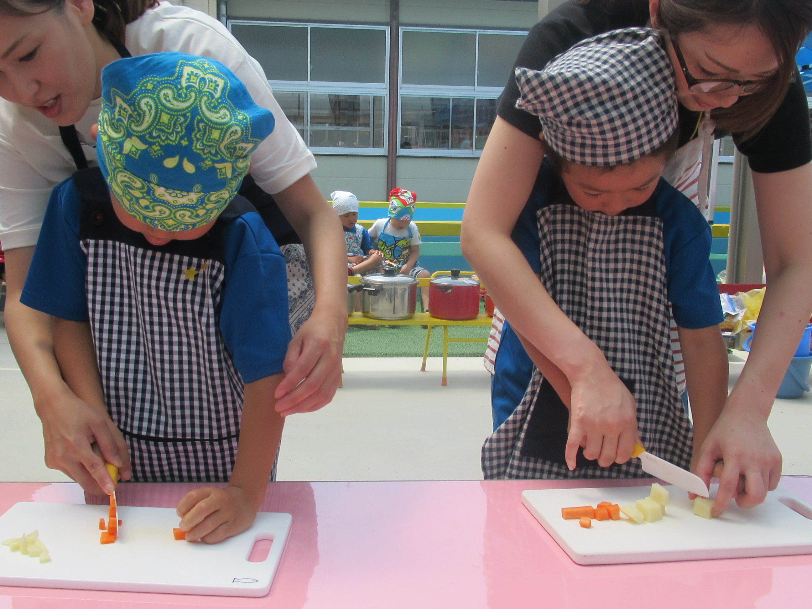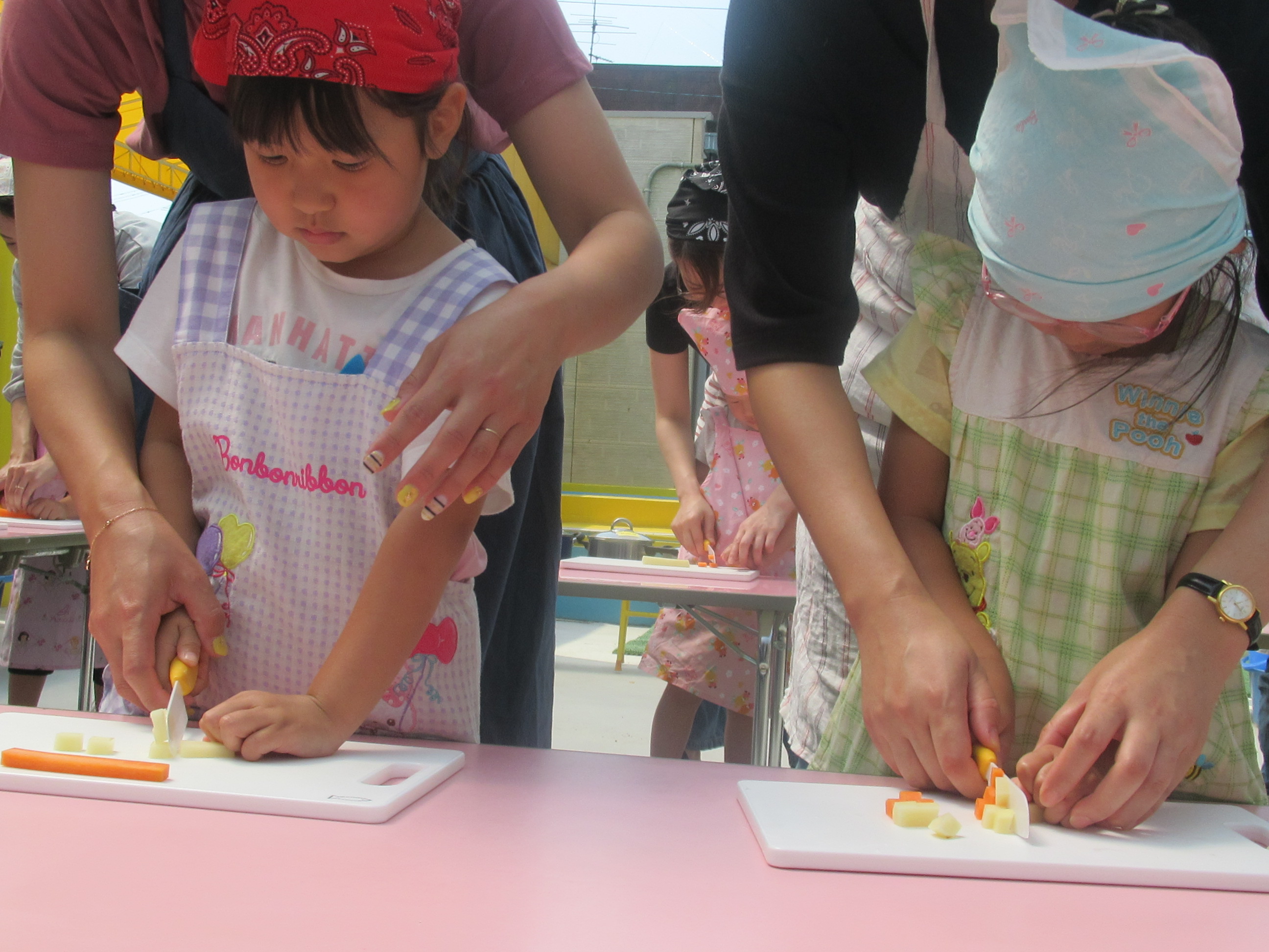 農園で収穫した野菜などを使ってカレーを作りました。みんなで食べておいしかった!