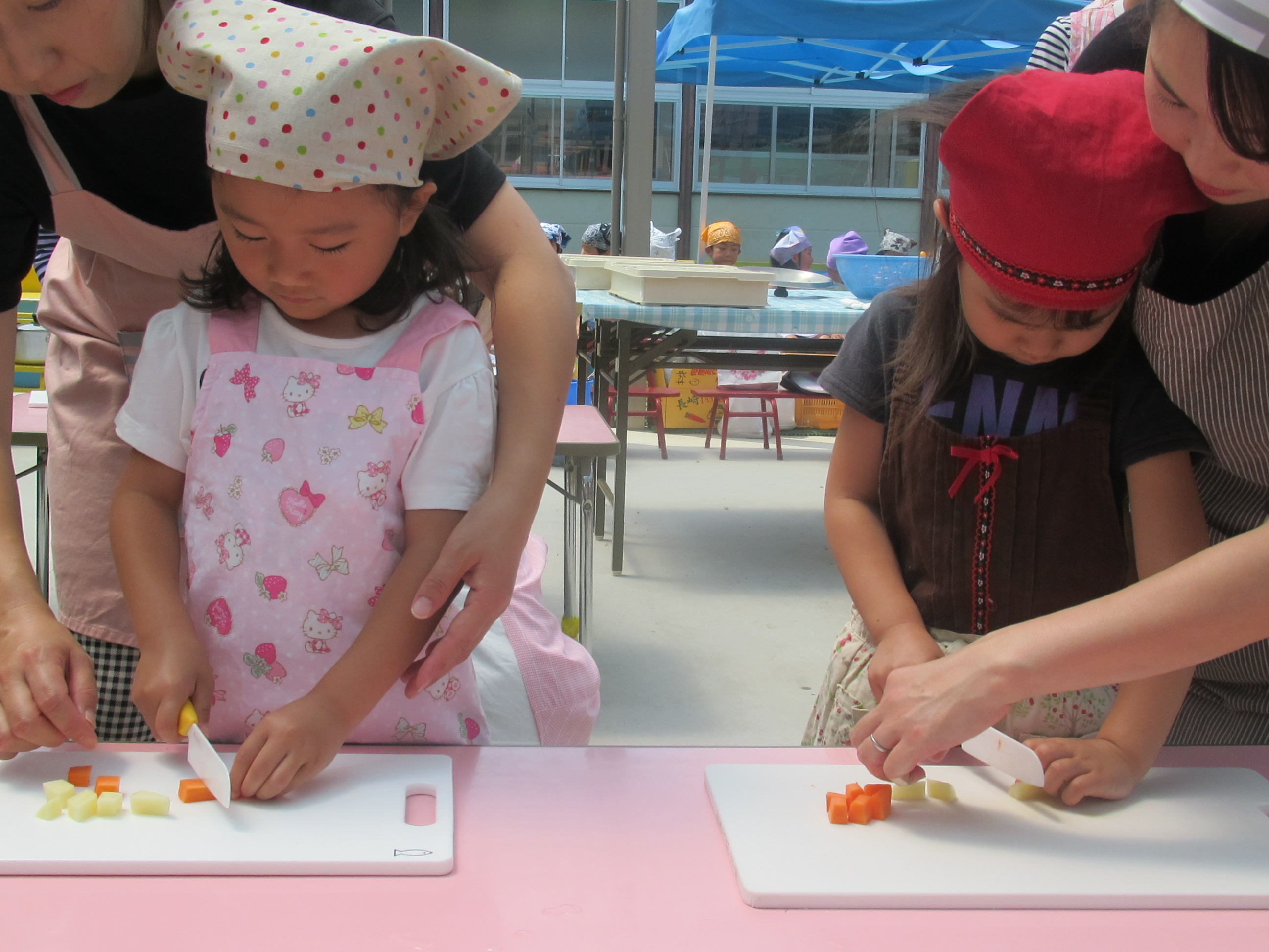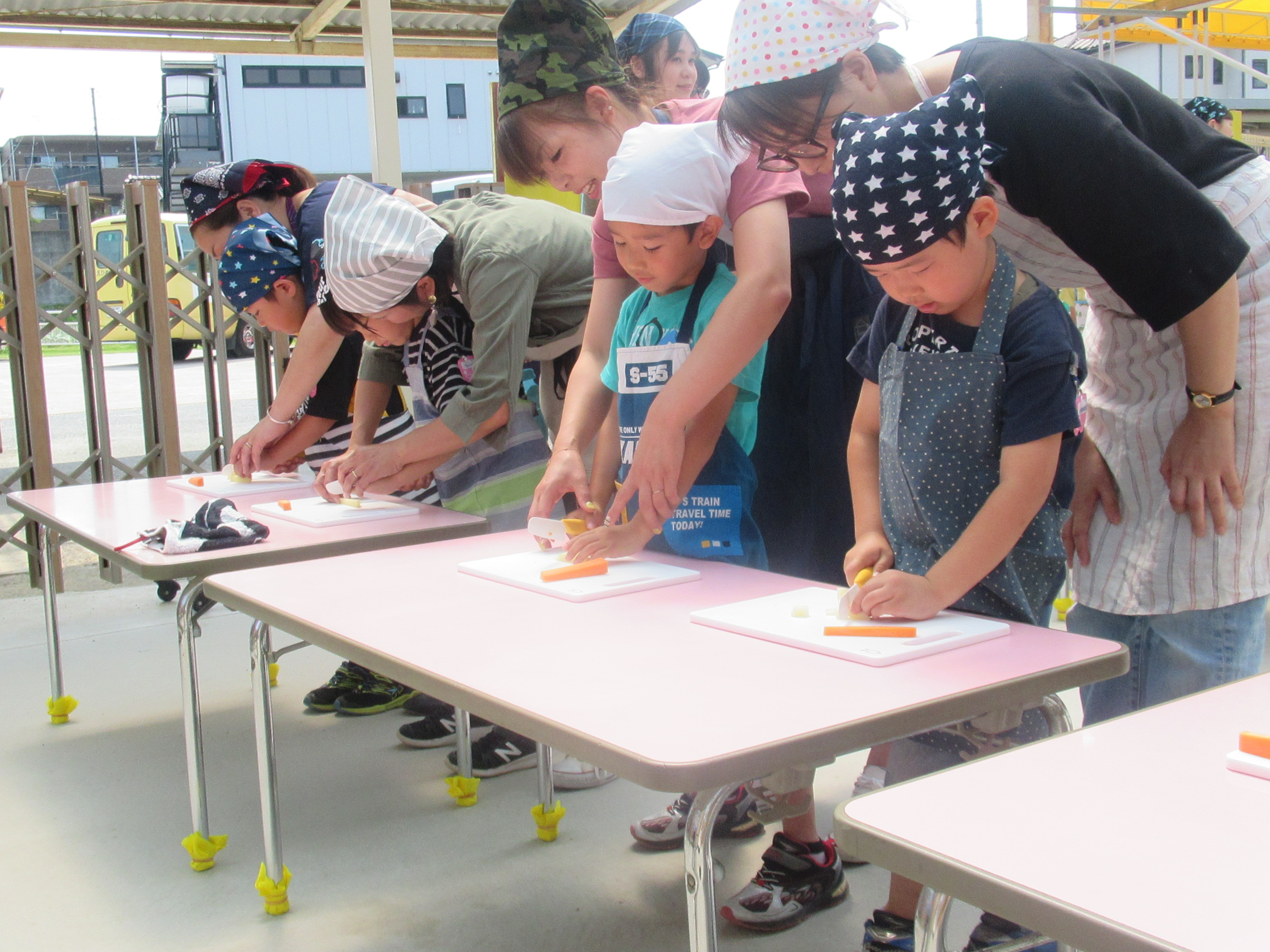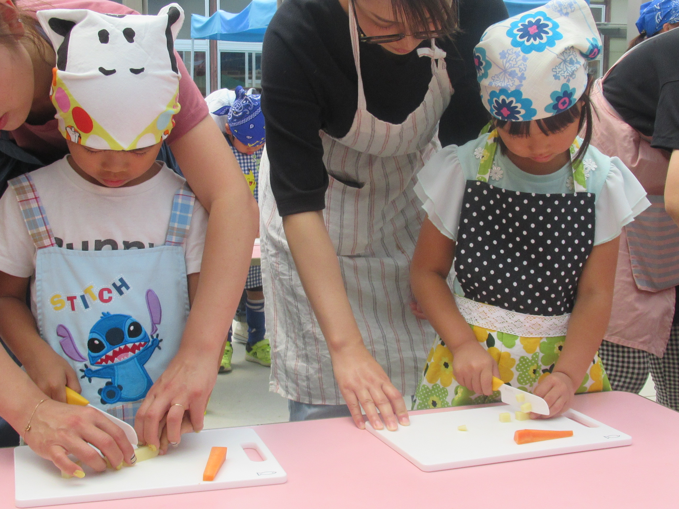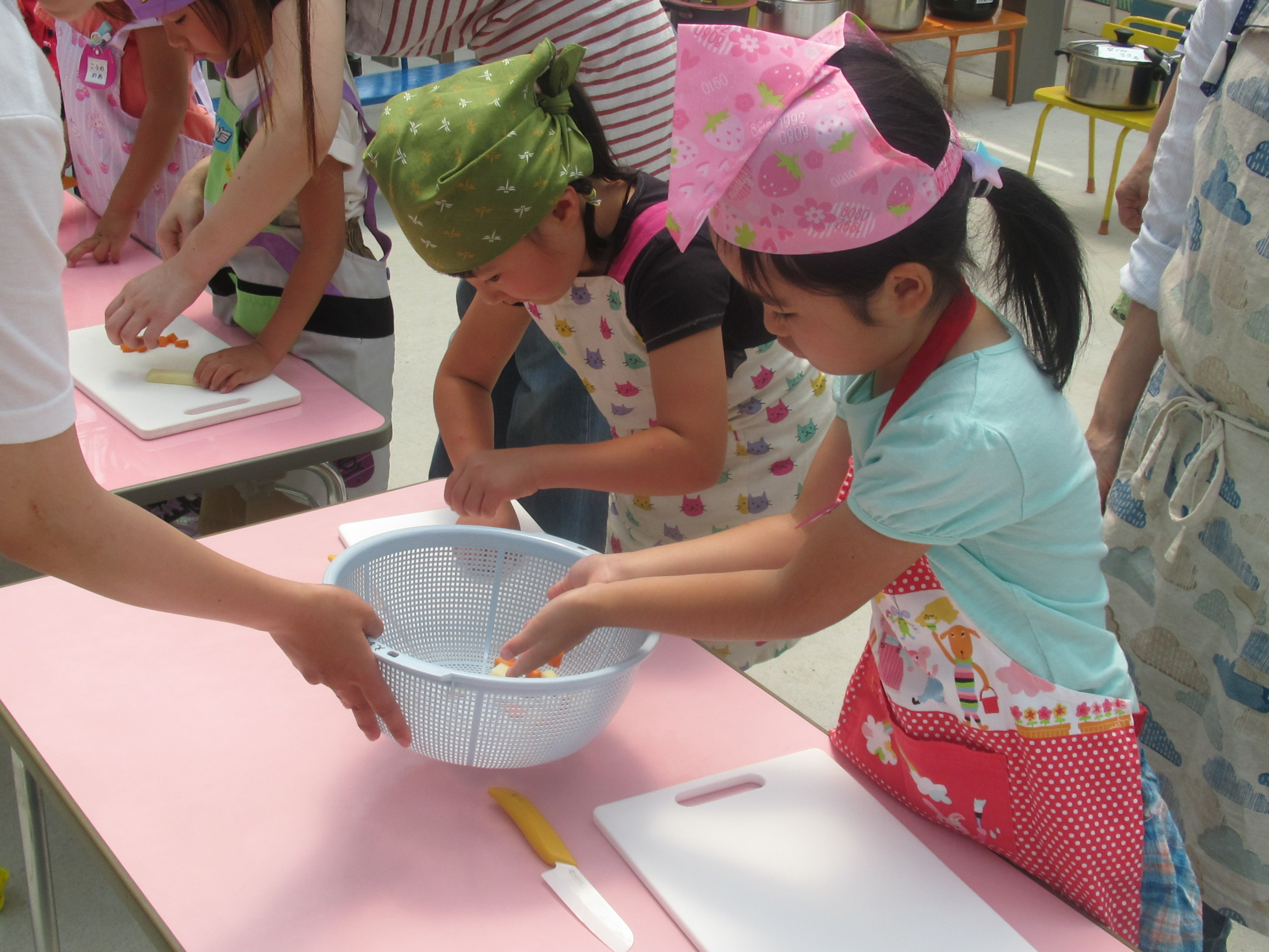 農園で収穫した野菜などを使ってカレーを作りました。みんなで食べておいしかった!