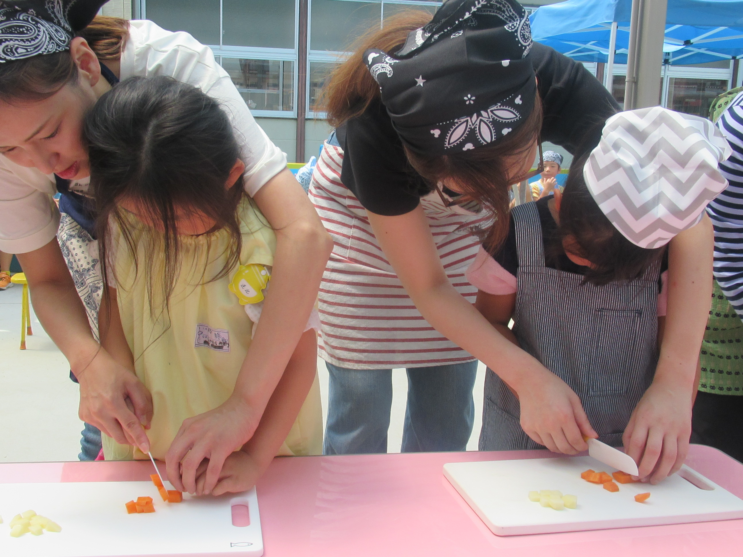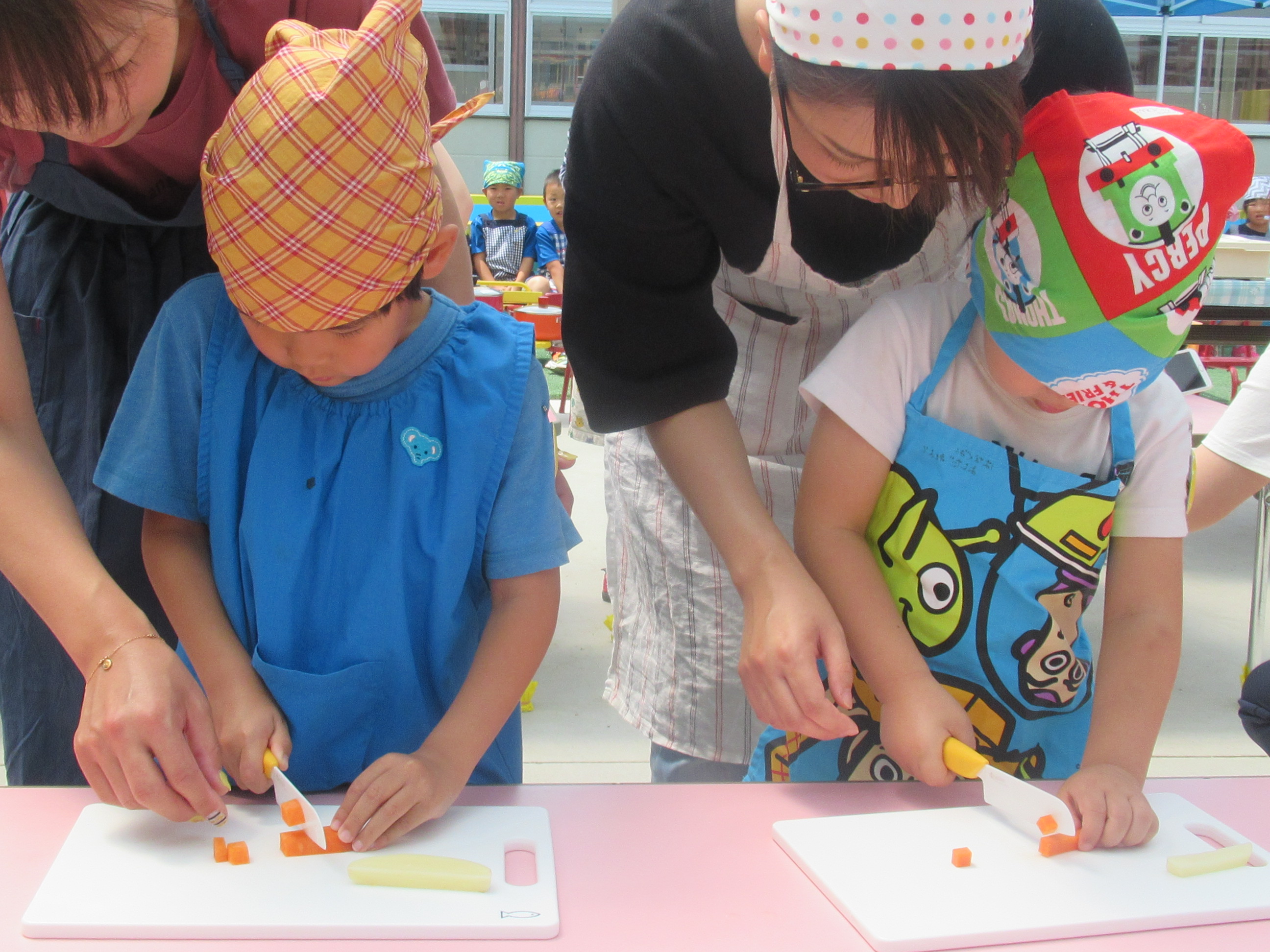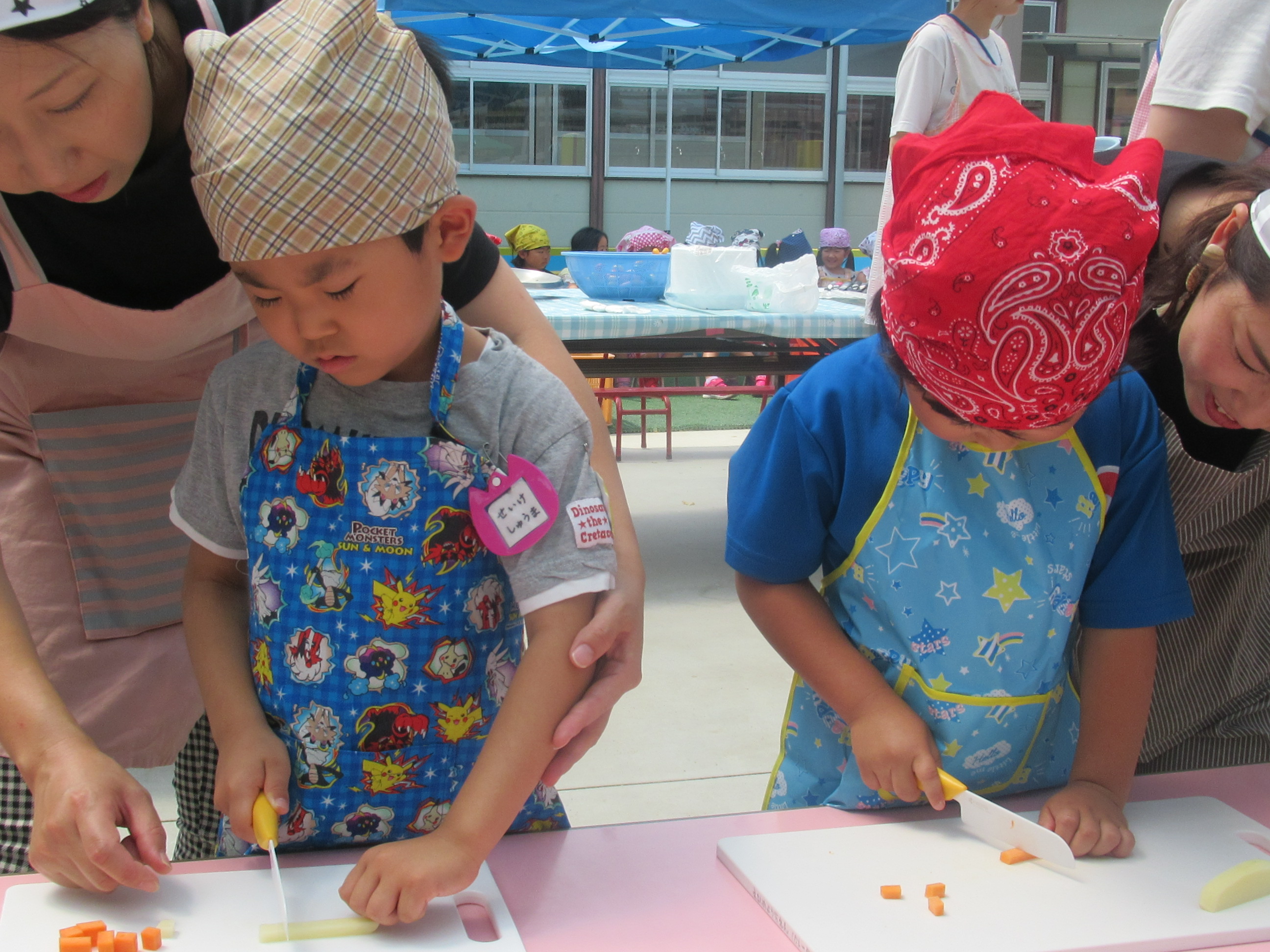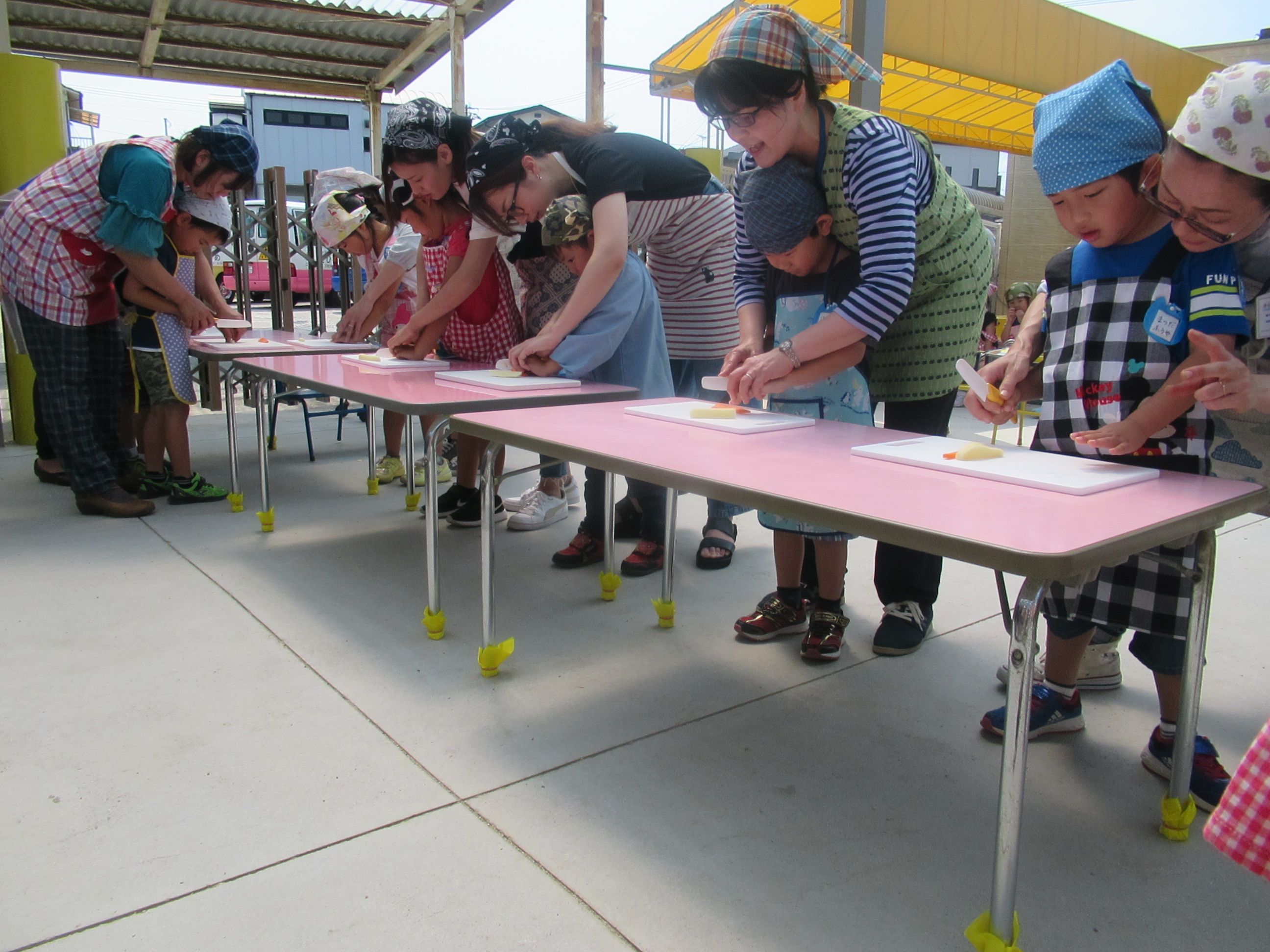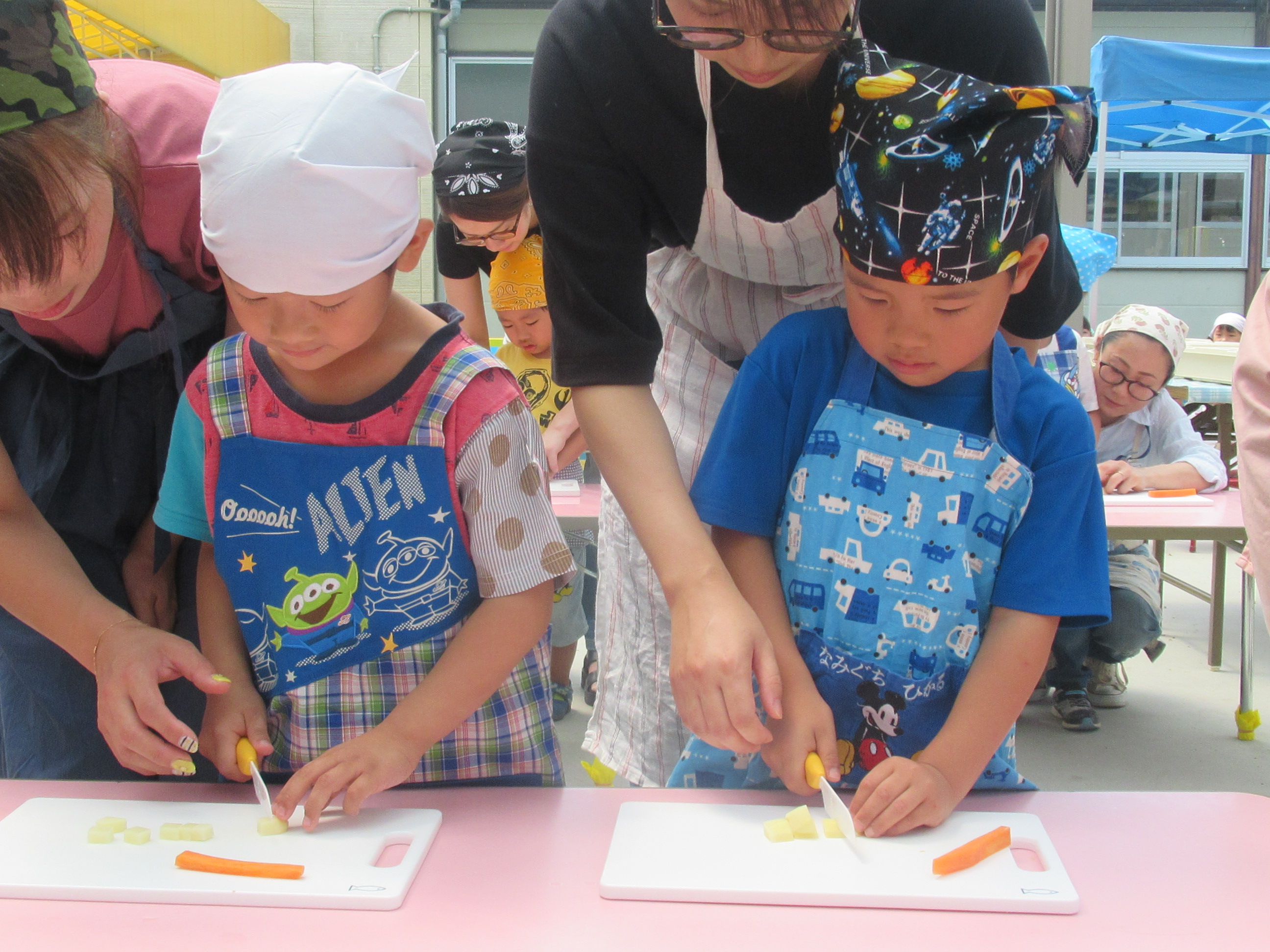 農園で収穫した野菜などを使ってカレーを作りました。みんなで食べておいしかった!