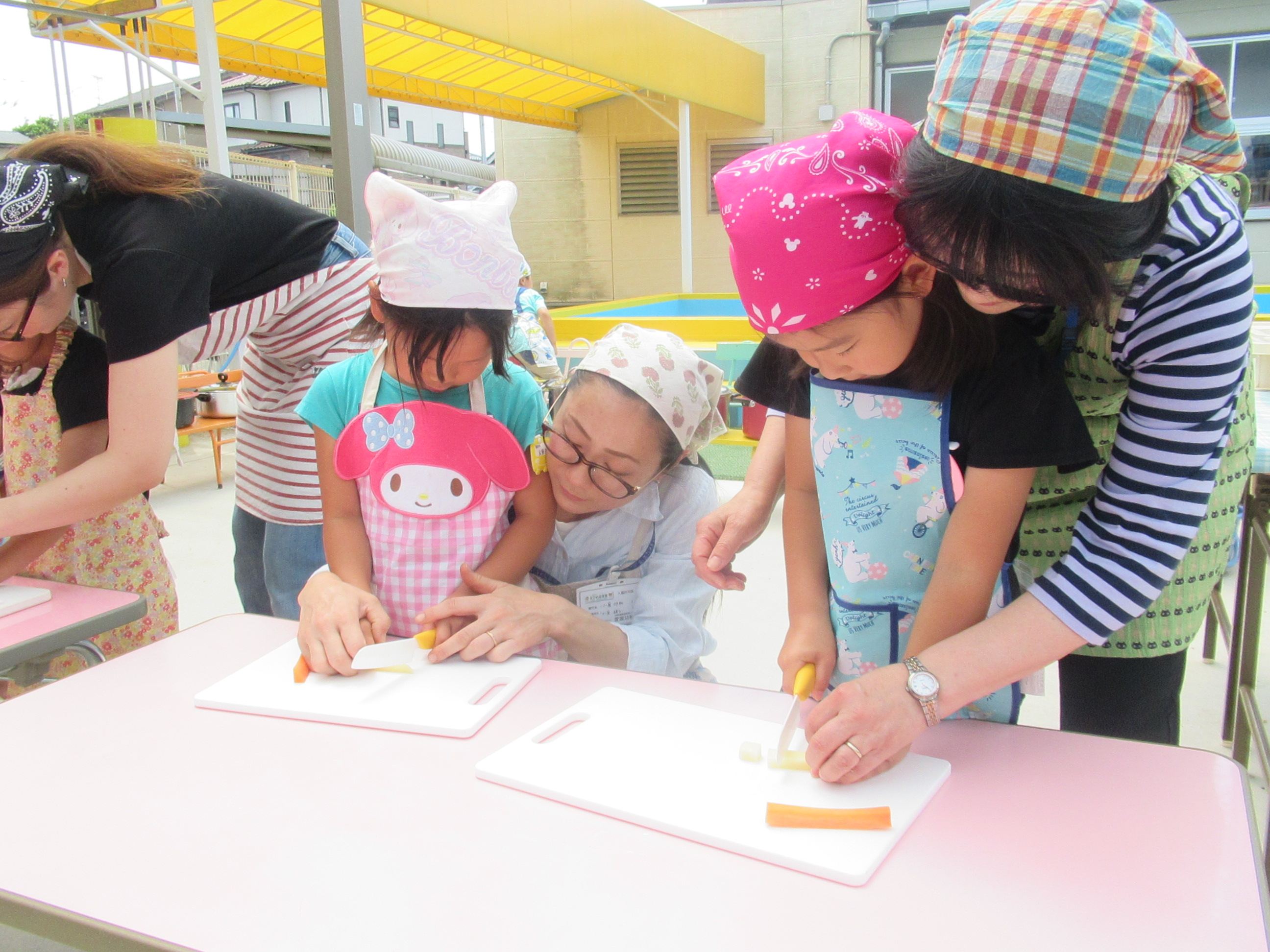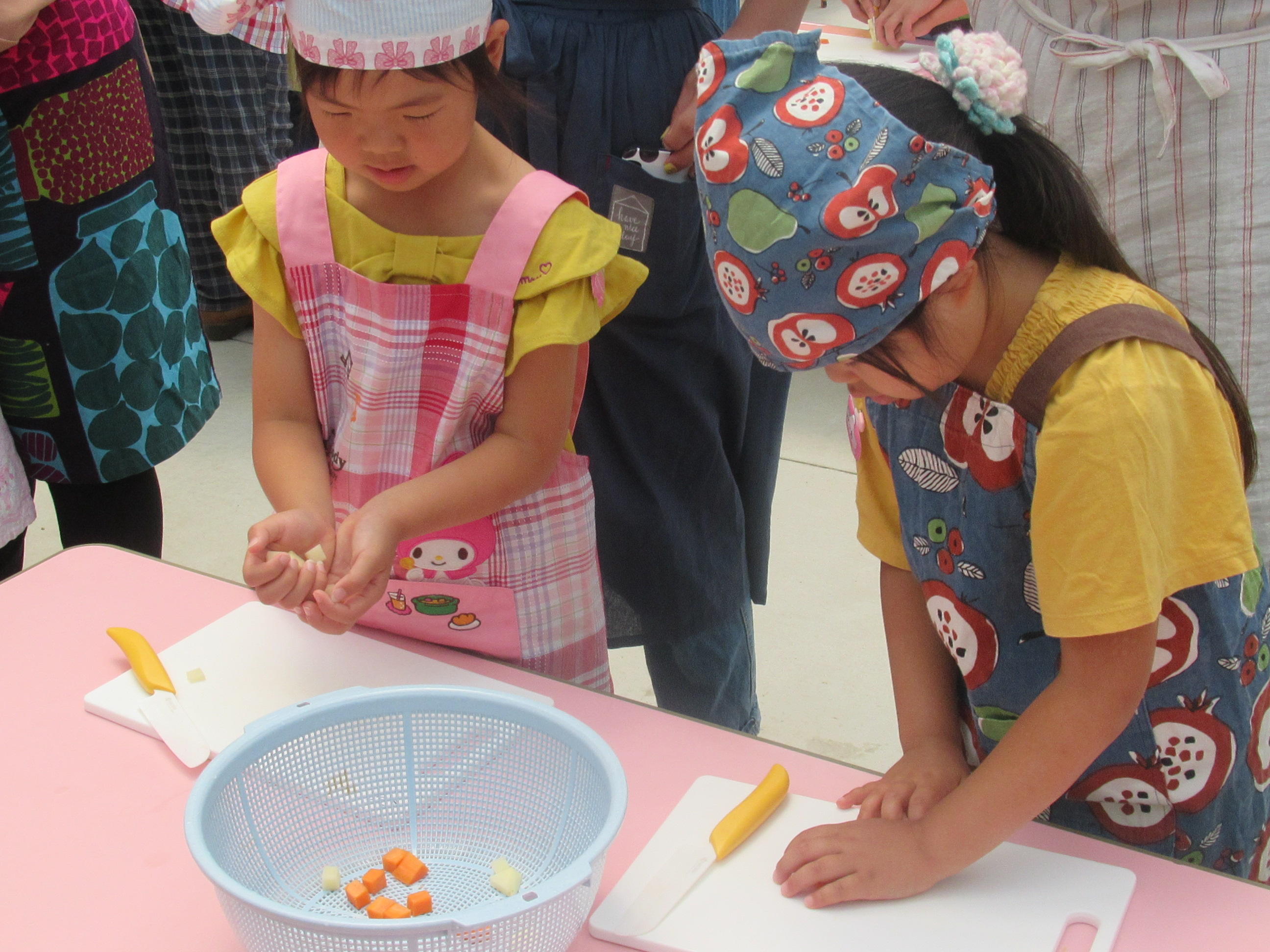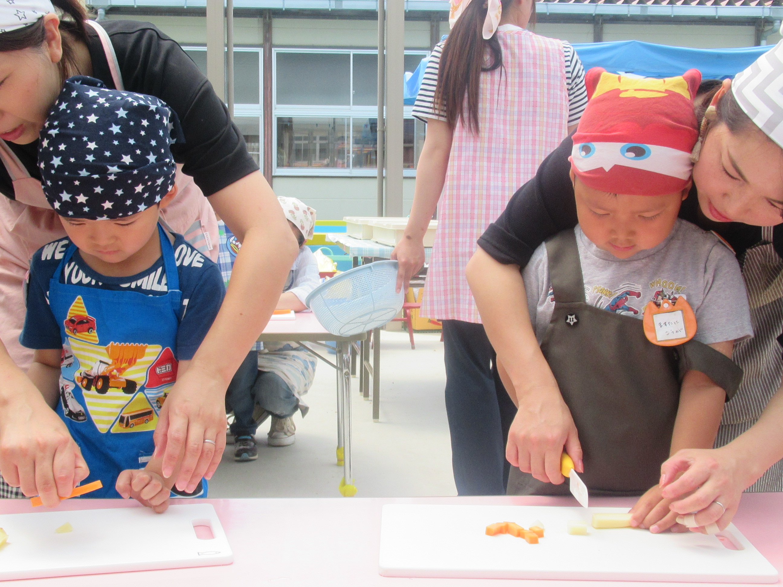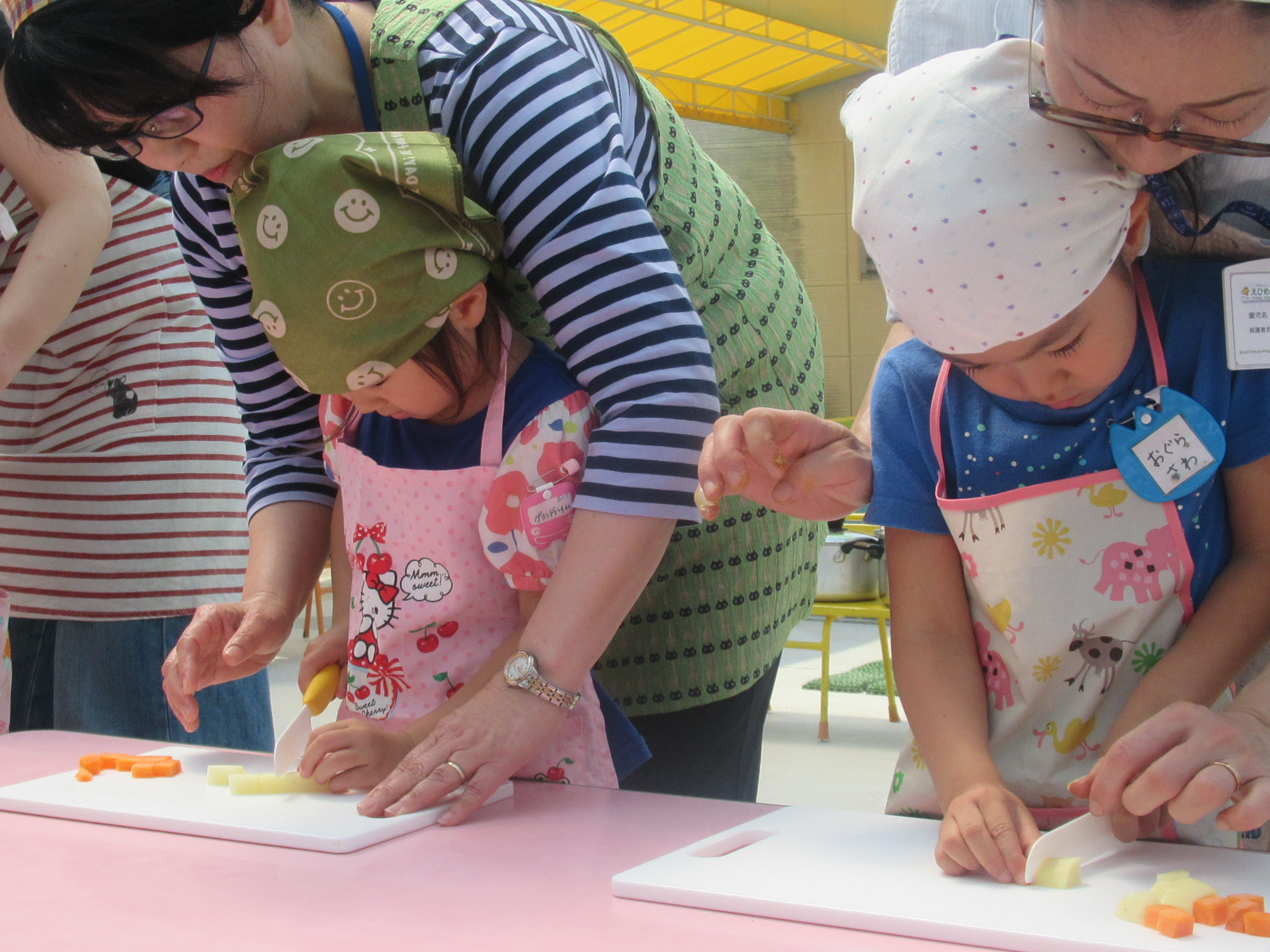 農園で収穫した野菜などを使ってカレーを作りました。みんなで食べておいしかった!