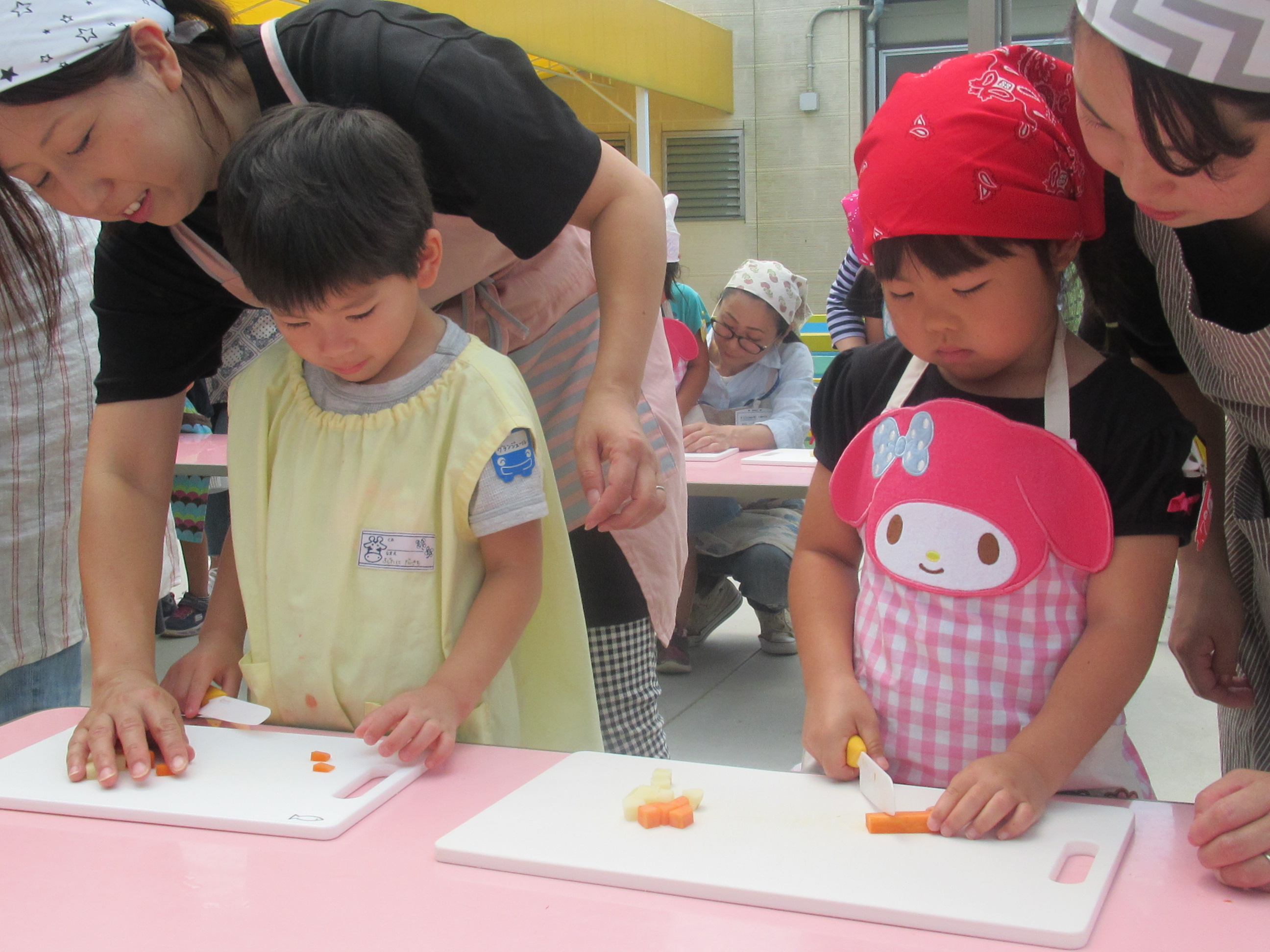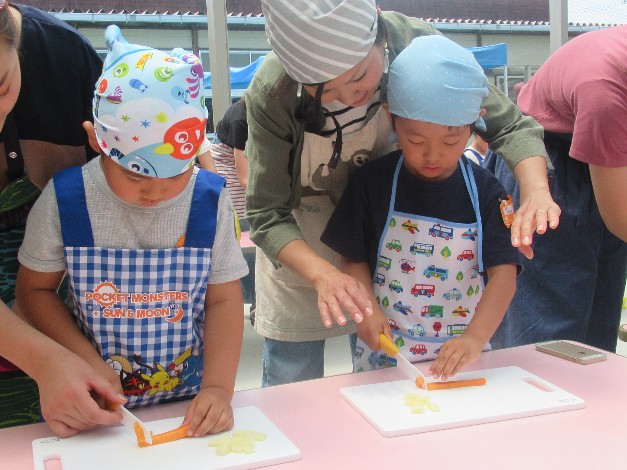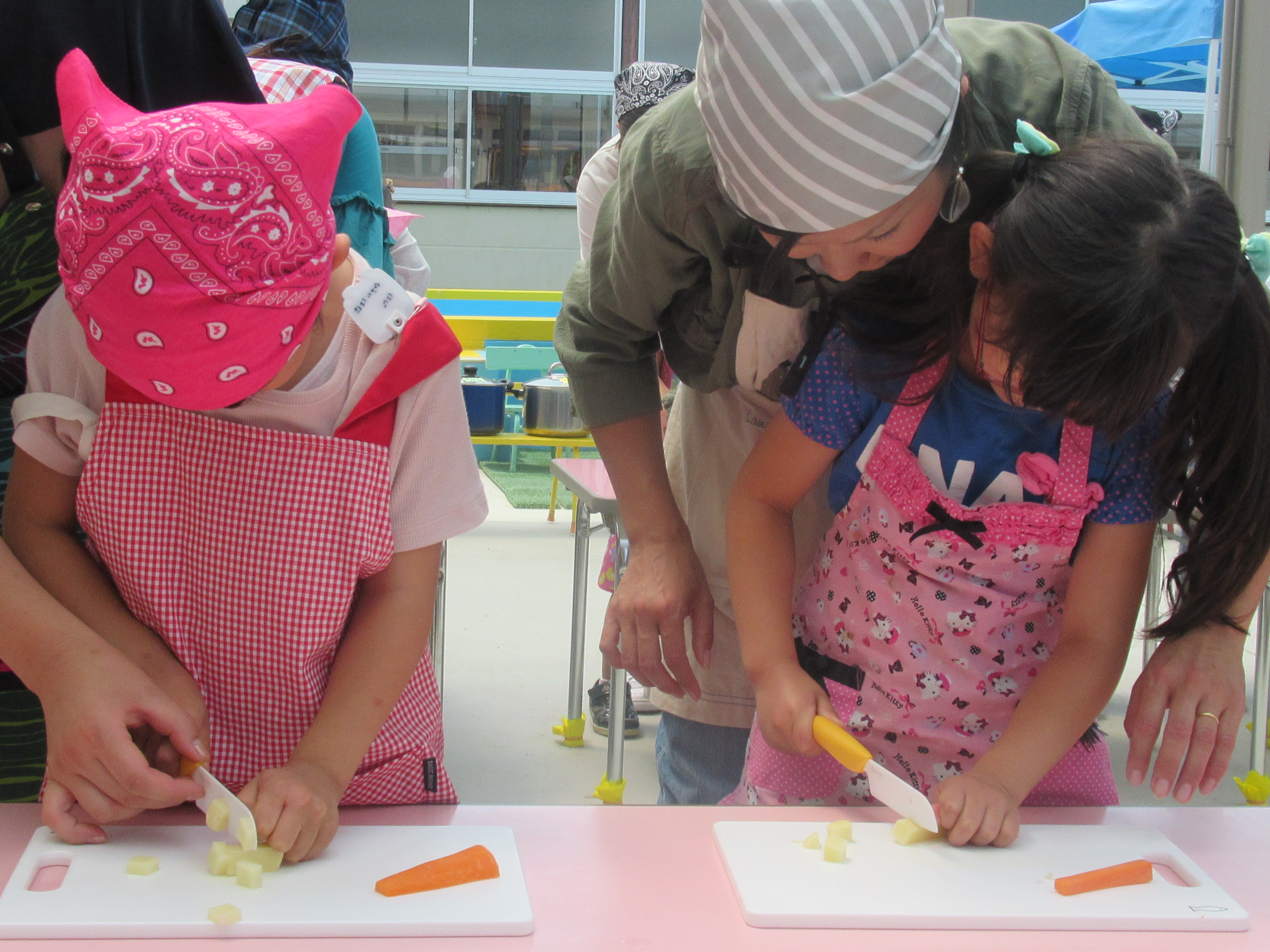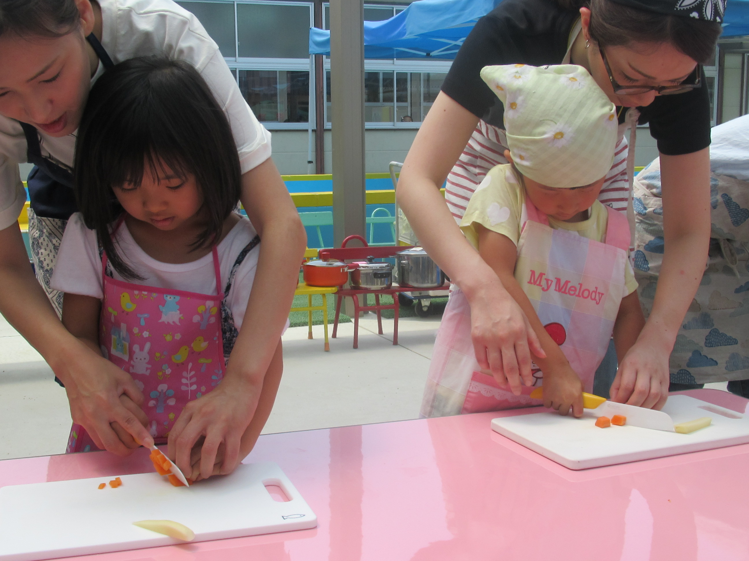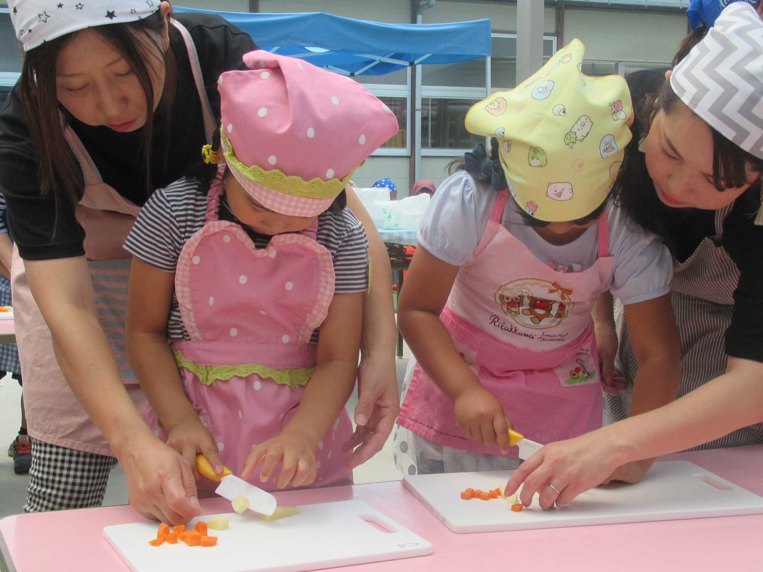 農園で収穫した野菜などを使ってカレーを作りました。みんなで食べておいしかった!