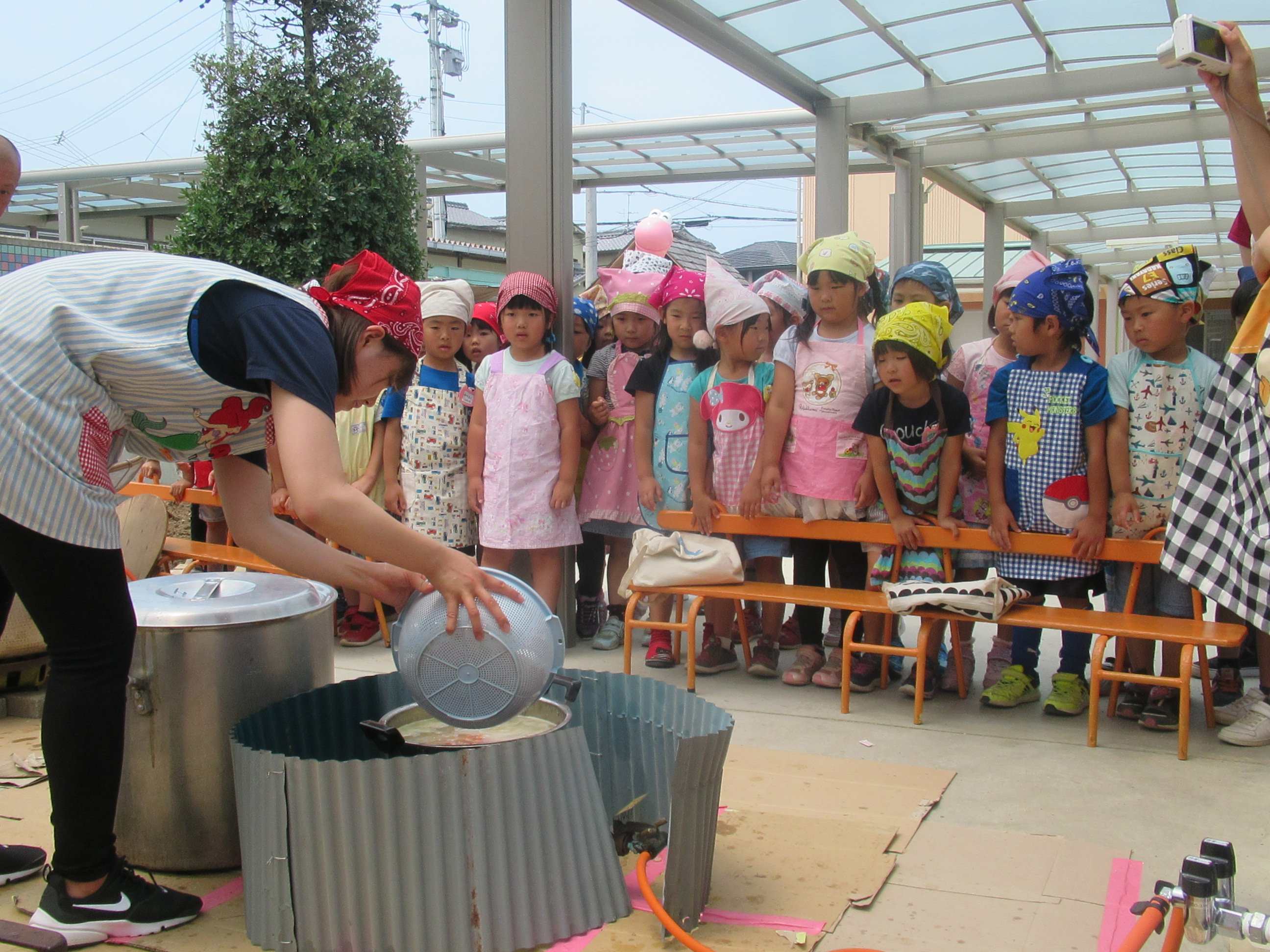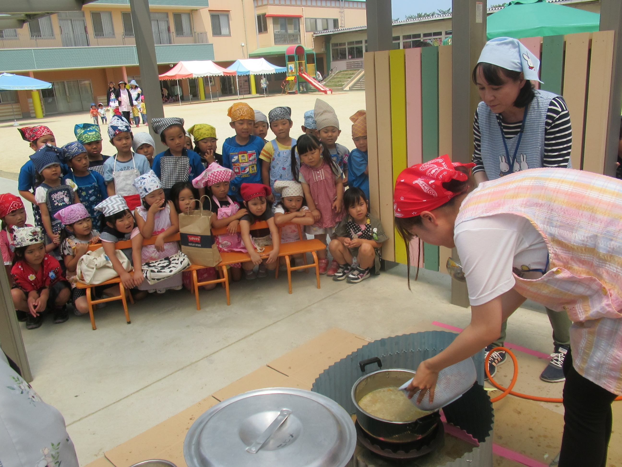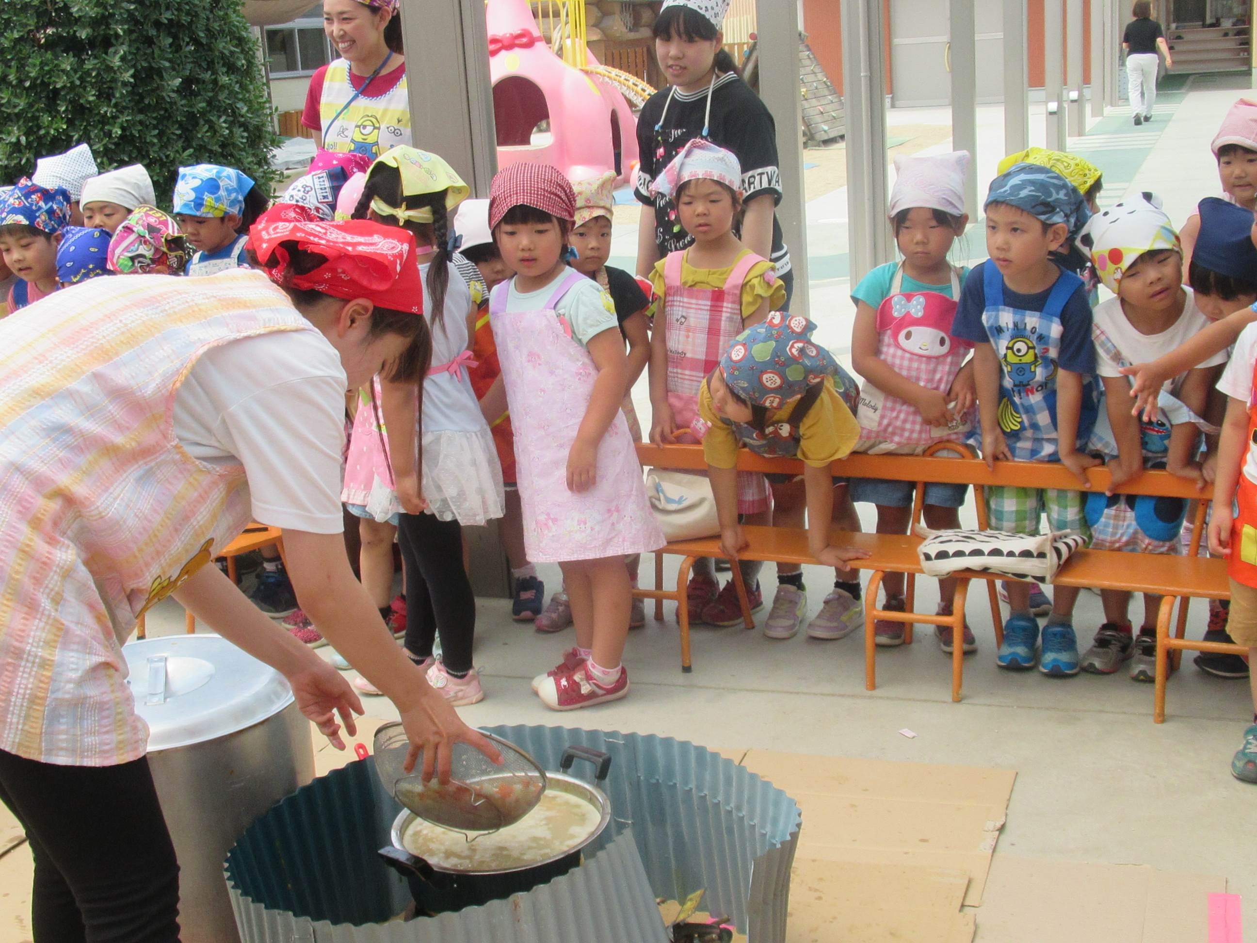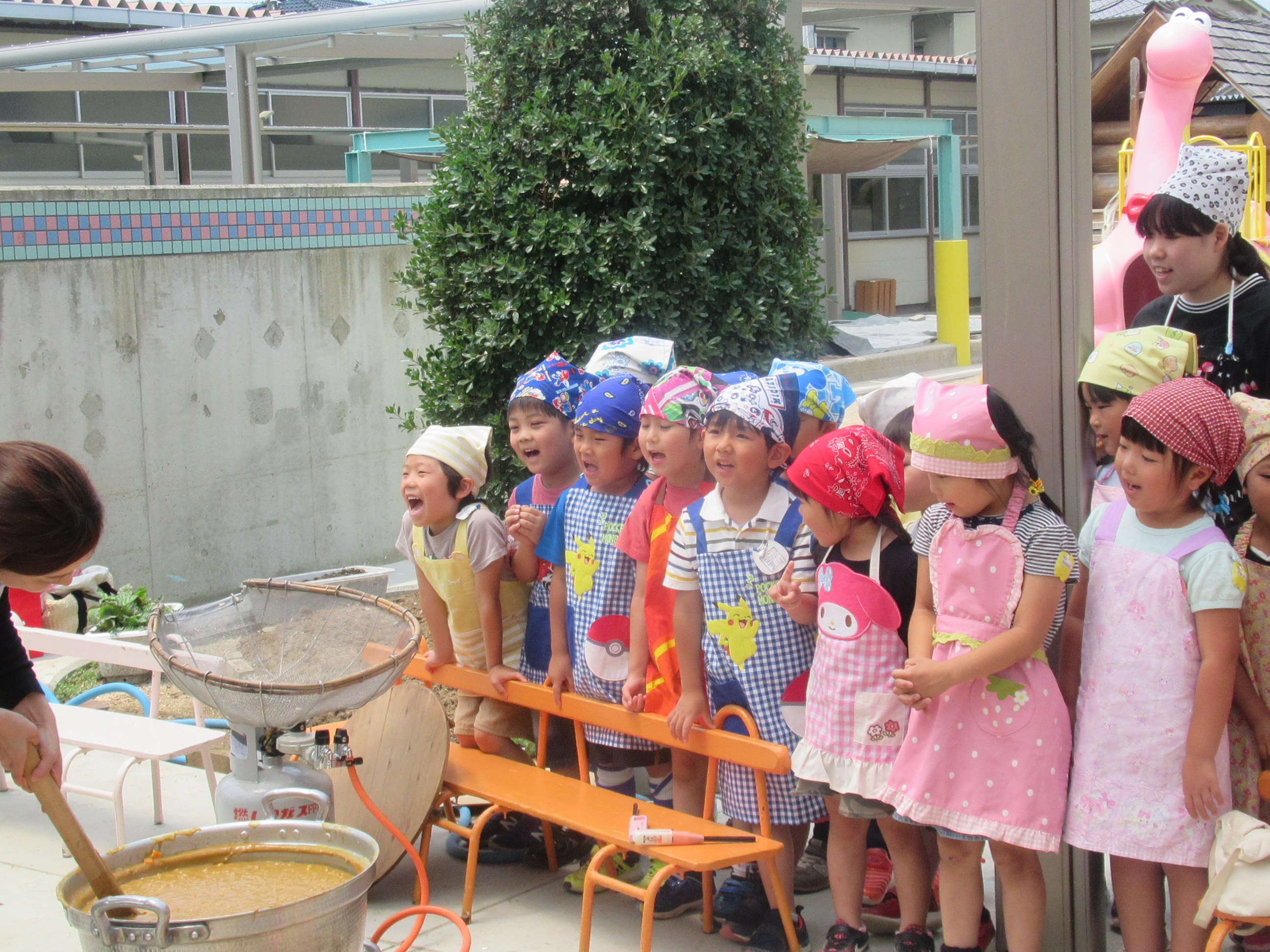 農園で収穫した野菜などを使ってカレーを作りました。みんなで食べておいしかった!