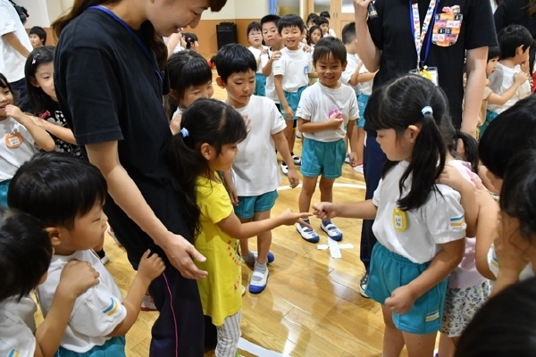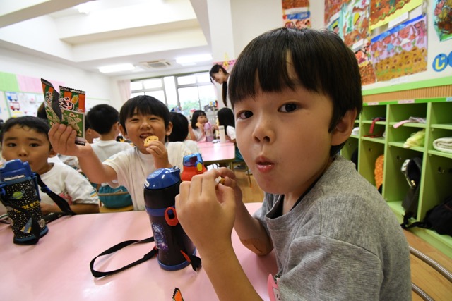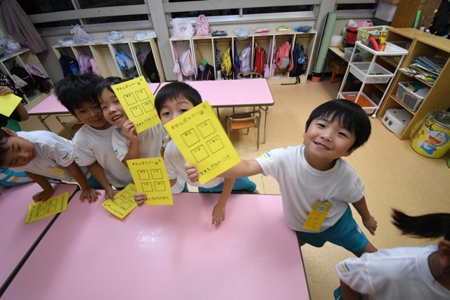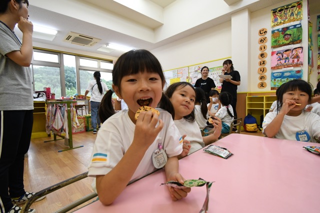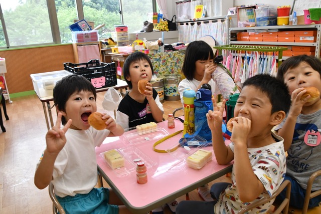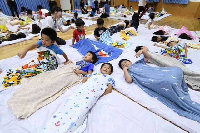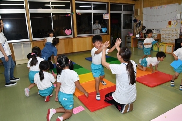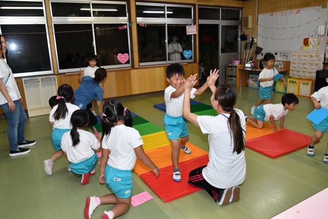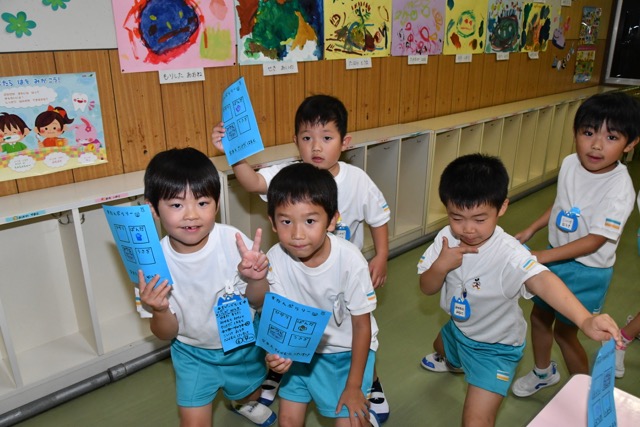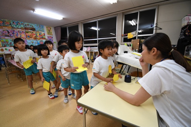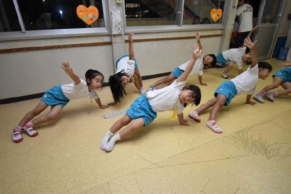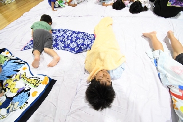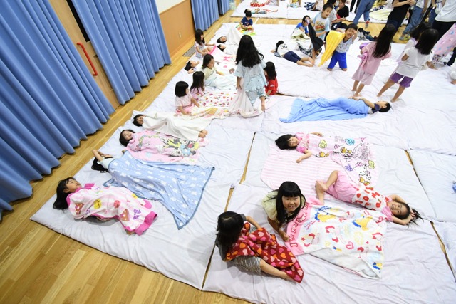 幼稚園に泊まって、みんなとご飯を食べて、寝て、遊んで、楽しかった!