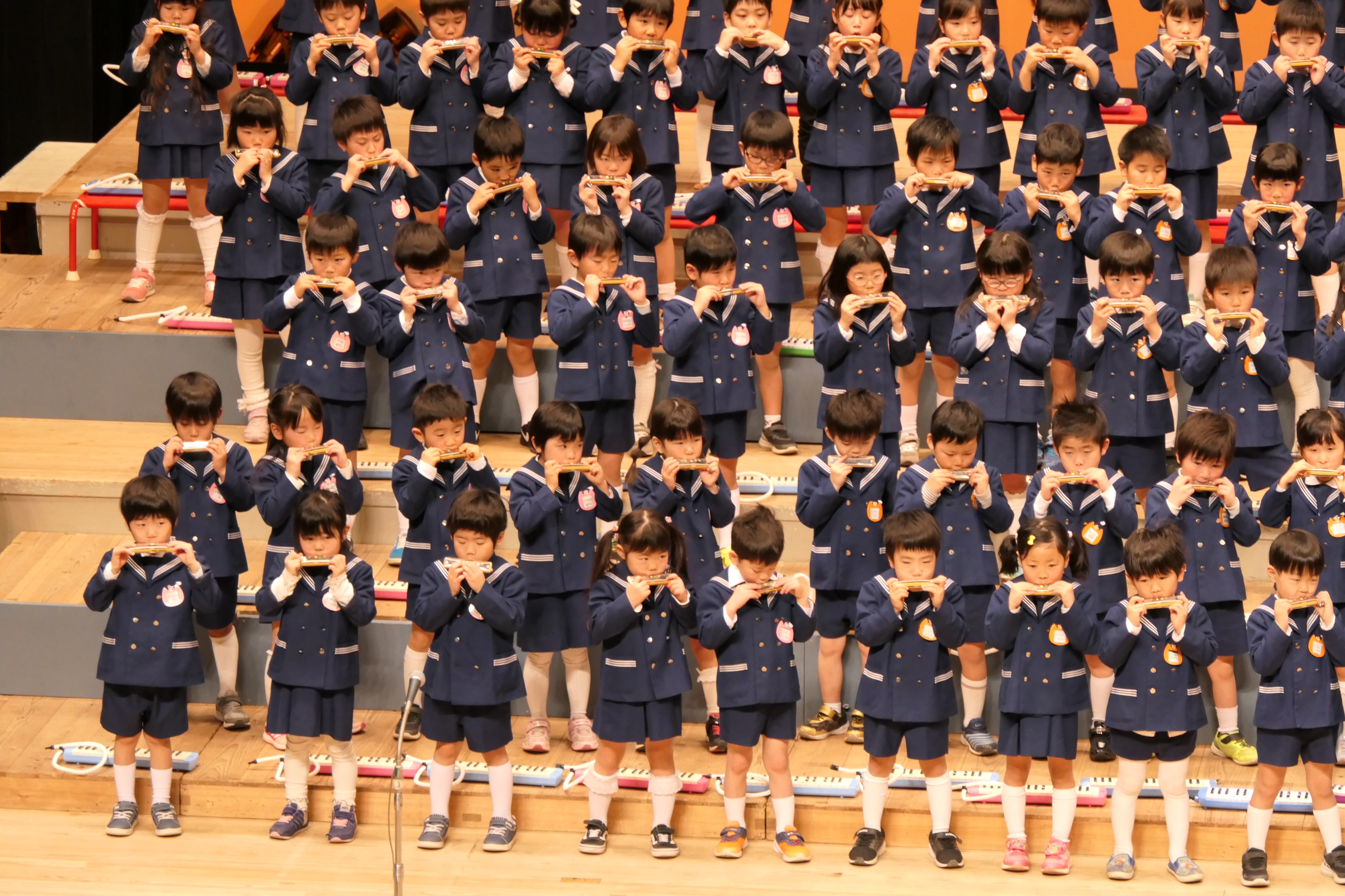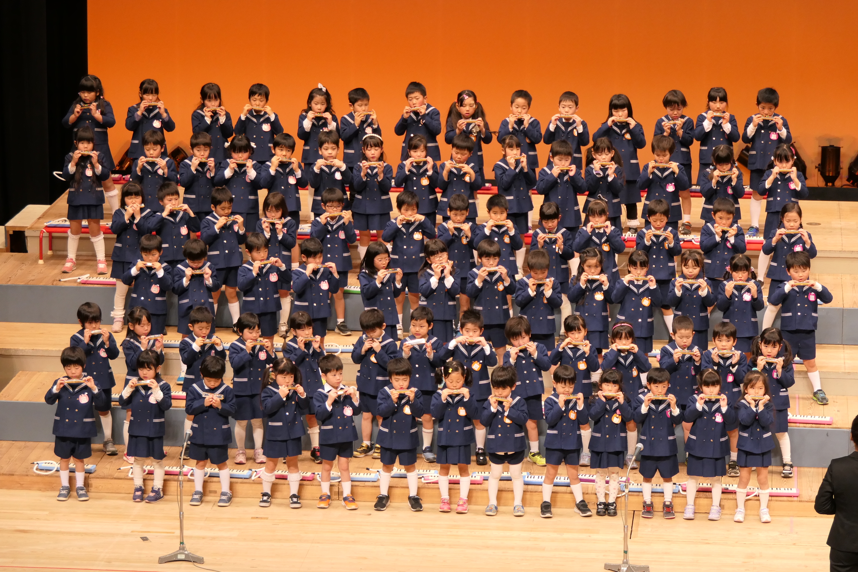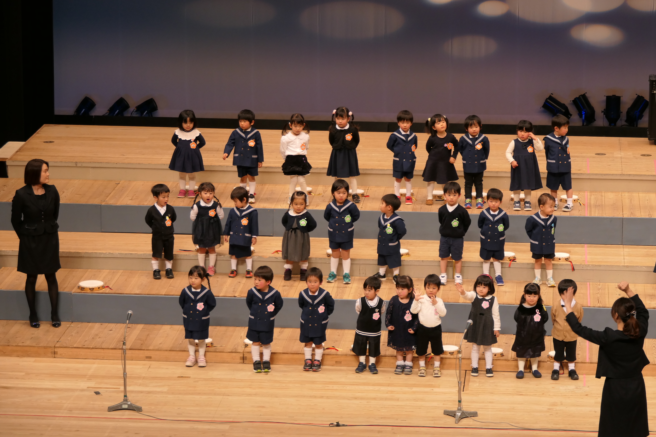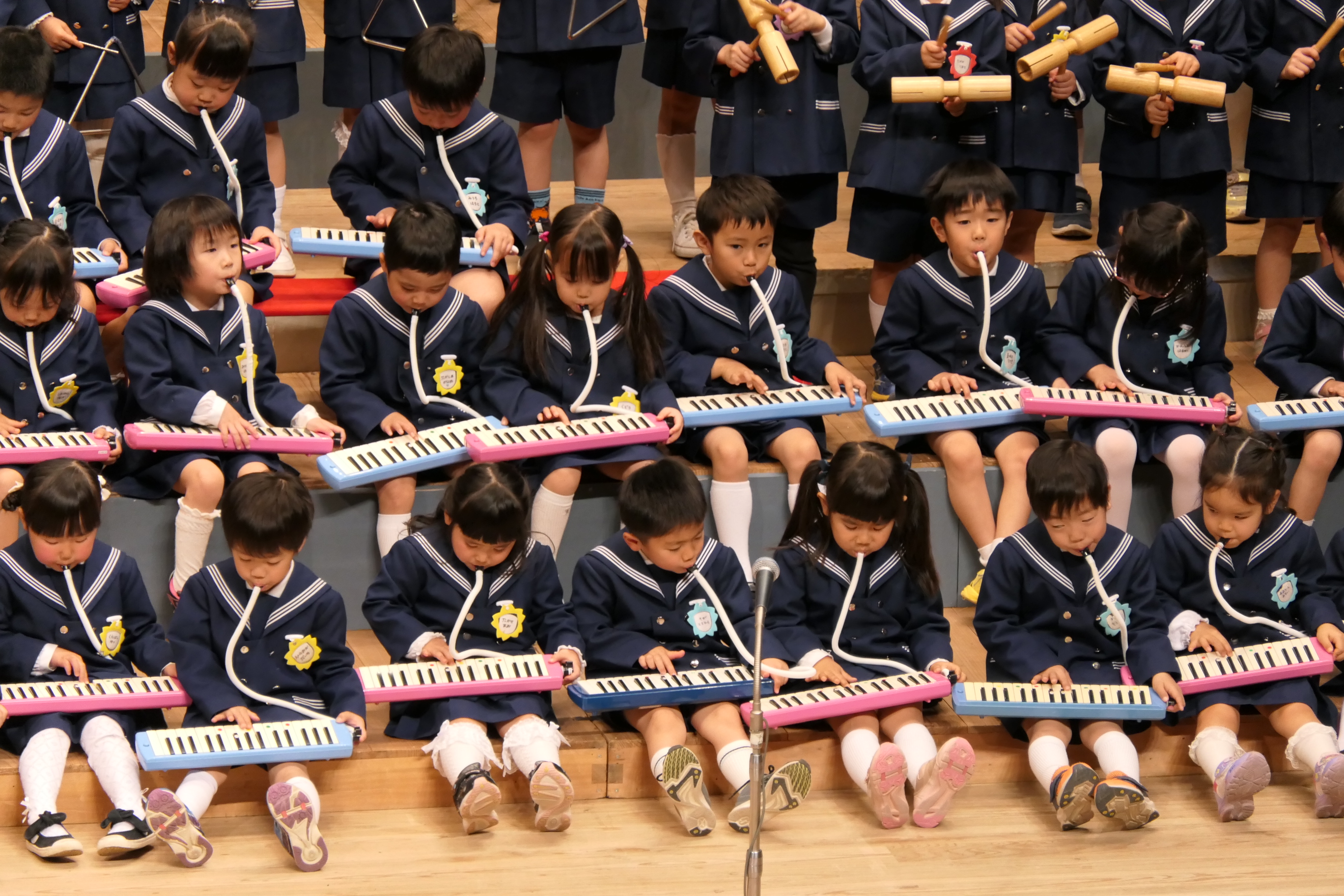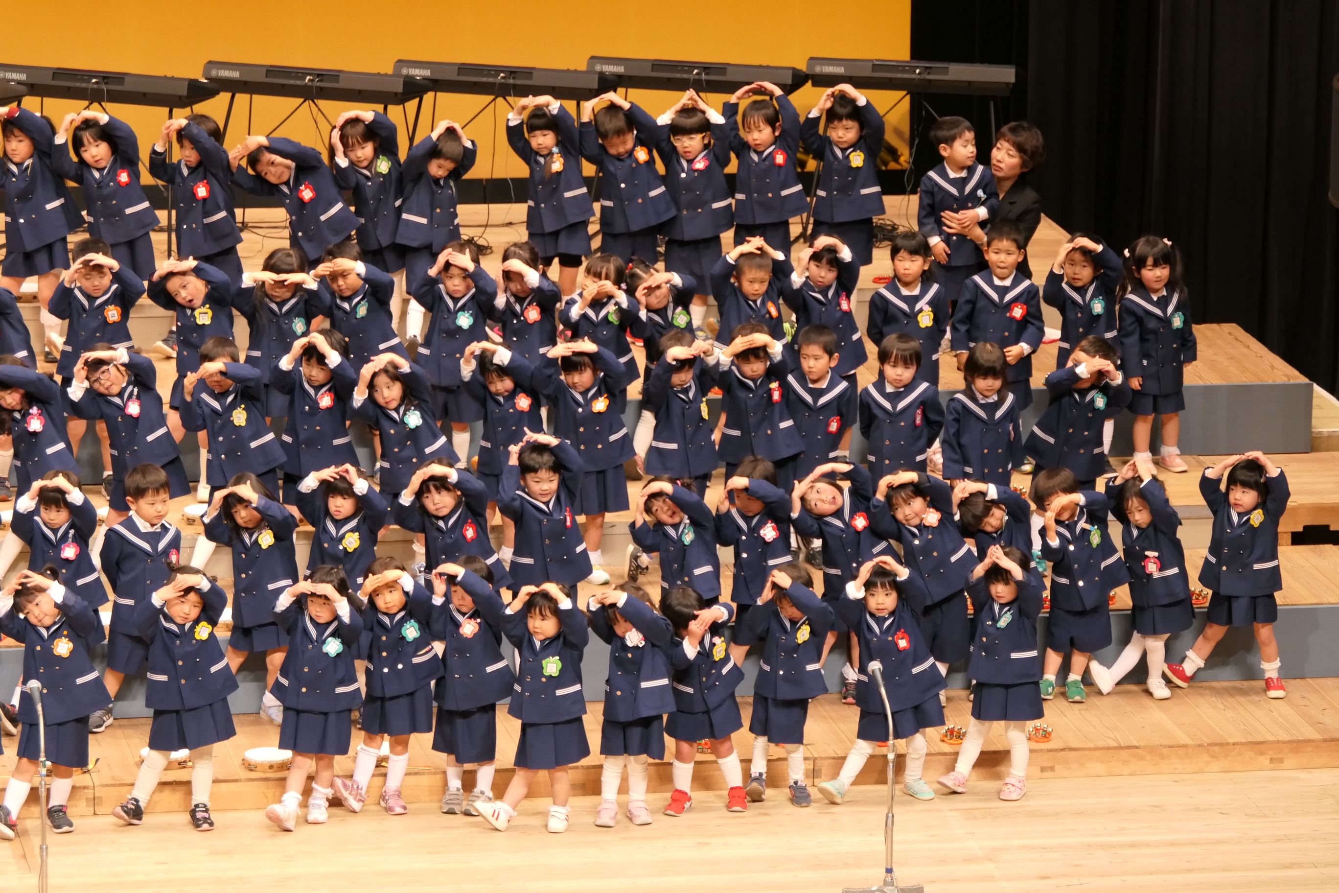 市民会館の大ホールで、みんな元気いっぱい歌い、リズムをとり、楽器を演奏しました。ちょっぴり緊張したけど、楽しかった!