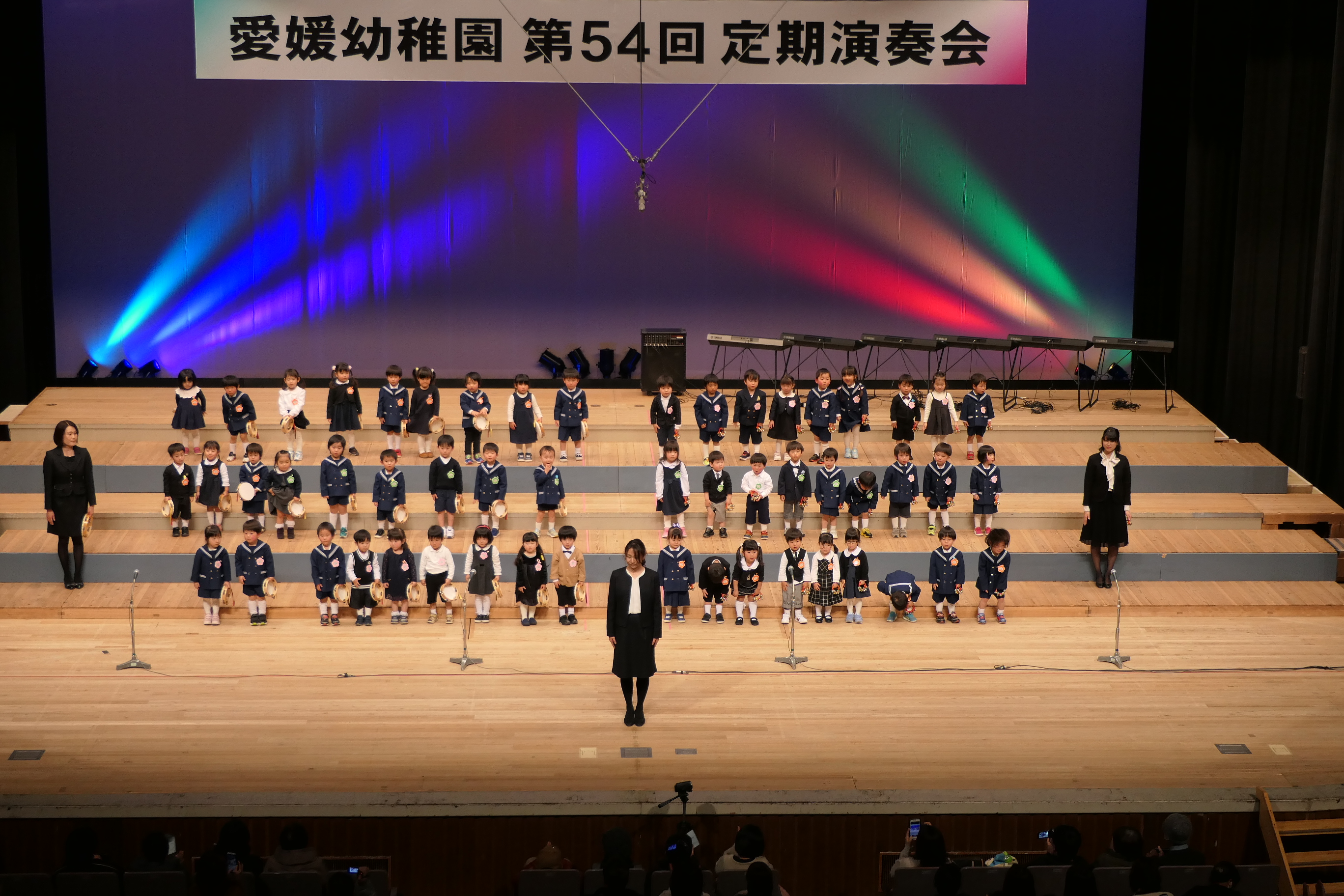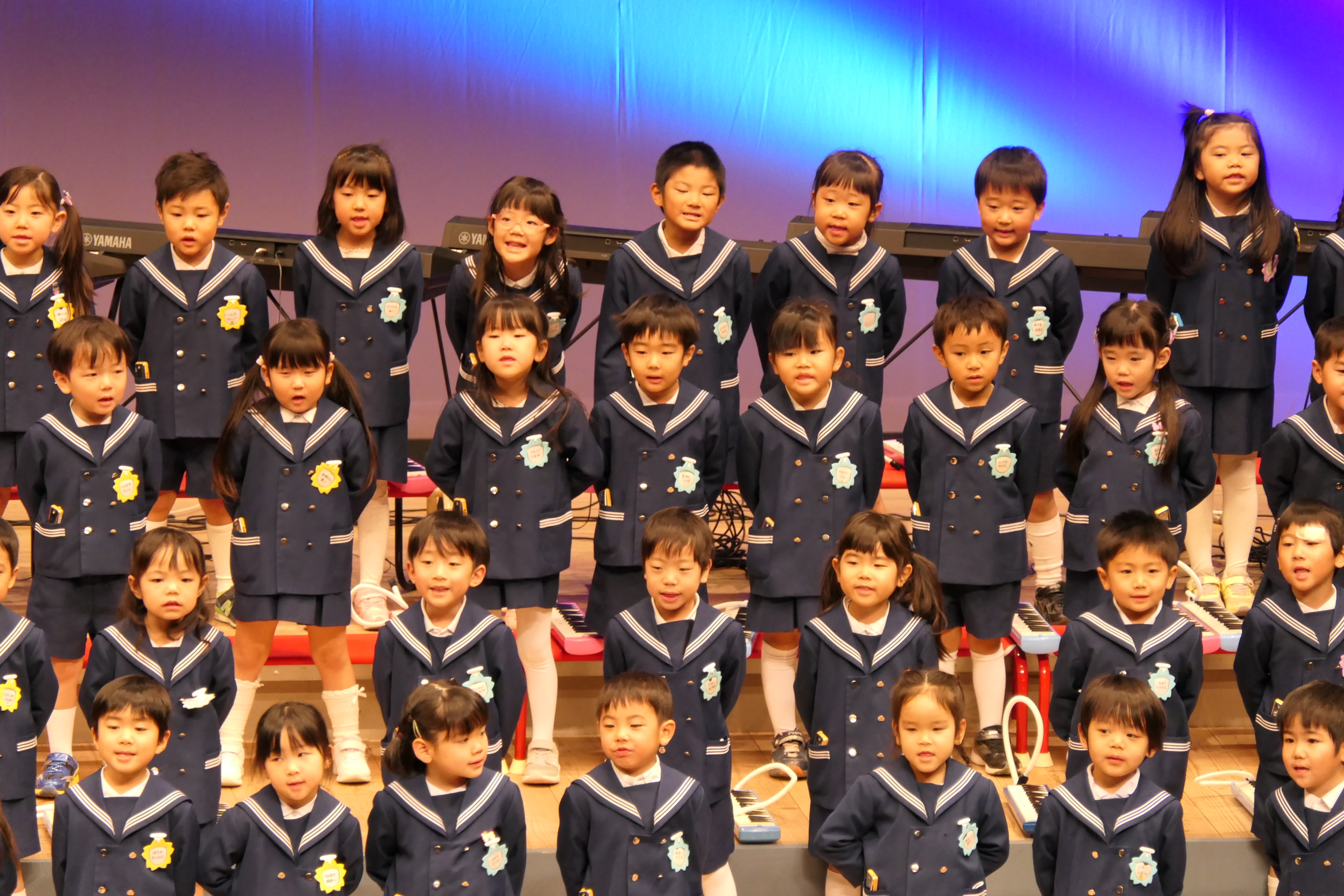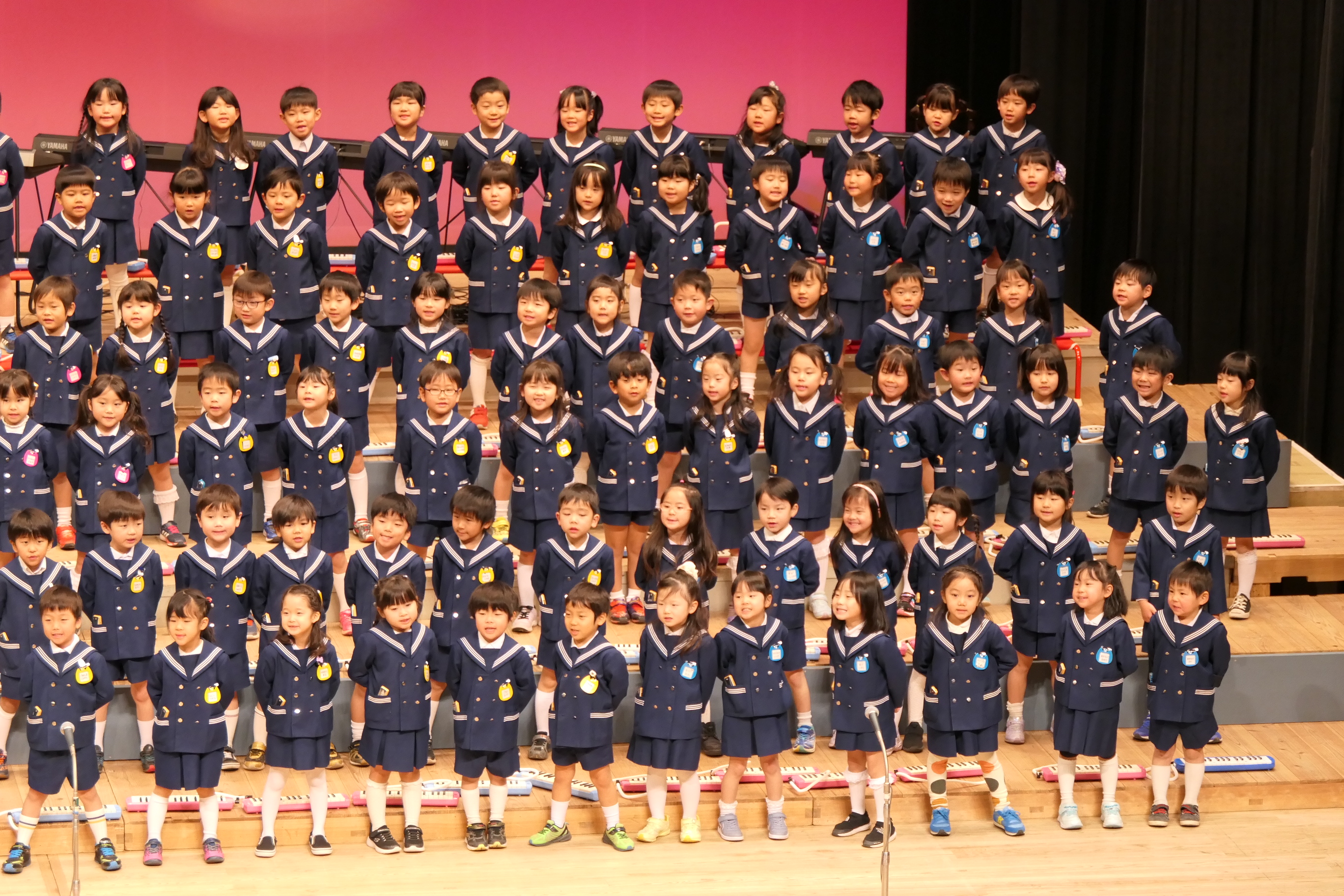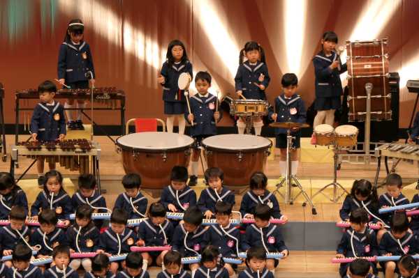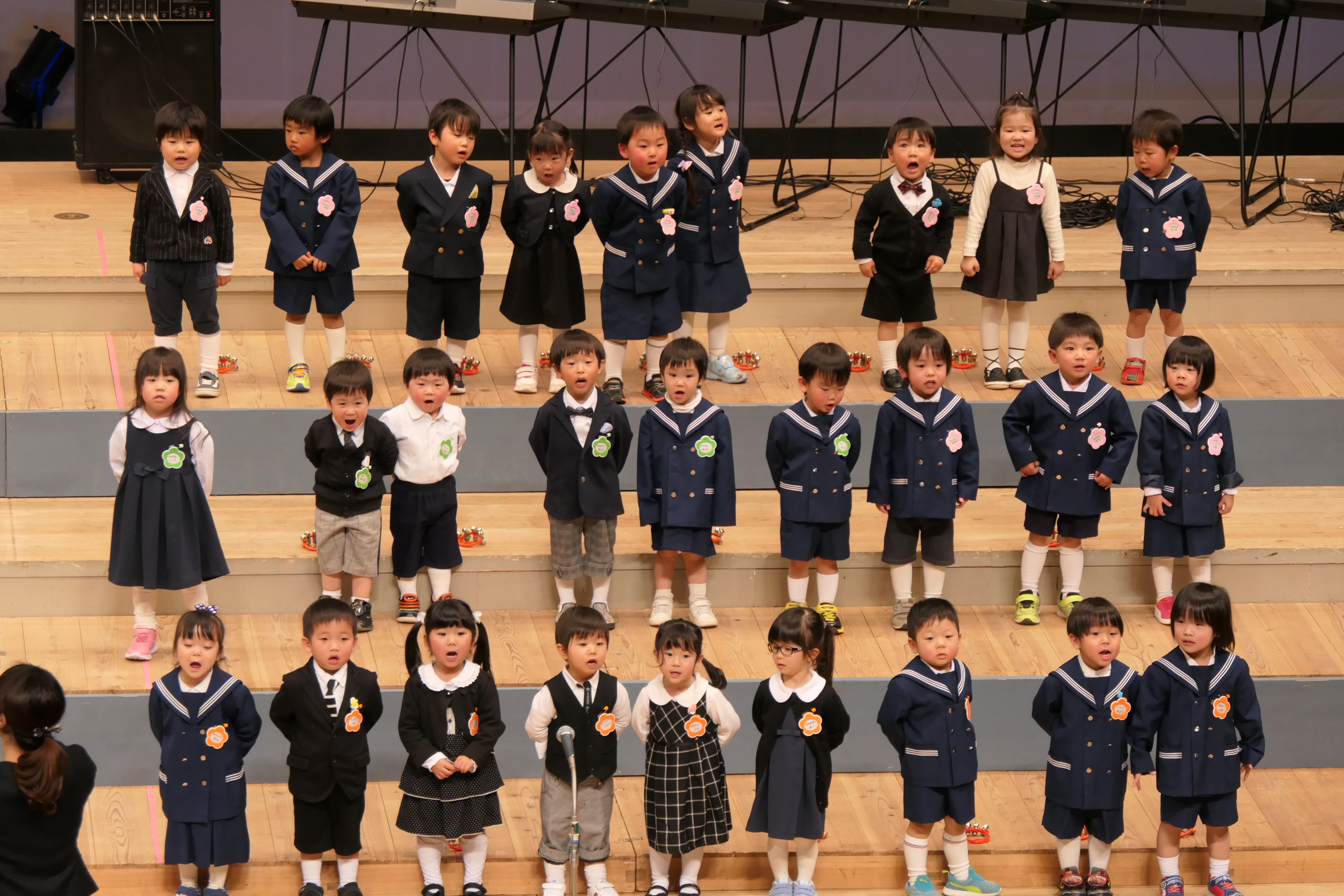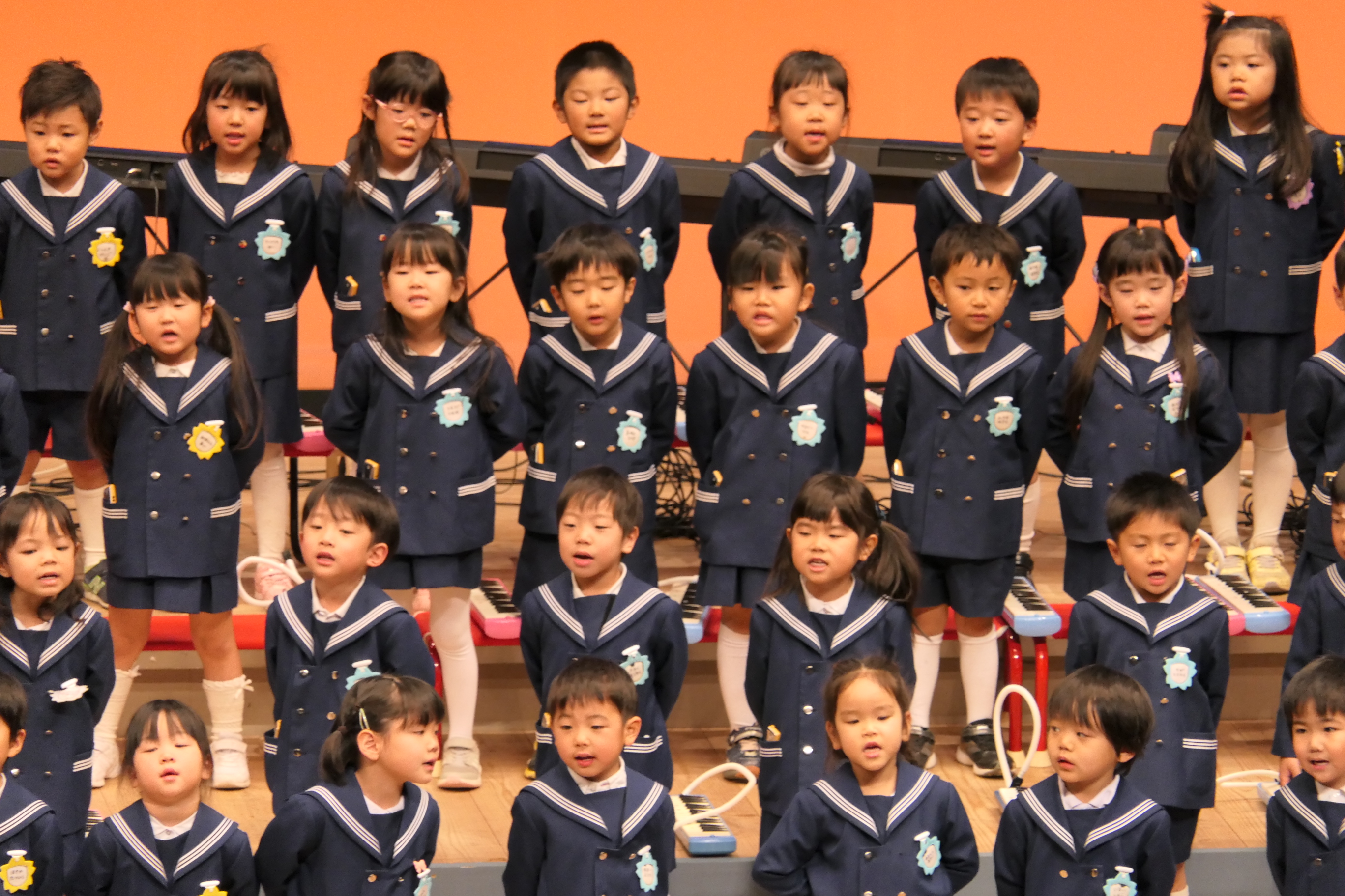 市民会館の大ホールで、みんな元気いっぱい歌い、リズムをとり、楽器を演奏しました。ちょっぴり緊張したけど、楽しかった!