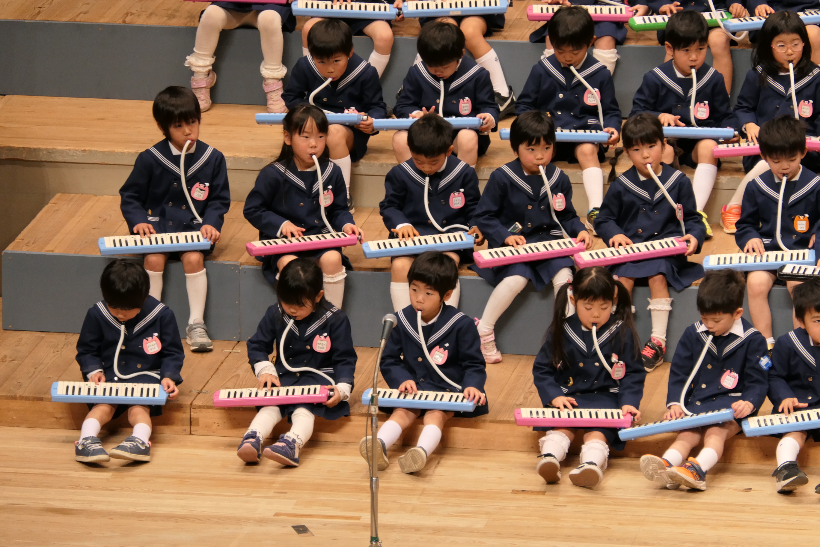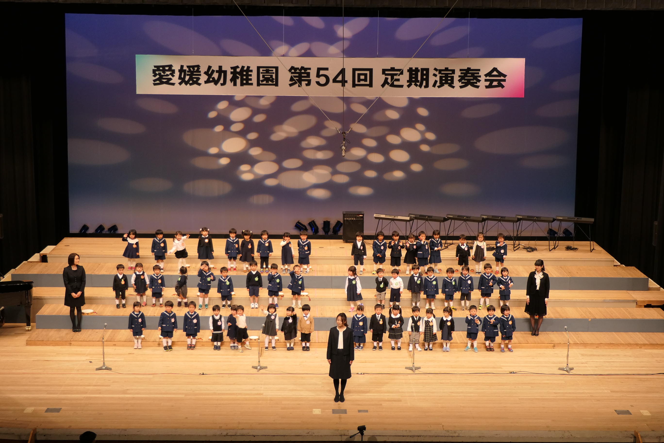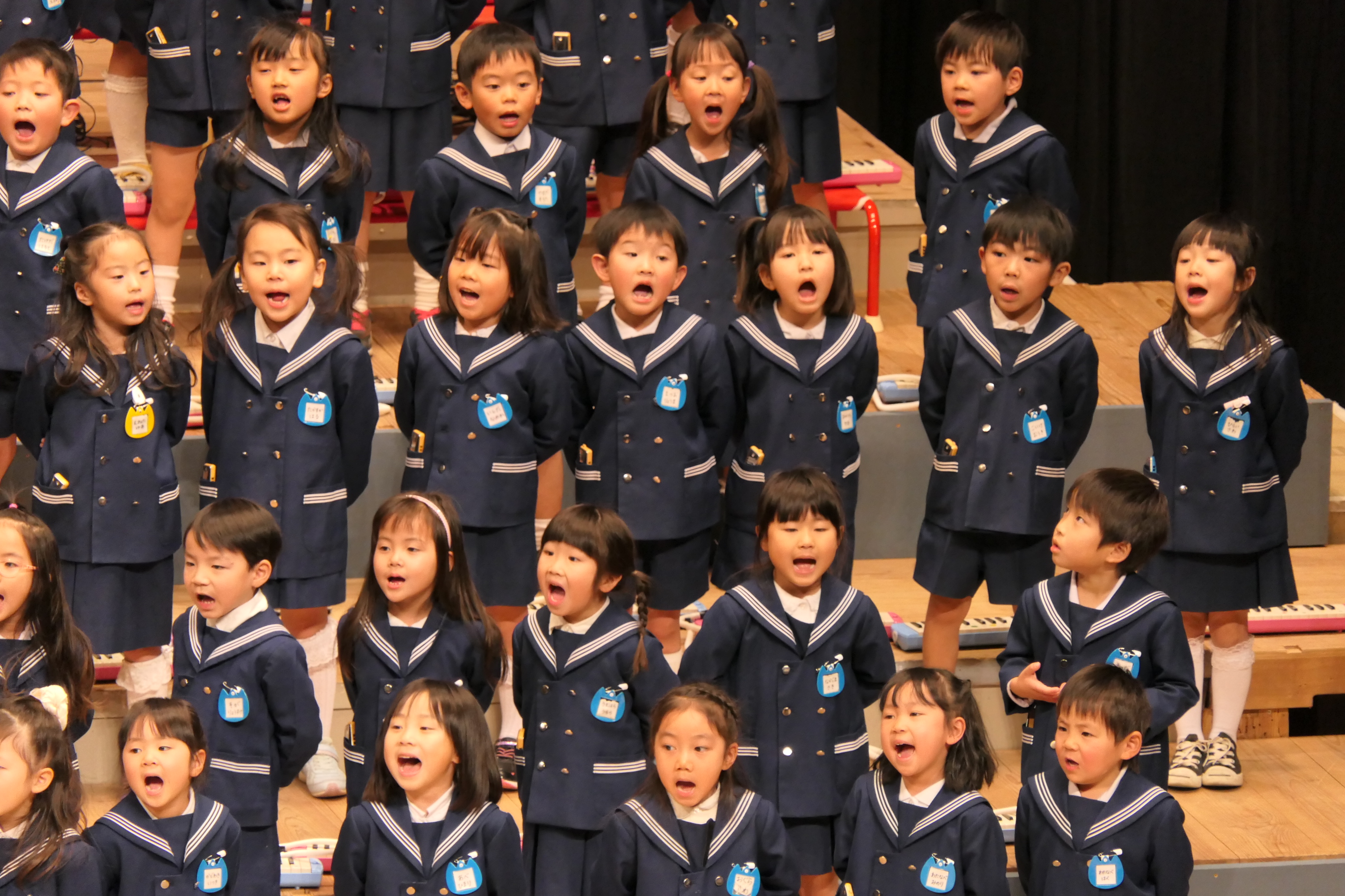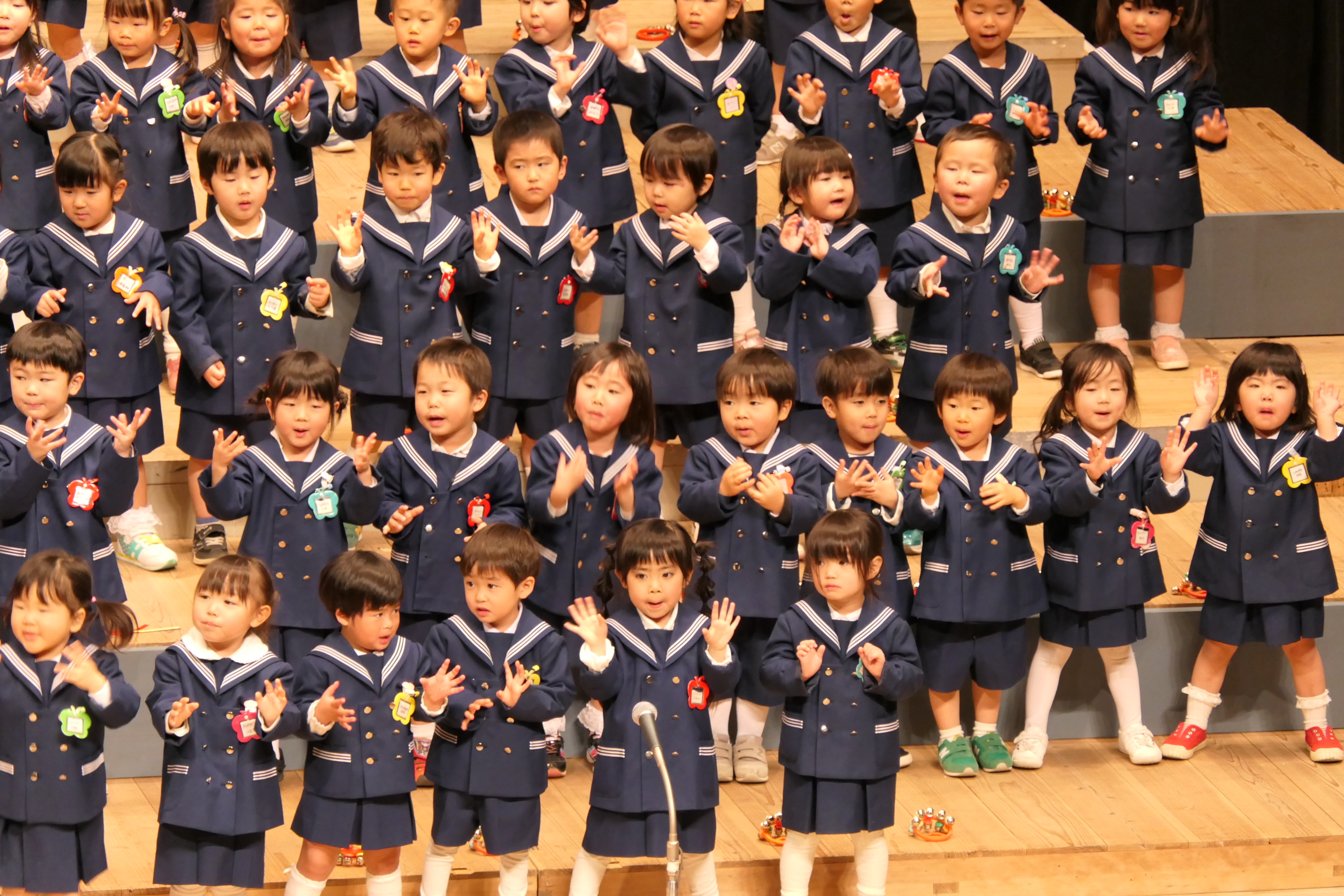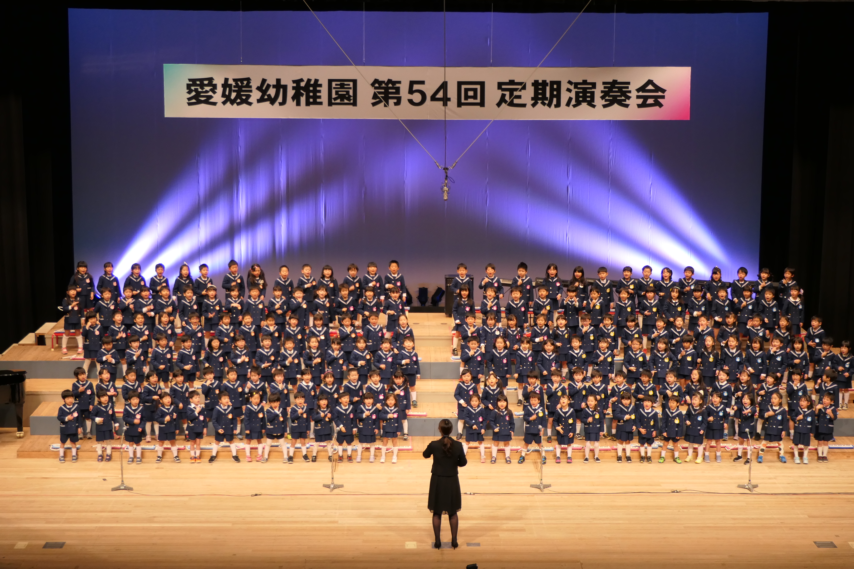 市民会館の大ホールで、みんな元気いっぱい歌い、リズムをとり、楽器を演奏しました。ちょっぴり緊張したけど、楽しかった!