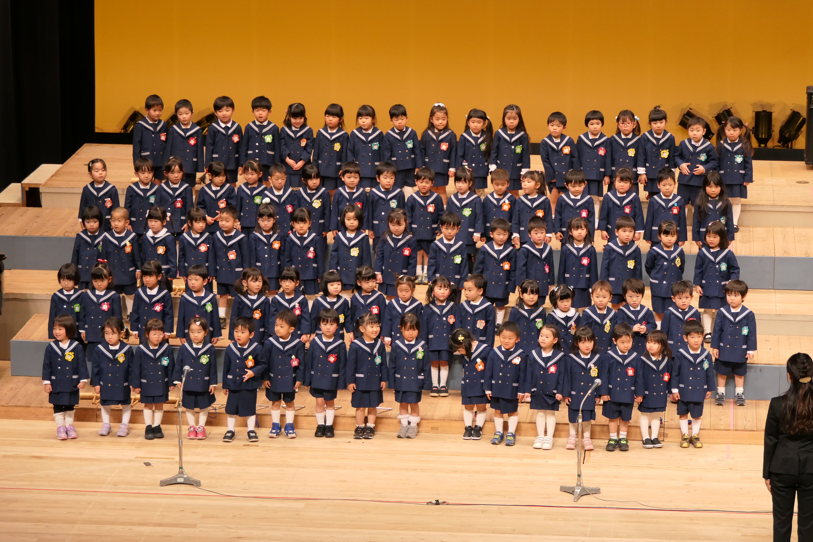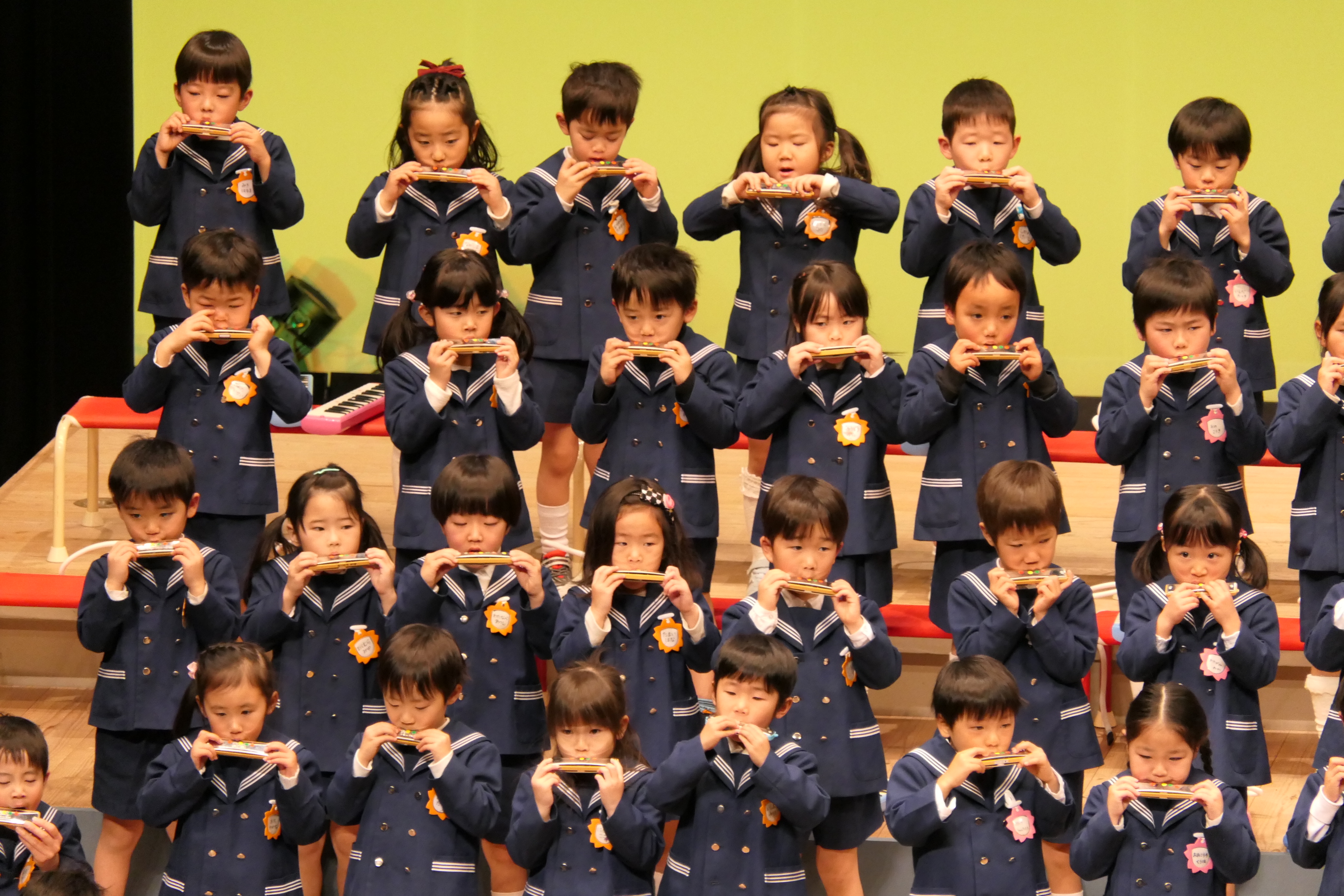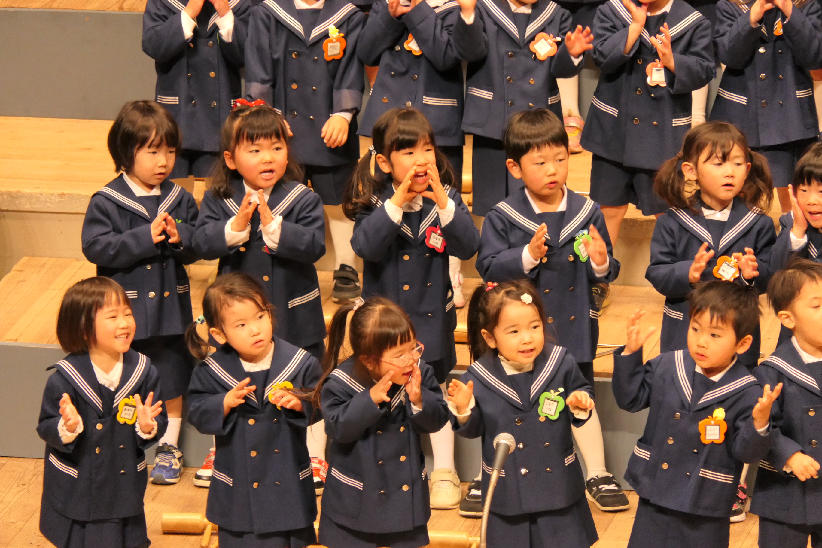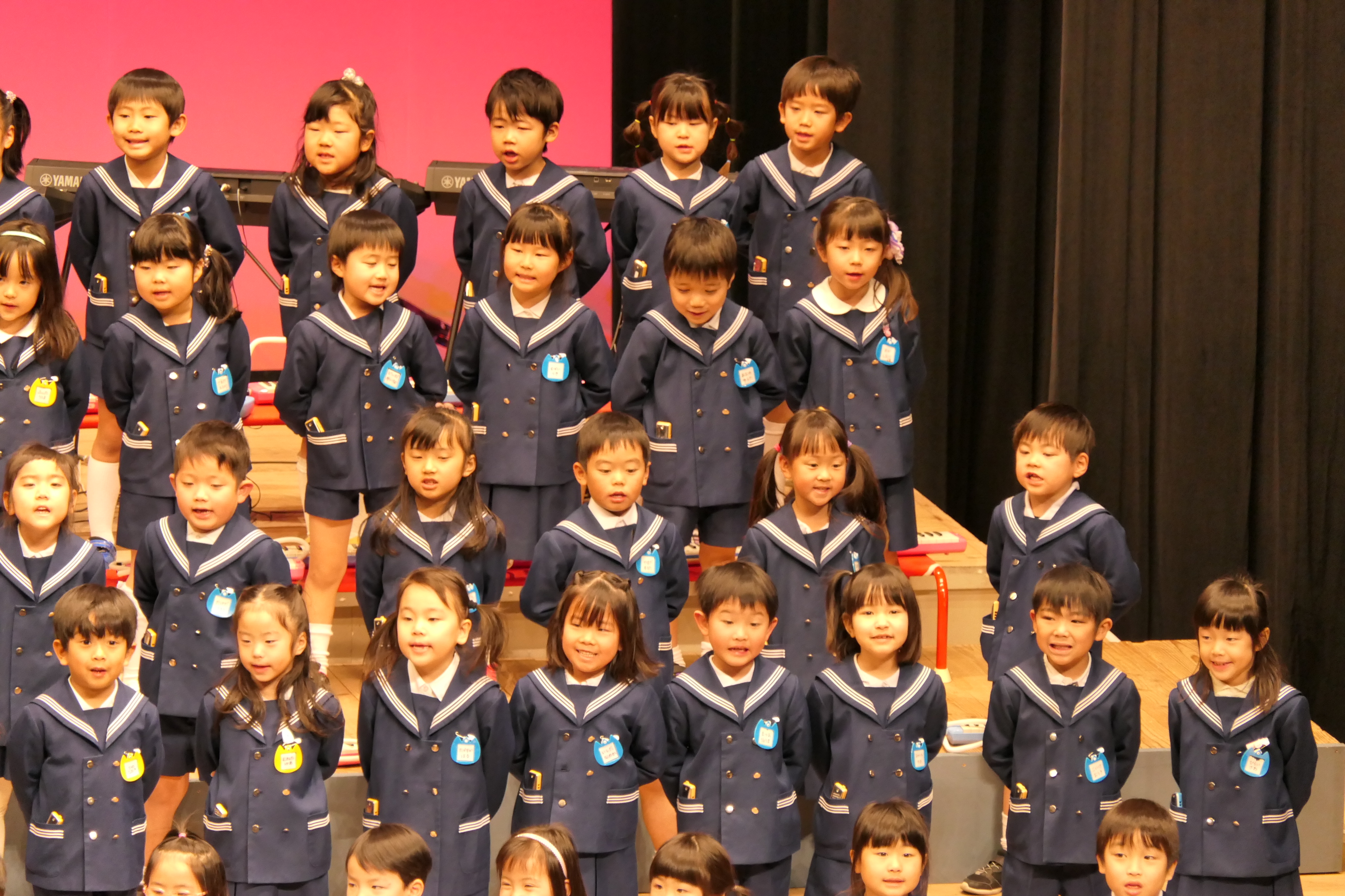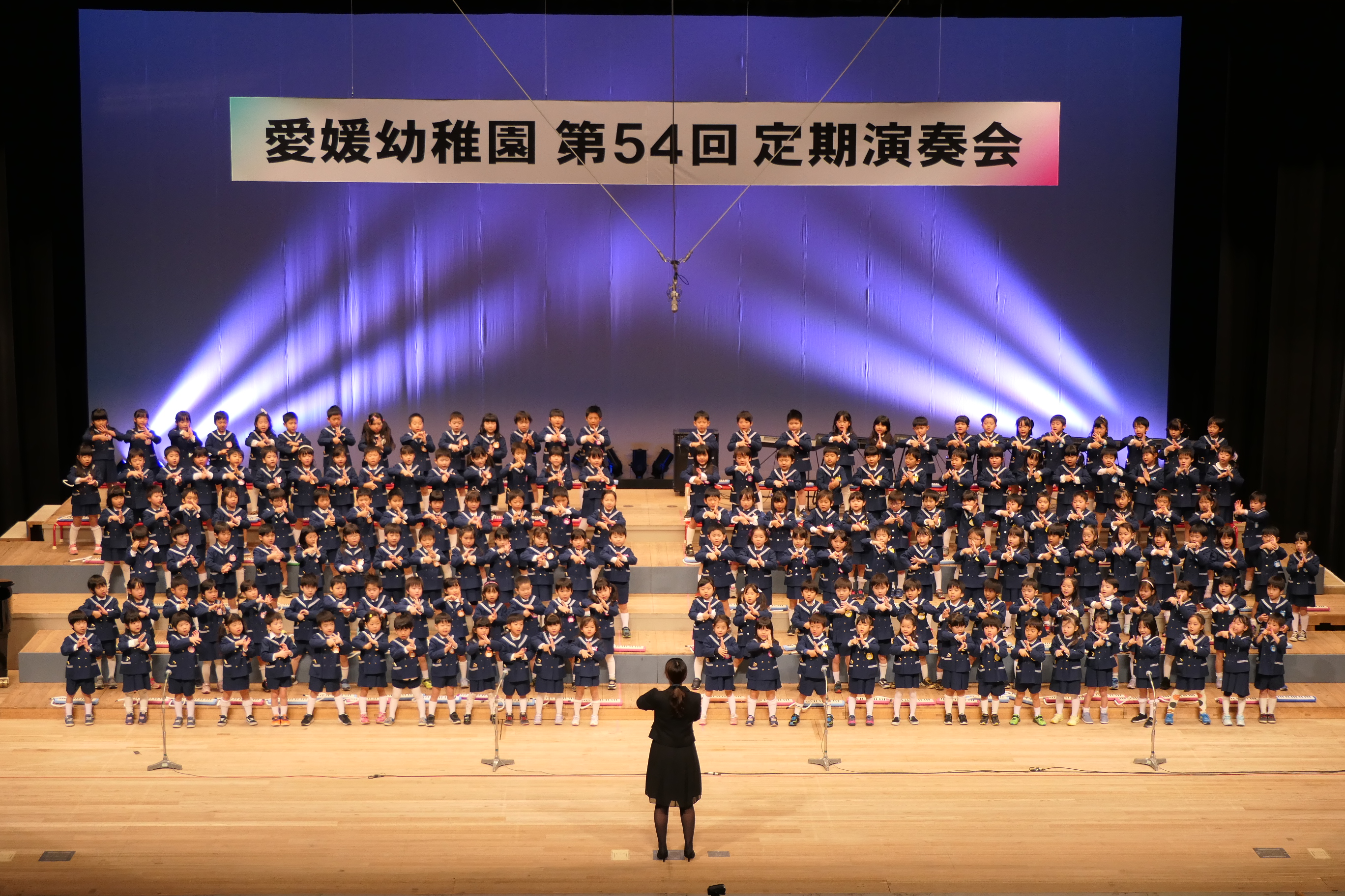 市民会館の大ホールで、みんな元気いっぱい歌い、リズムをとり、楽器を演奏しました。ちょっぴり緊張したけど、楽しかった!