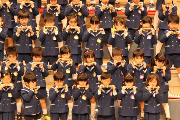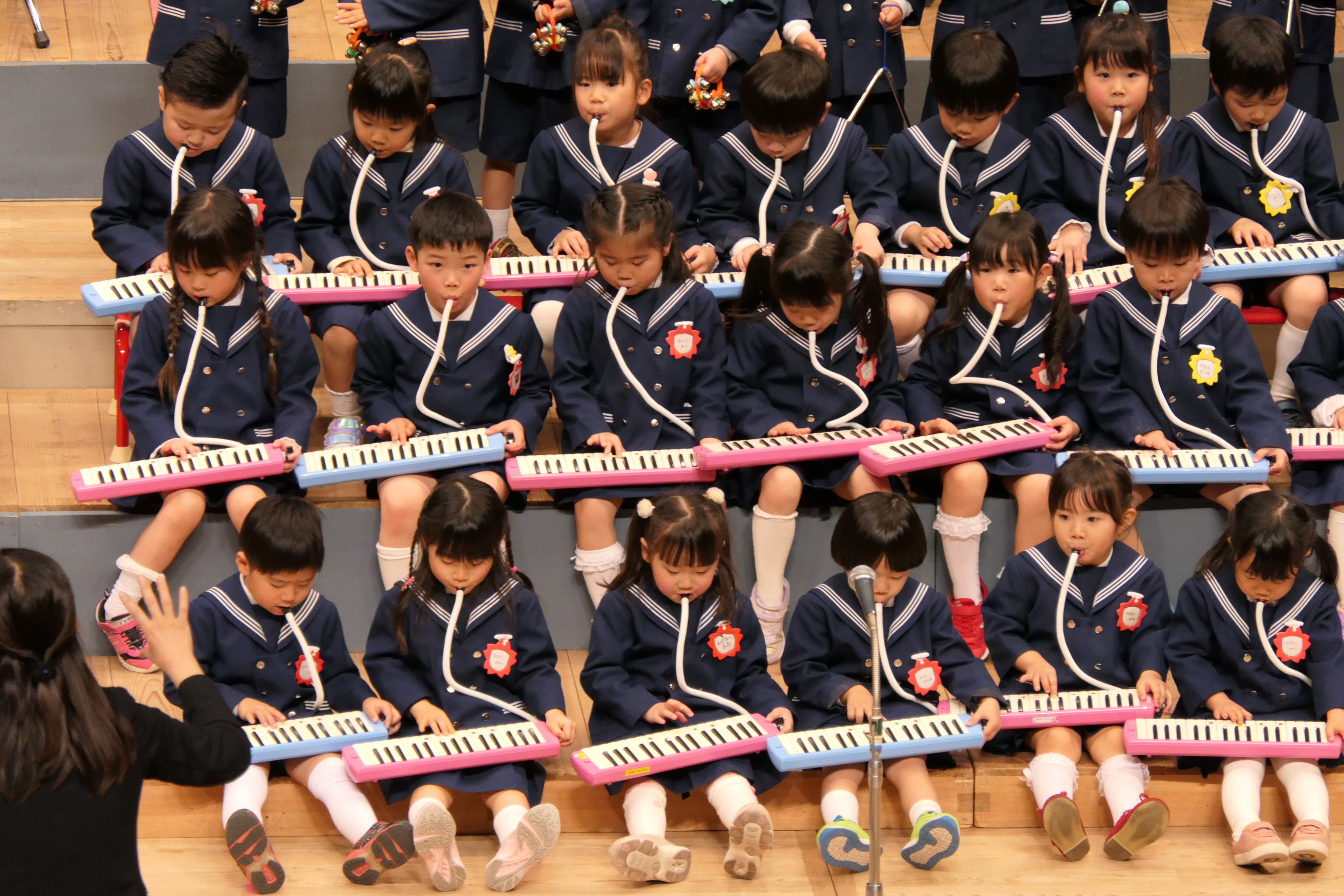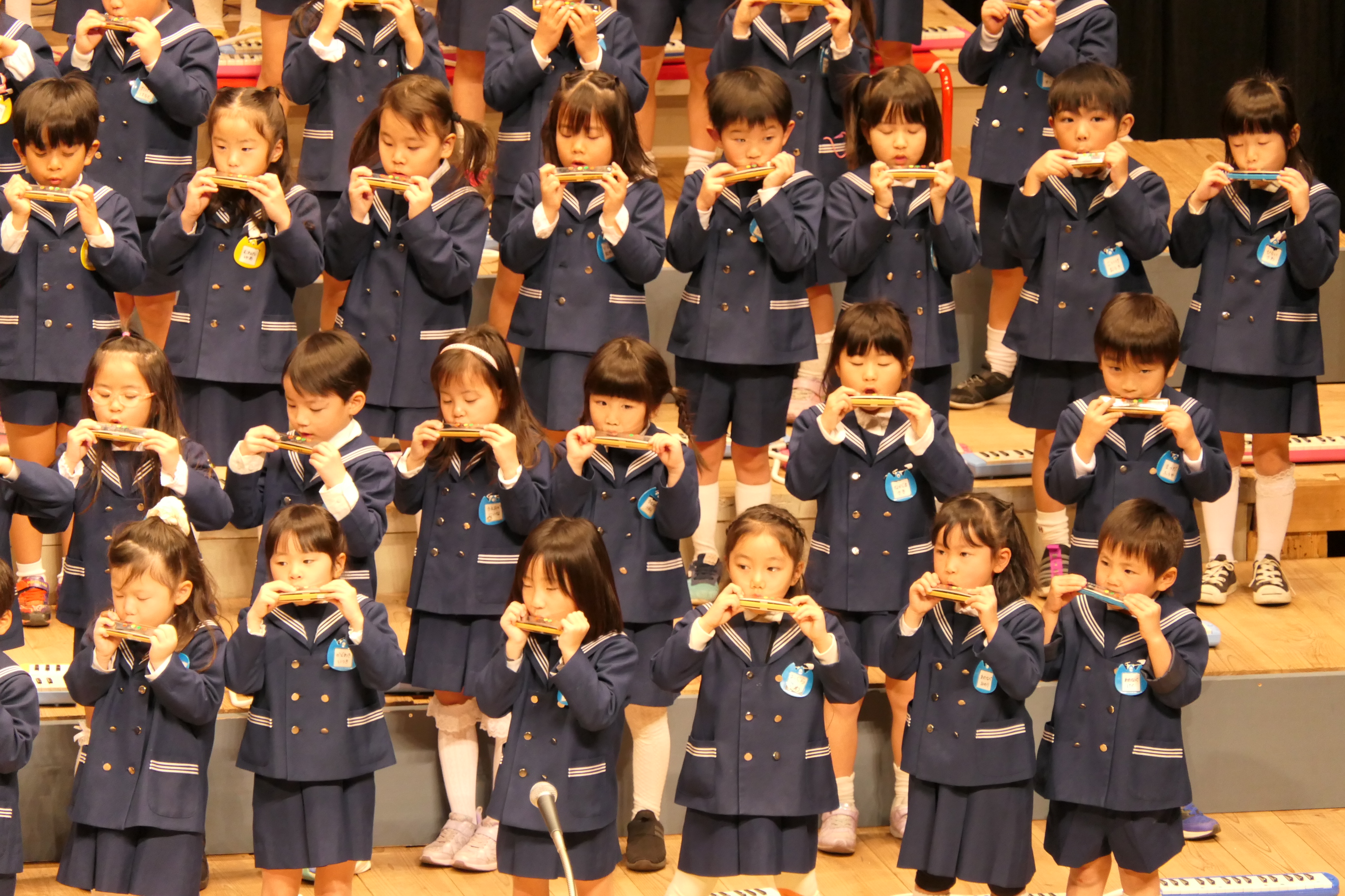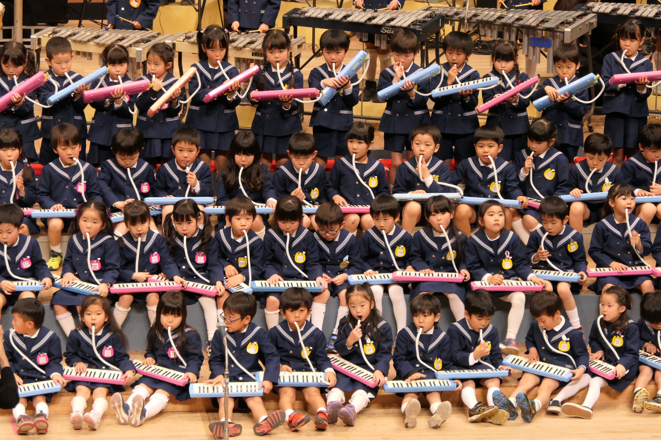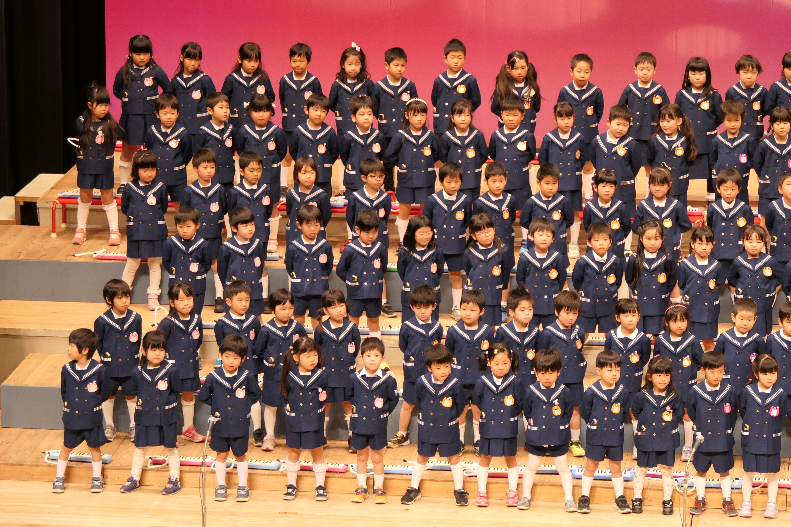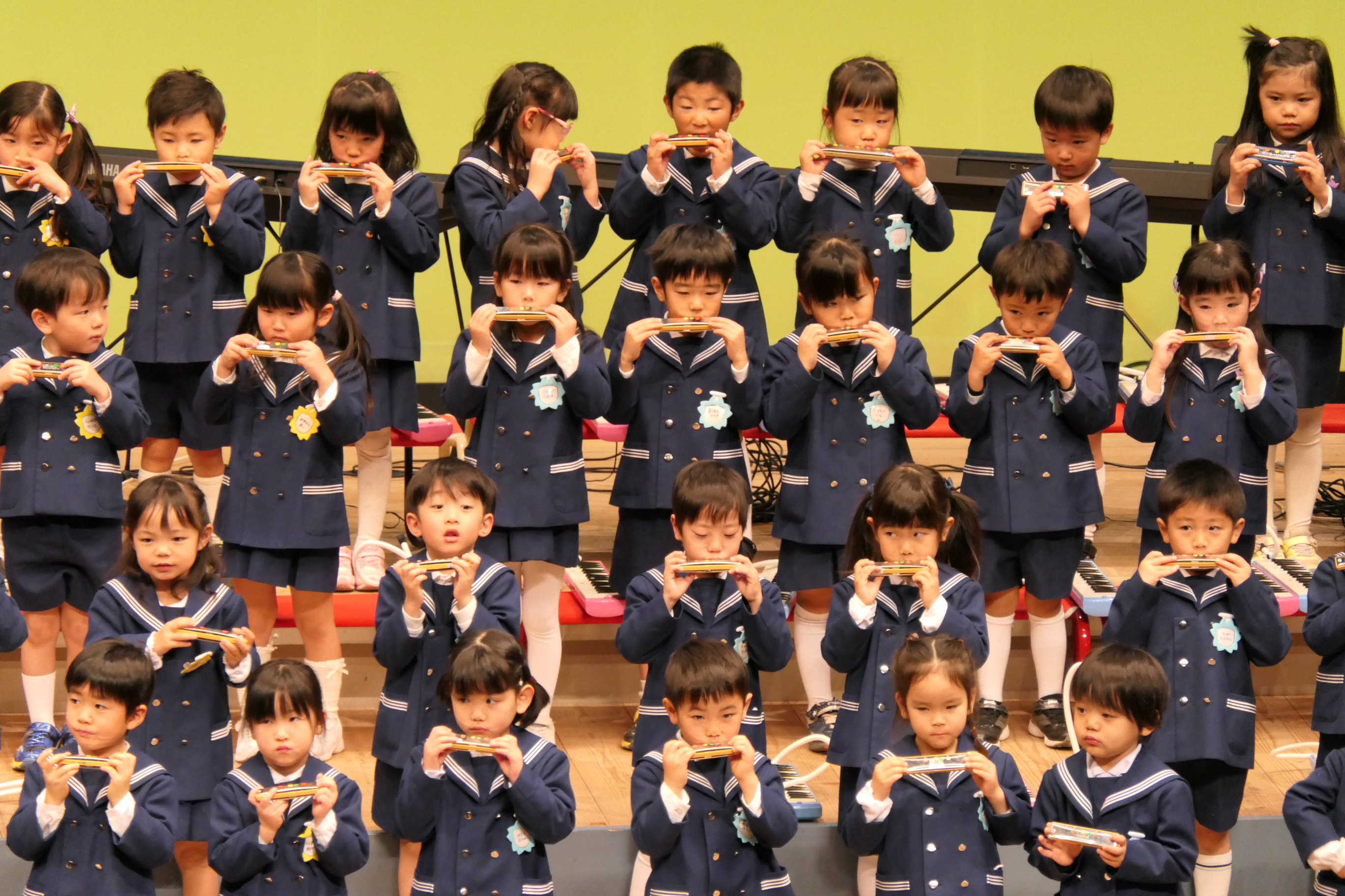 市民会館の大ホールで、みんな元気いっぱい歌い、リズムをとり、楽器を演奏しました。ちょっぴり緊張したけど、楽しかった!