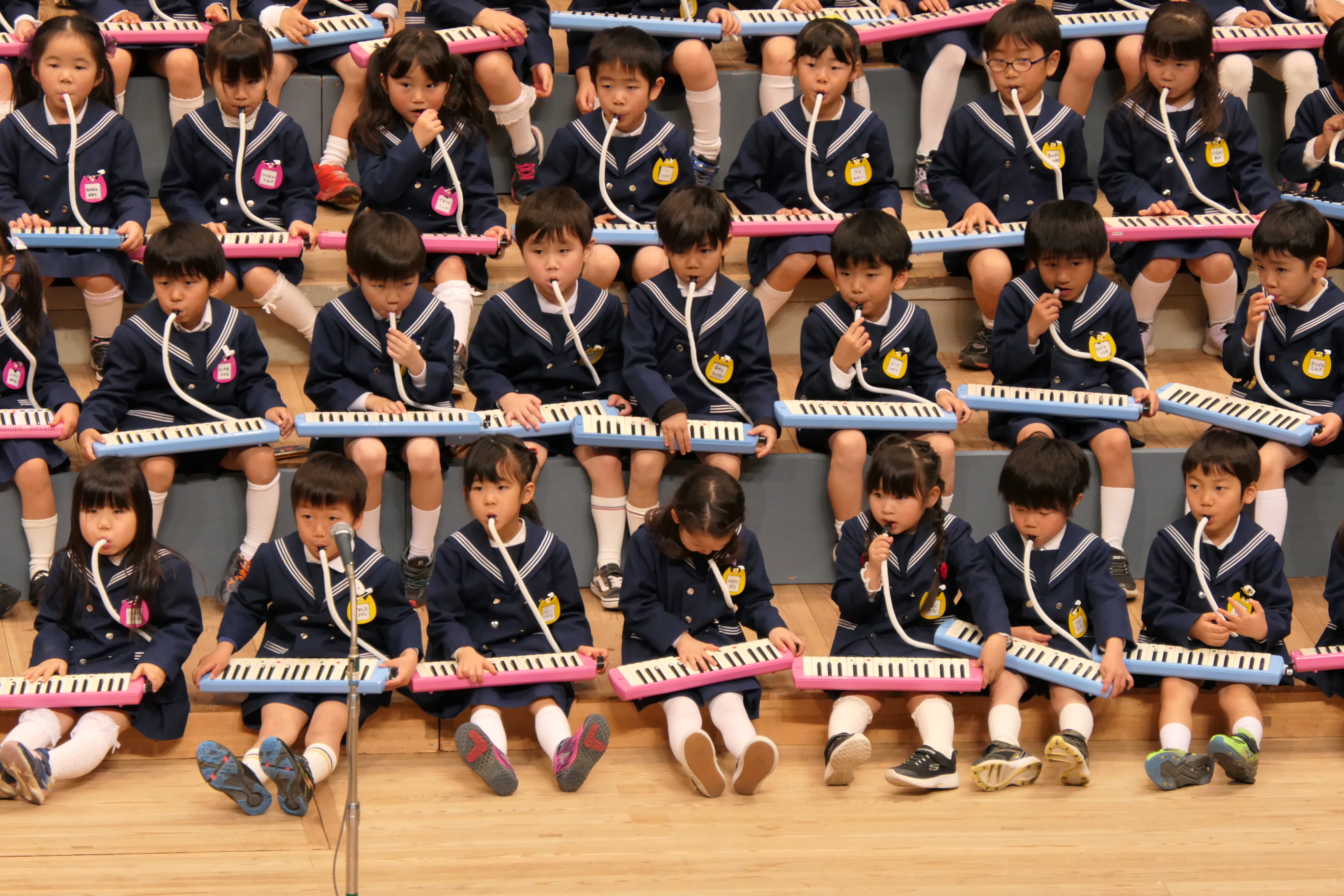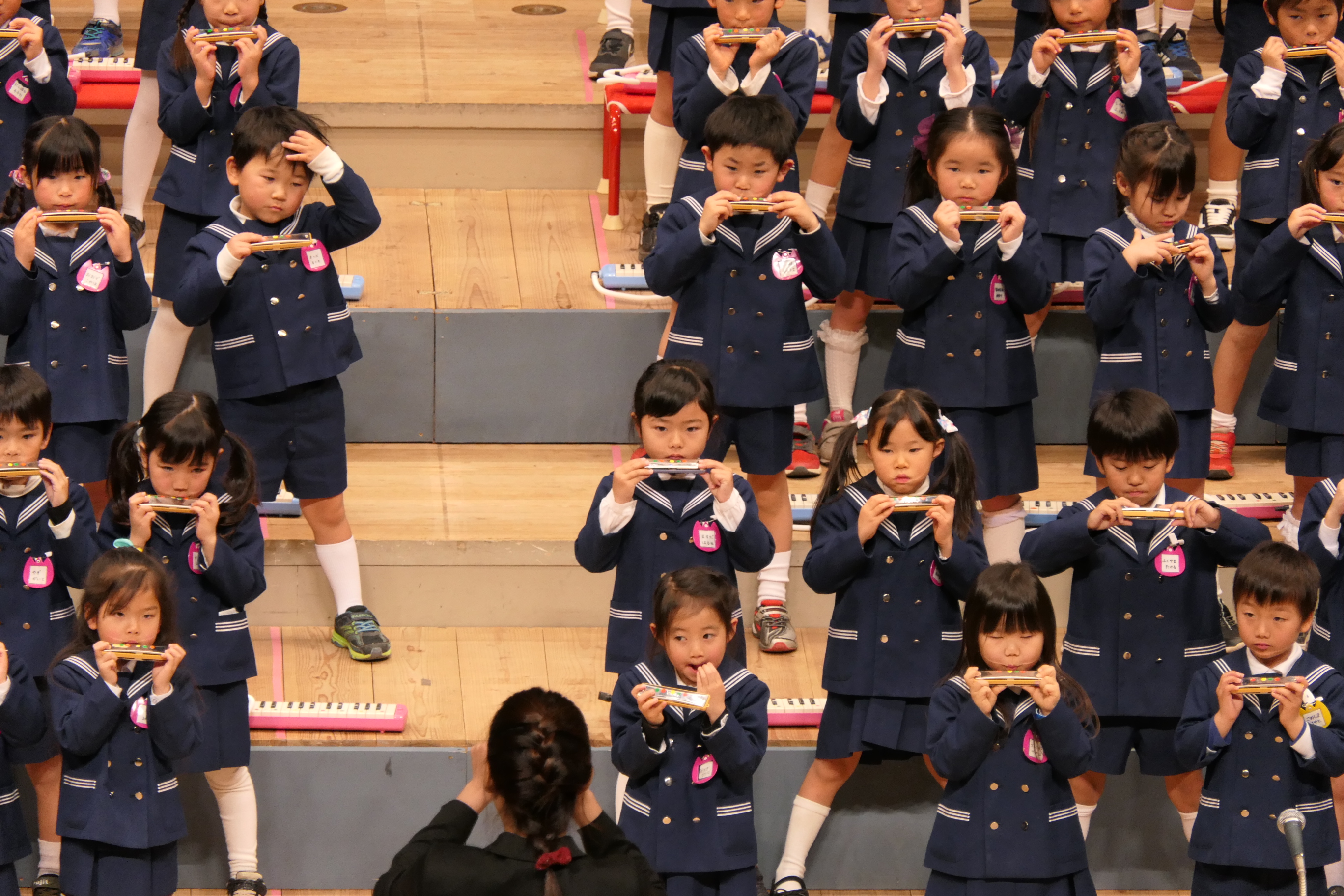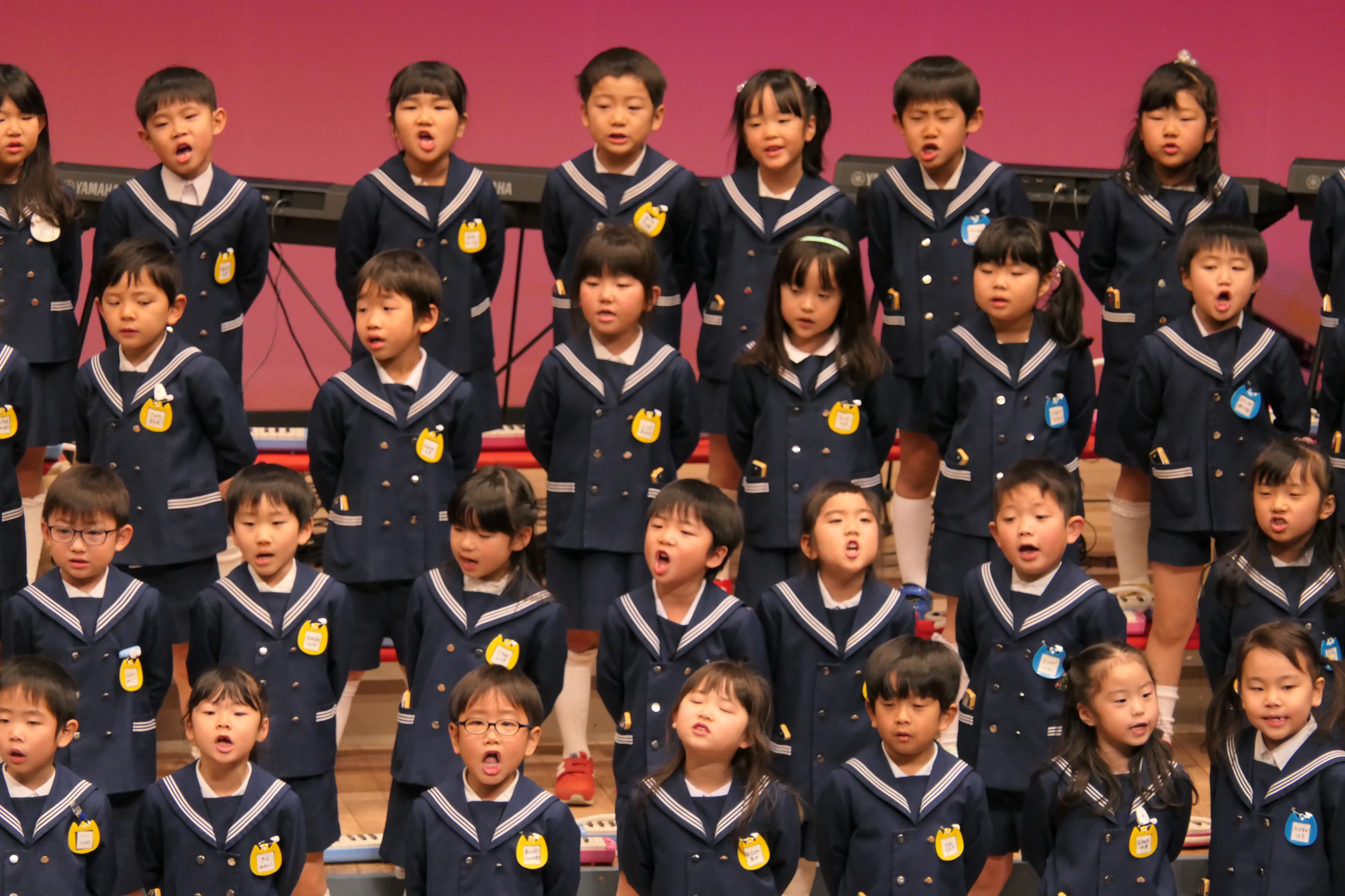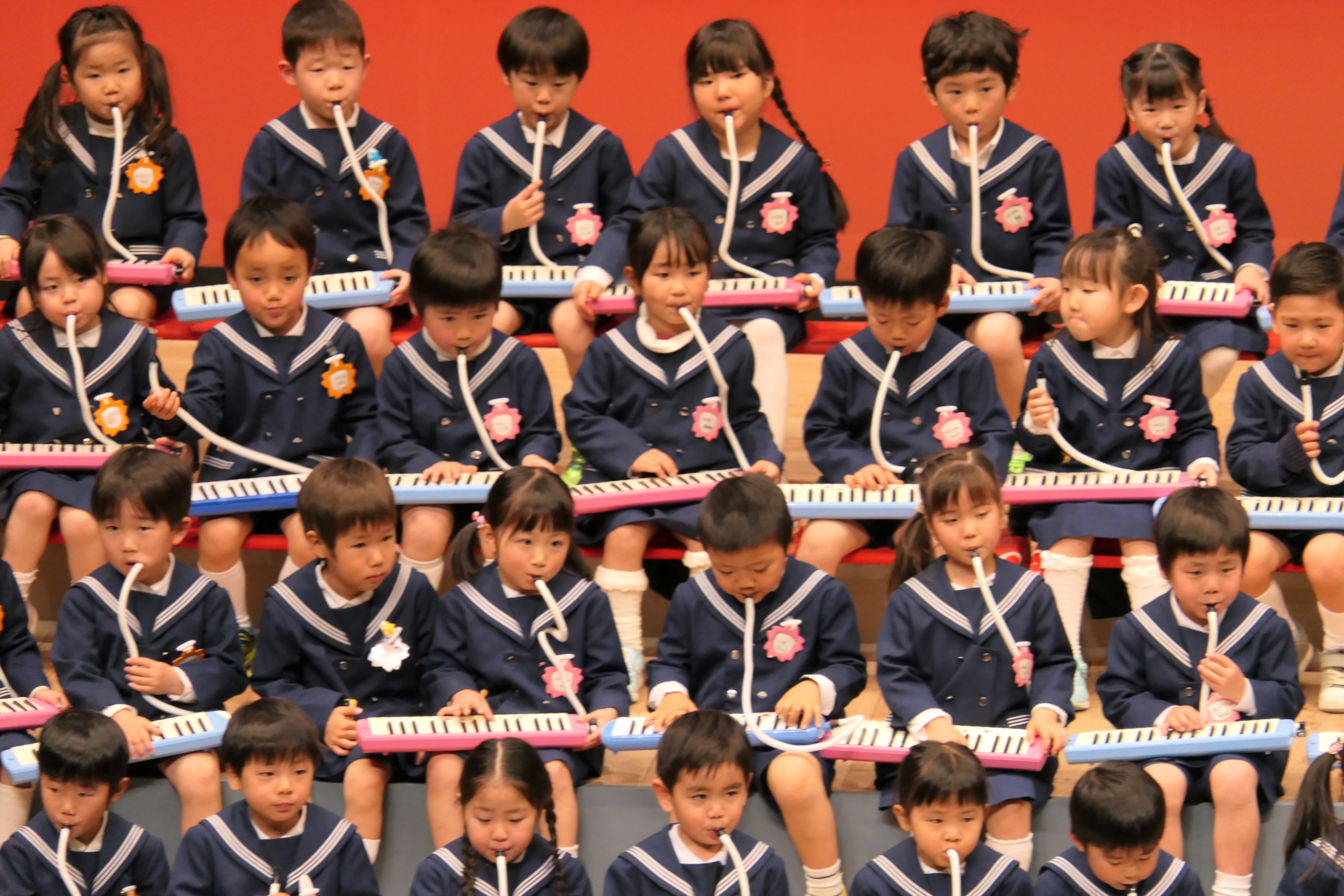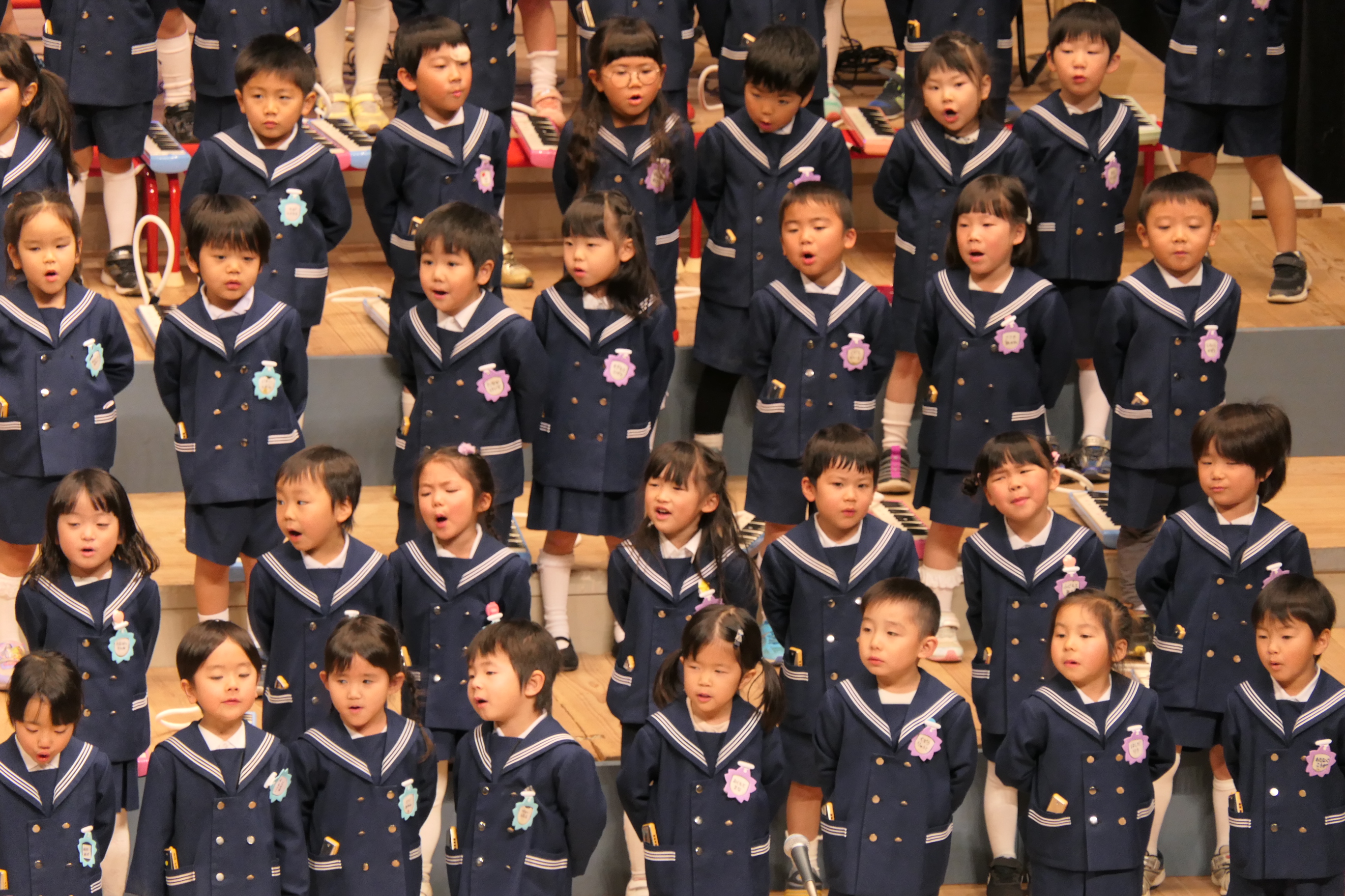市民会館の大ホールで、みんな元気いっぱい歌い、リズムをとり、楽器を演奏しました。ちょっぴり緊張したけど、楽しかった!